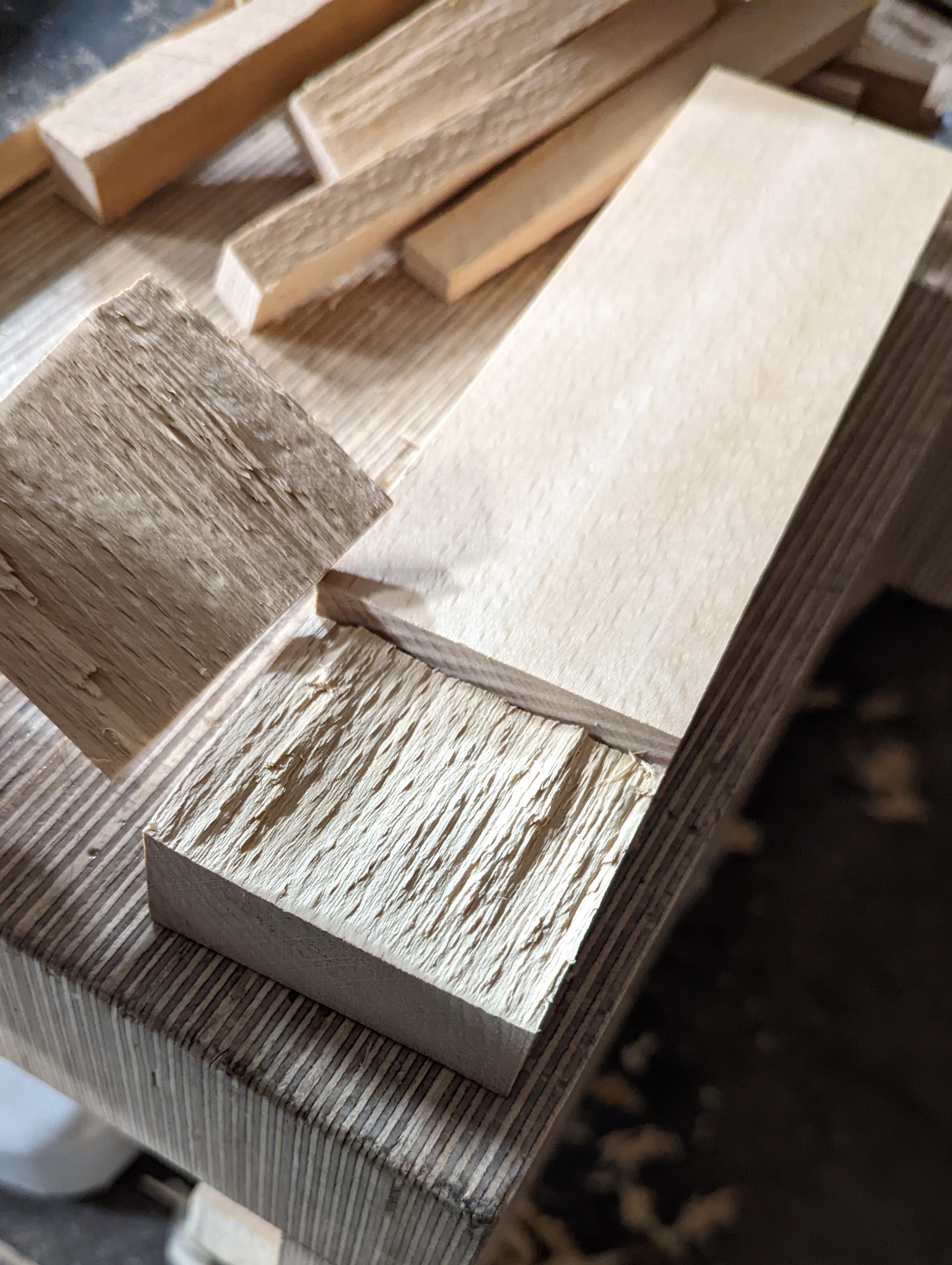 Additional insights come from splitting grain too. Split beech and you will see an amazing ducking and diving of the grain that gives some answers to the seersucker look when you plane it. Such things give interrelated connections and multi-faceted insights you just cannot get any other way including magnification with telescopes and such. The relational knowledge far supersedes reading about grain and wood and tools. It just does, and especially for those of us who rely mainly on our hand tools.