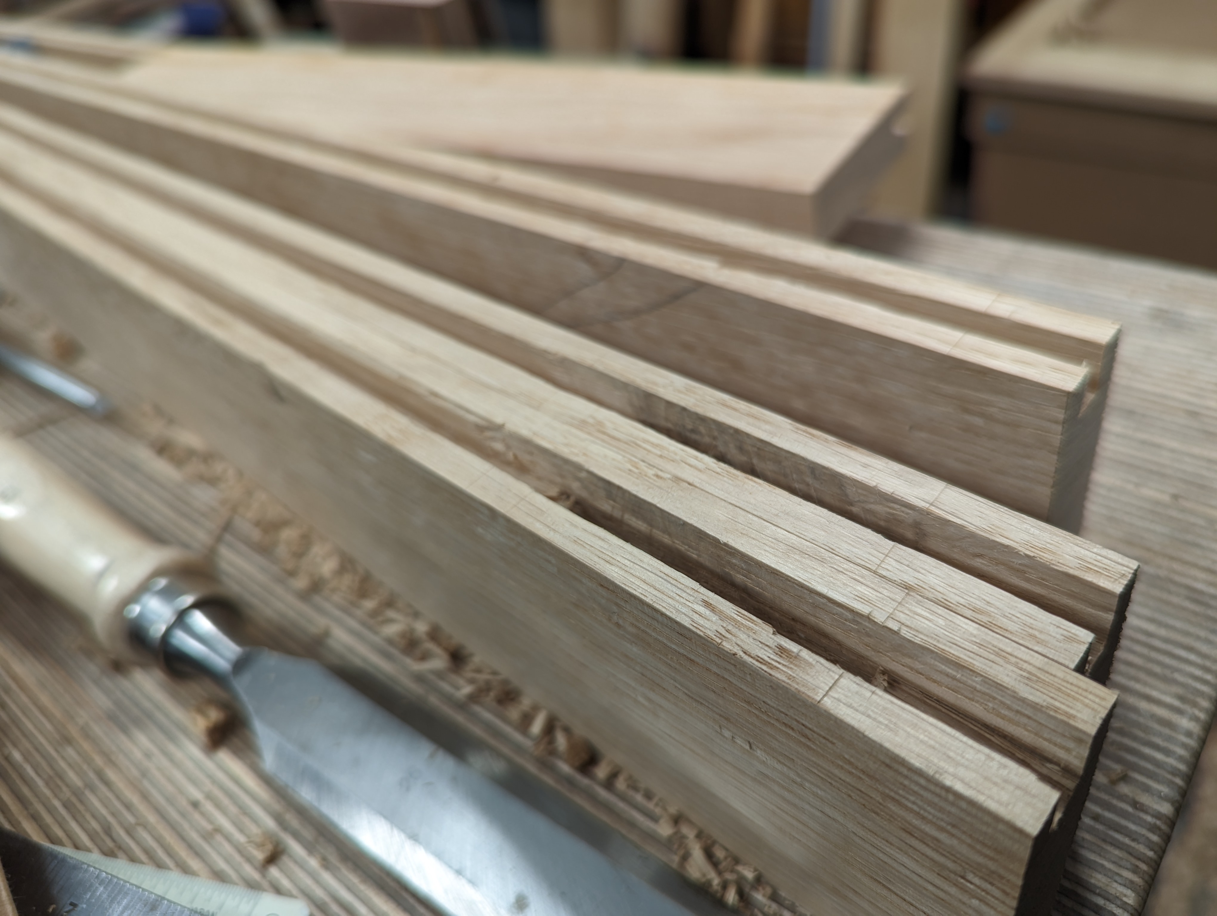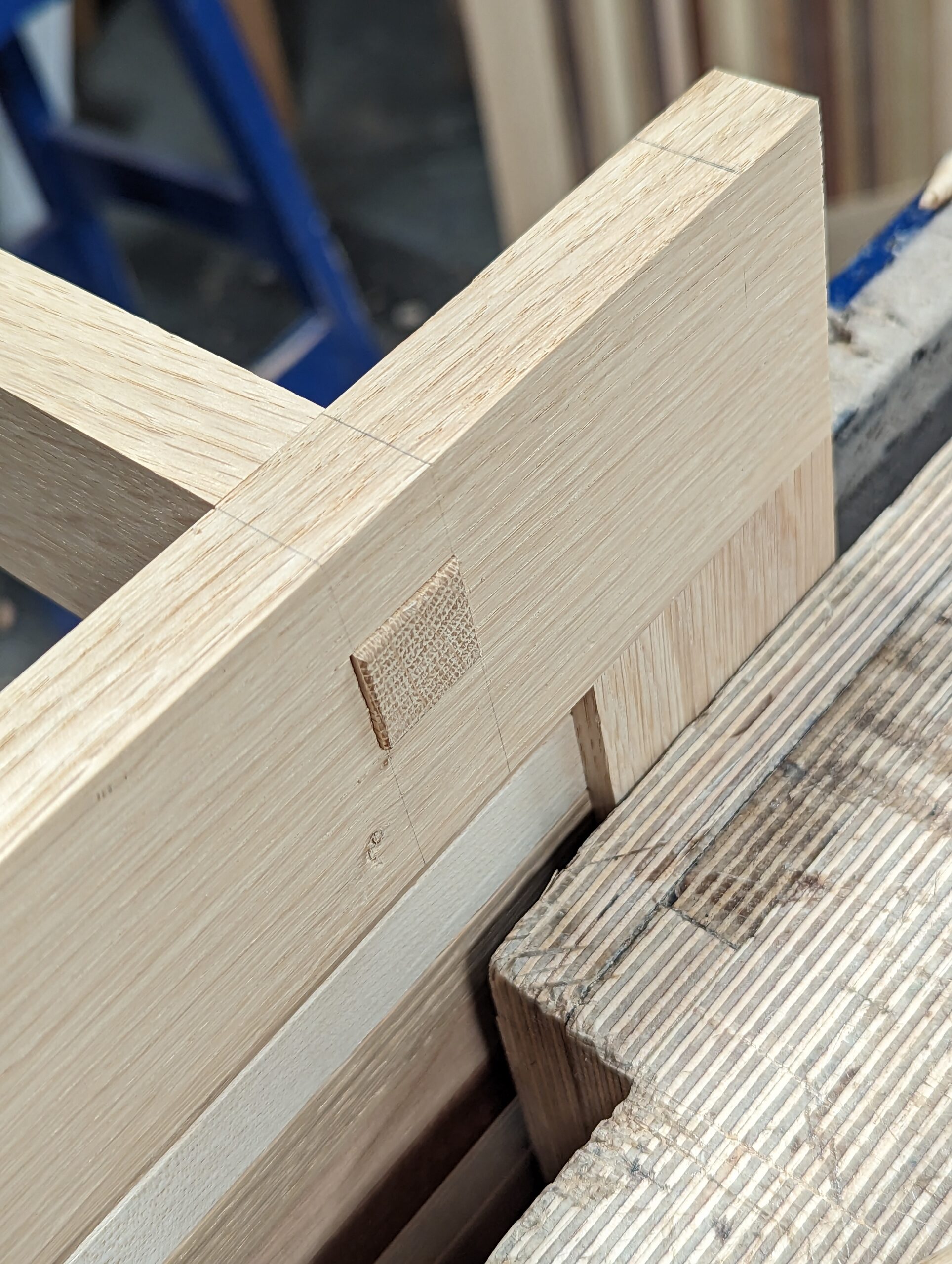 All in all there are 36 hand-cut mortise and tenon joints to be made in the end, along with eight hand-cut, half-lap and stepped dovetails. It's not unpleasant work but accuracy is important.