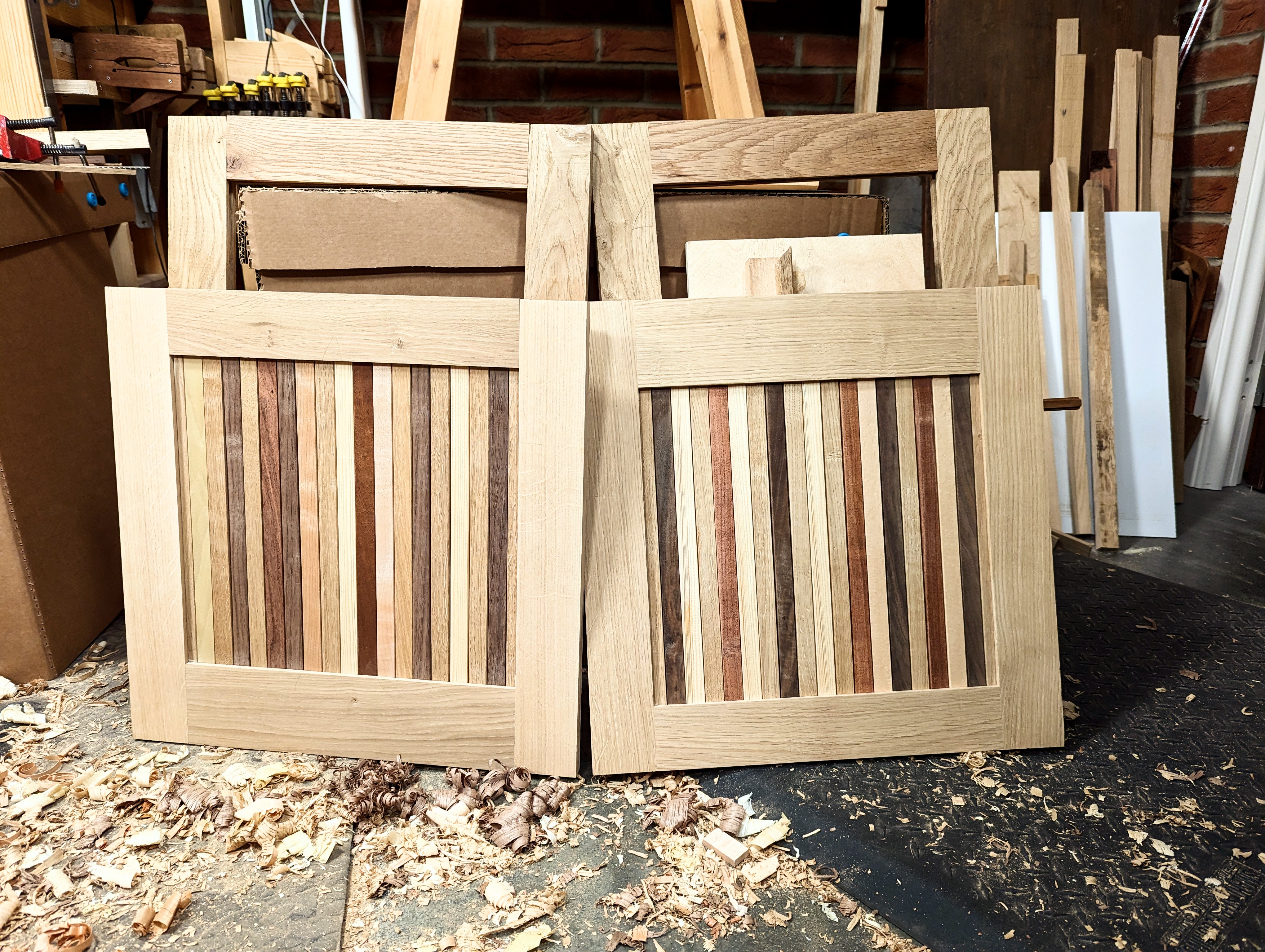 48 more oak pieces gave me the frames, so another 192 more faces, and every stick and stem hand planed with a Stanley #4 and #5 bench plane to take them from rough-sawn to super smooth so in no need of further sanding. Quite a workout.