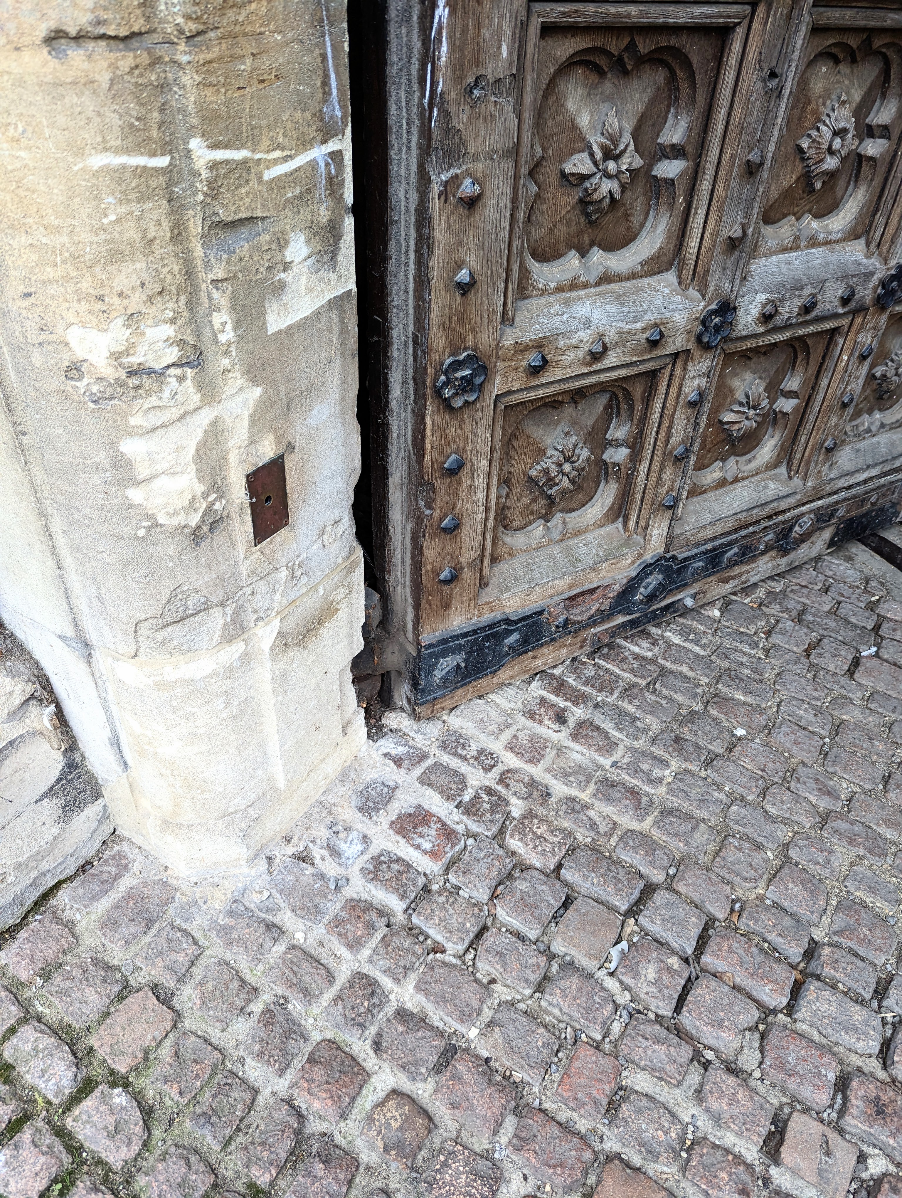 I look in corners behind the metal and wood and stone for my information and the intelligence of the man-maker making the work of the architect stand 300 years in front of me. I see doors too heavy for hinges alone and trace steel tracks in the stone setts and cobbles now operated by electric sensors answering the calls from the cars remotely to gain access and close behind them.