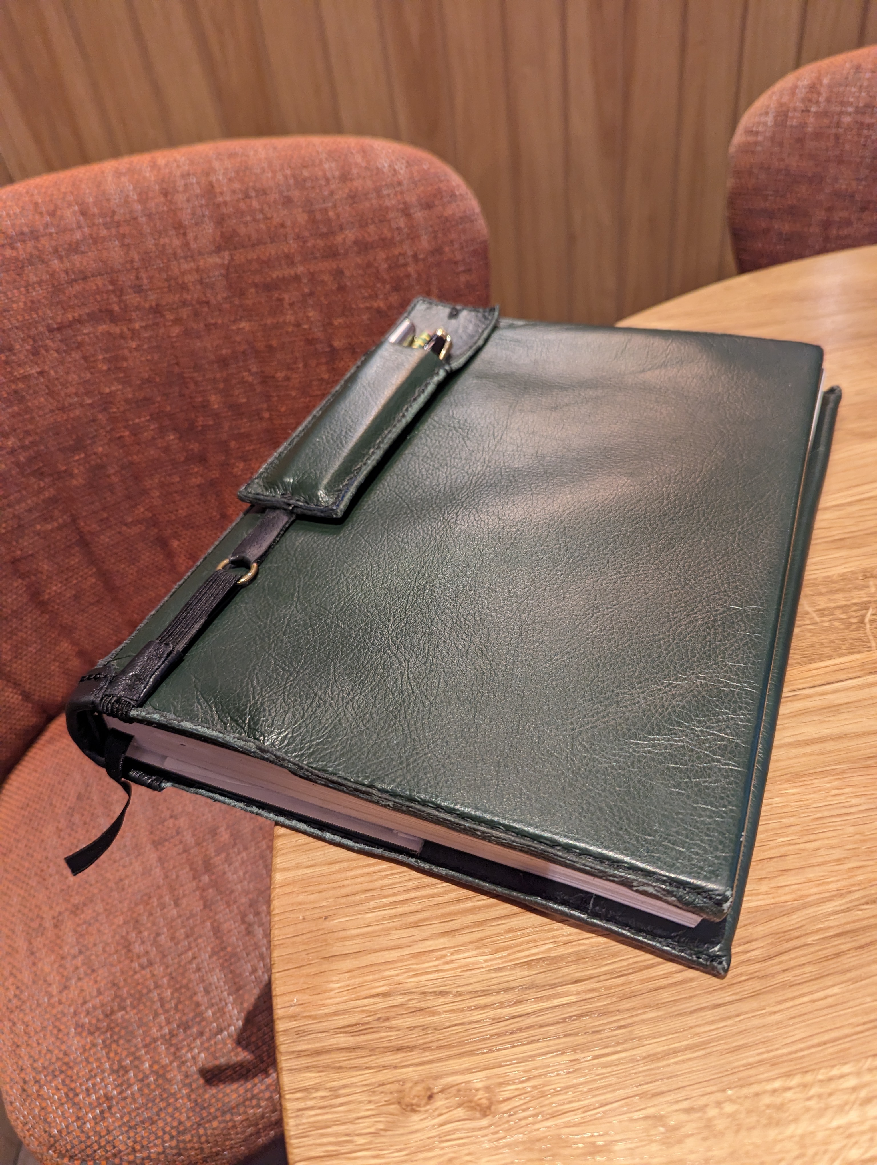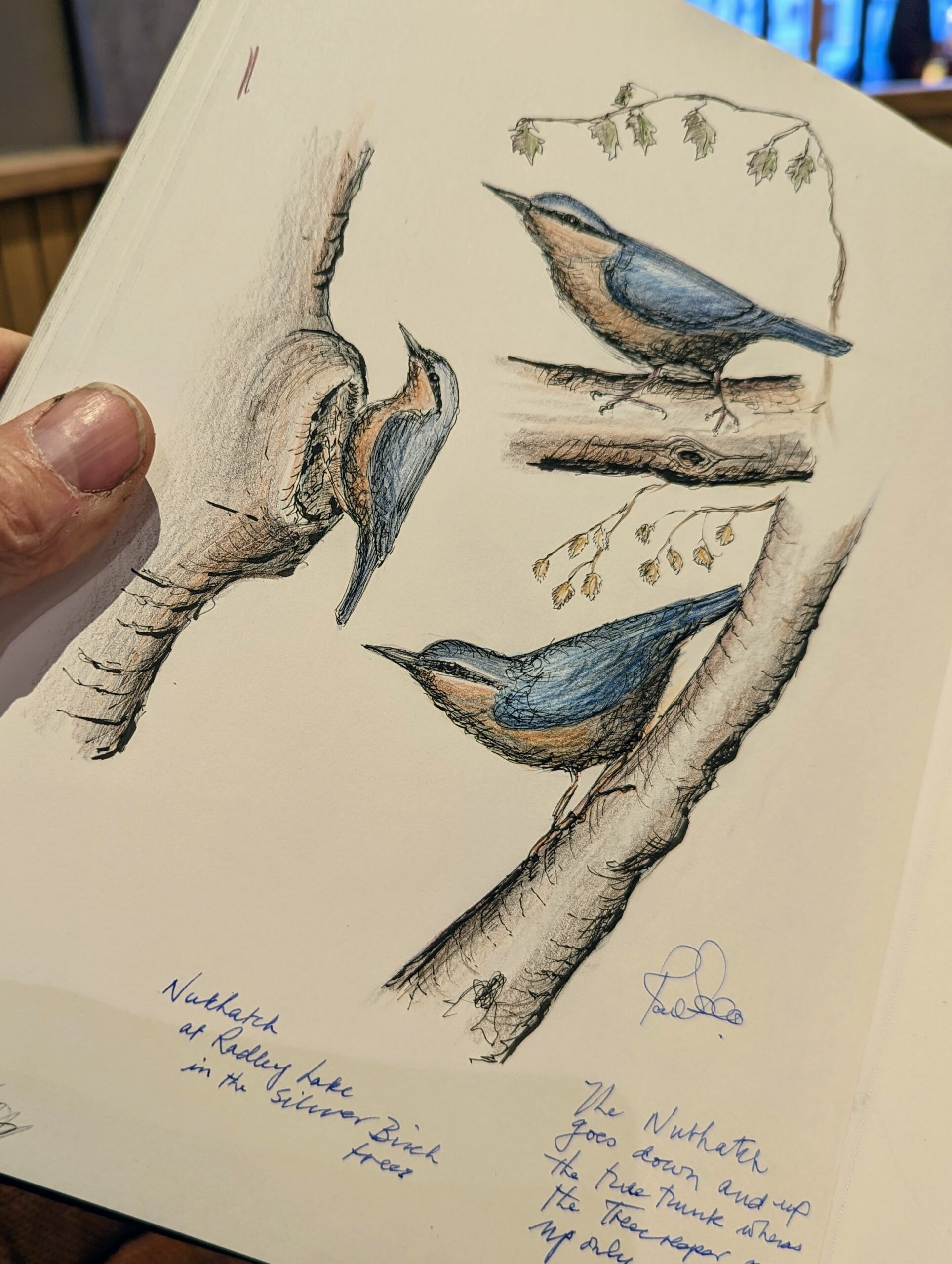 In Oxford, we also have one really fine art shop just across from Blackwells called Broad Canvass, hinting at the street name Broad Street in the shop name, where I buy my art supplies. The staff are so knowledgeable and willing to help and you can search and buy online. If you are like me and find what supplies you like to work with you want to have a consistent supply. I have but a four-year supply of my Barns and Noble sketchbooks left because, as it is with all good things, these came to an end a couple of years ago when B and N stopped selling them. Thankfully, I'd bought a ten-year supply. They have smith-sewn permanence but extra fine and unnoticeable perforations if indeed you want to take out a page. Hannah sewed me a leather cover that has been so welcome in keeping the innards safe and stowing my pens and pencils in the front holder for quick sketching and notes.
