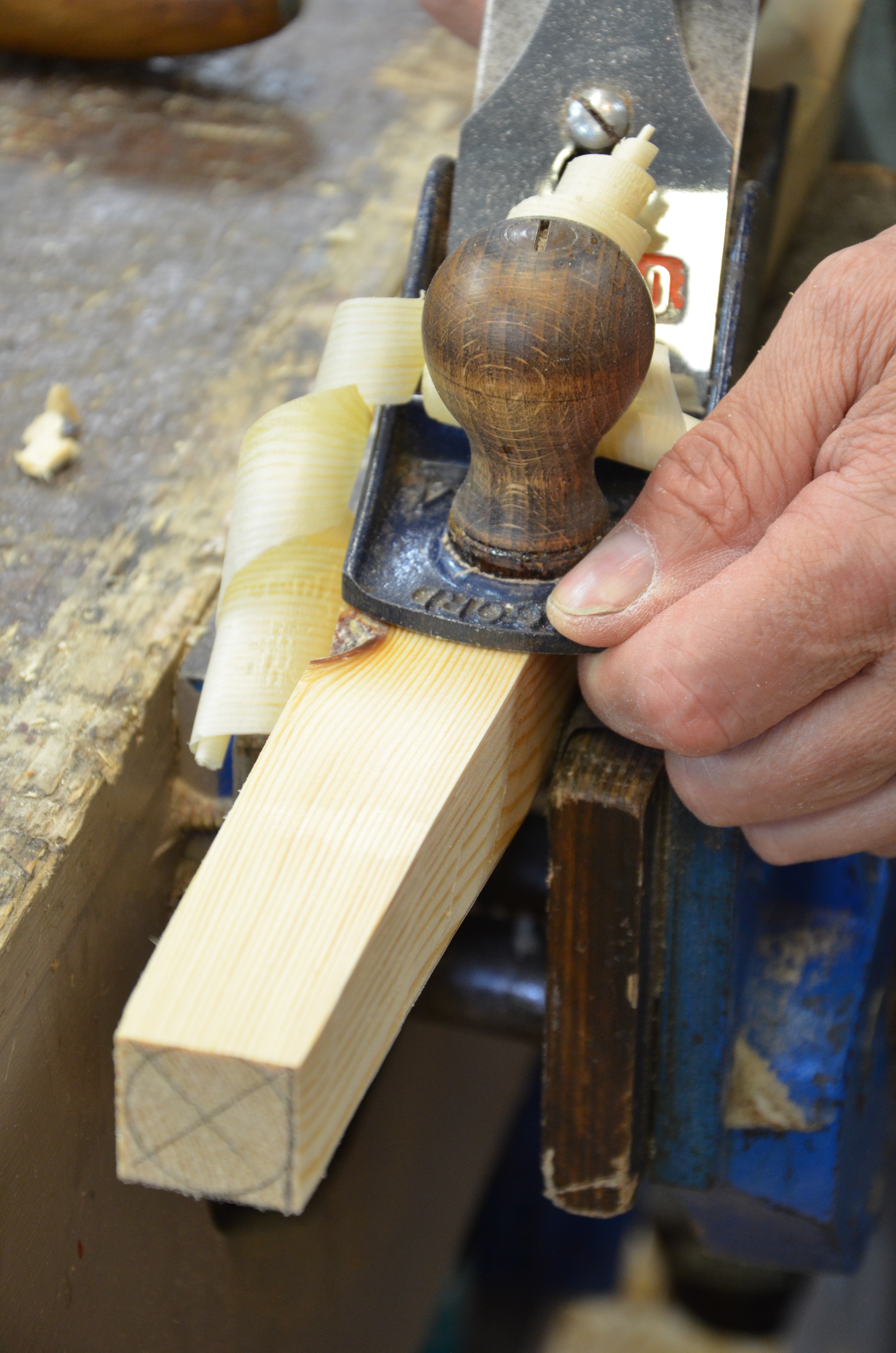 I’m not sure what intrigued me from then on but mostly it was the effortlessness exuded by the magician in control of his audience. In just two minutes and what seemed to me a single sweeping pass from left to right, my introduction to something I never knew possible was complete. Soon I would have my turn on that lathe. This, his simple dextrous movement with the gouge, mesmerised me. With the wood spinning in high-speed suspension between head and tailstock, my fascination grew. Shavings spiralled upwards like a sky-filled fireworks display to a rhythmic background whir of wind, the vibration of the motor, the wood and the gouge. The long plumes of ash twisted as swirls upwards, stopped midair and then spiralled softly and slowly to the floor. But right then, when a boy was talking instead of watching, Mr hope seemed apt to skew the gouge and direct those spirals into the ever-open mouth of the recalcitrant. Even that action showed the measured control the master had. Nonetheless, when Mr Hope asked who wanted to be first, my hand had shot skyward ahead of all others -- I did not want to miss the start of this journey. He took me first to the bench, handed me a bench plane, a No 4 Stanley, and showed me where to plane. Drawing 8 lines along the length of the billet using his finger as a joiner’s finger gauge, he placed it in the vice and gave me my first lesson with the plane. In fits and starts, I removed the corners down close to and in some cases beyond those guidelines. Amazingly I formed my first octagon shape 20” long. It took most of the lesson, but with his assisting along the way, I was ready for the lathe.