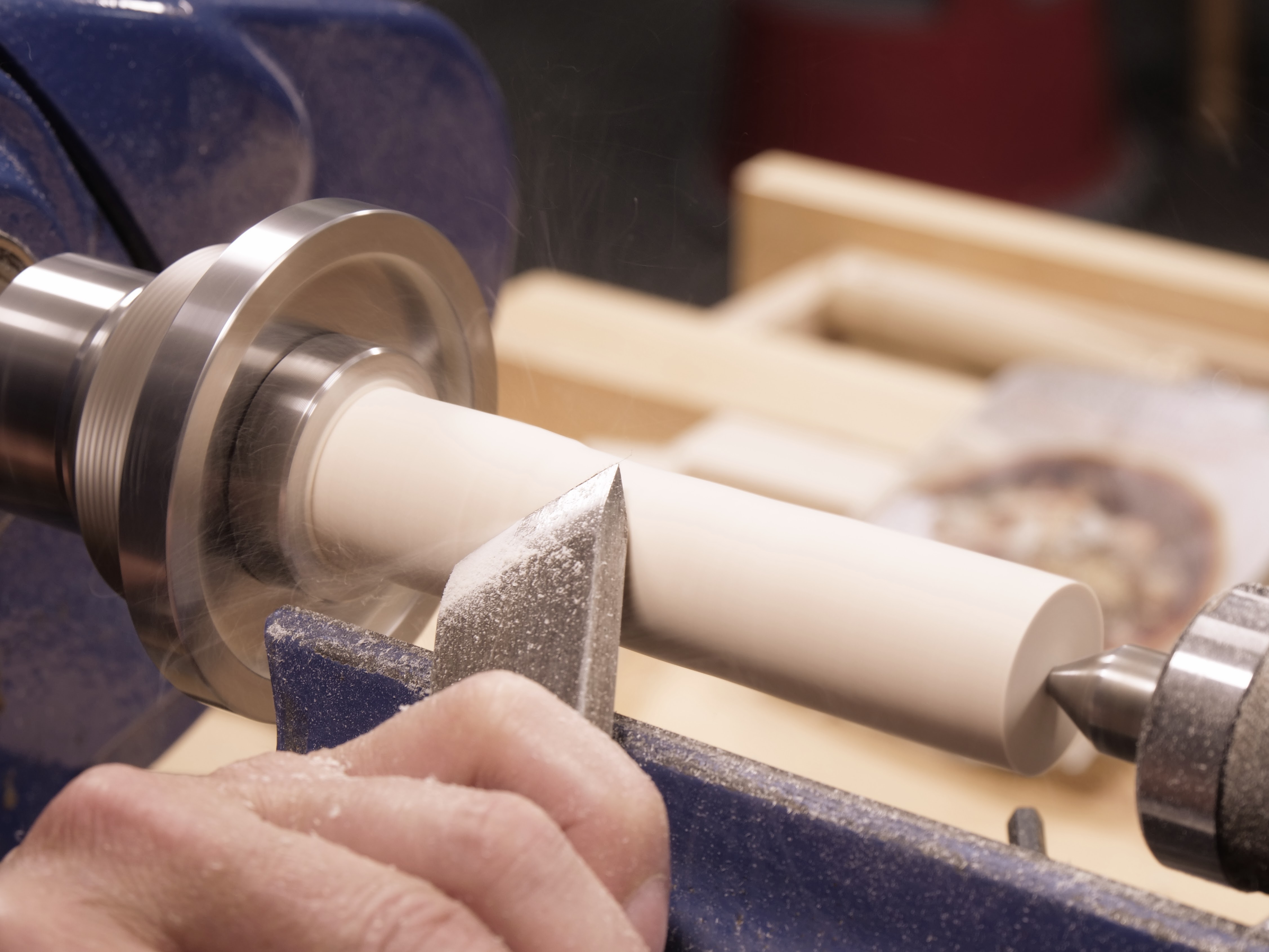 In my school days, 1955 to 1965, shorts were for children and long pants were the demarcation starting manhood. I felt like the short-trousered child being tipped into the long-trousered world where something called adulthood began; I was about to do something so totally grown-up for the first time. It was a machine that made the difference and I was about to use one. The wood, held between two points, was as my life, suspended between the points of childhood and adulthood. The gouge was the tool that would add shape and character and my taking the billet from square to round was the defining of growth. The theory was at least good, the intrigue held me in a place of fascination, of anticipation, of future. Mr Hope’s bony hands did express his experience that showed me what was at least possible; that was all I needed.