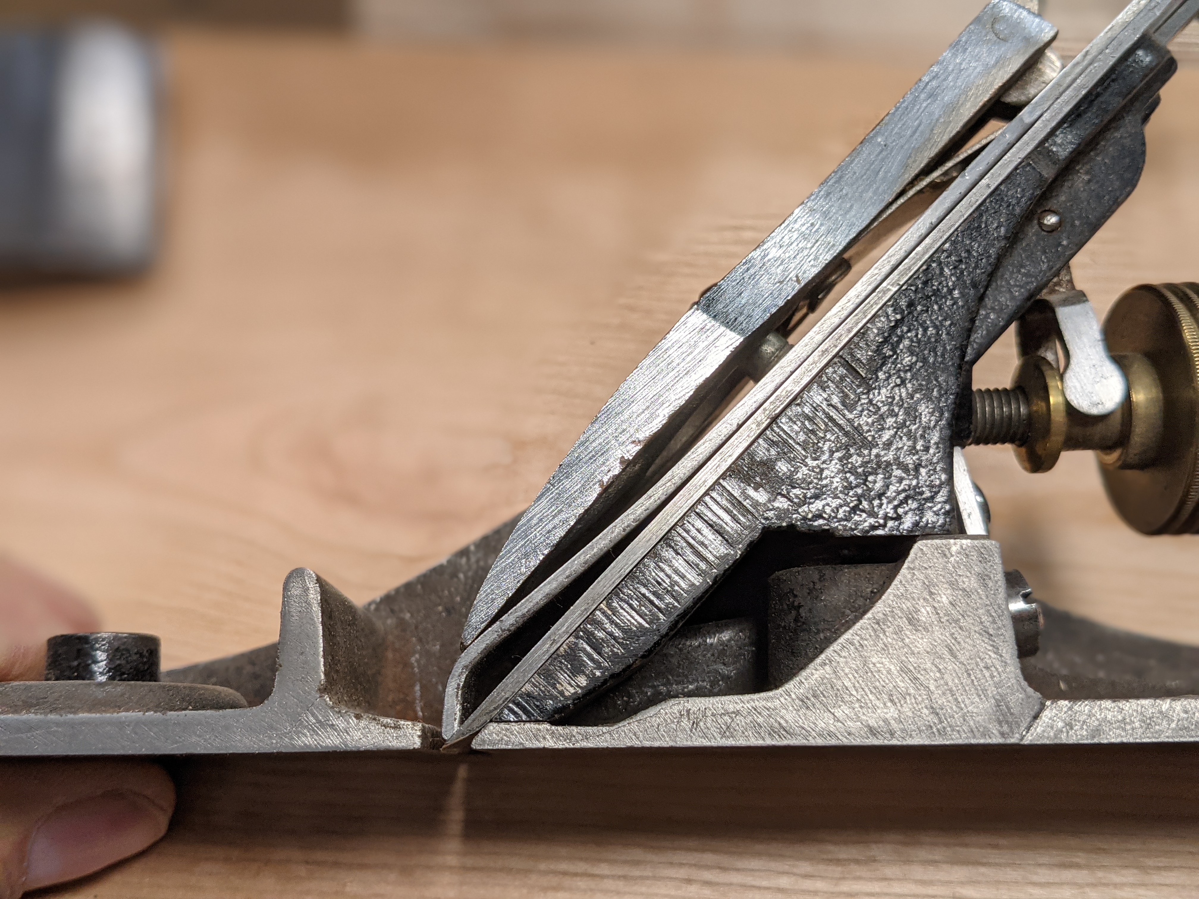 All metal planes are quite different from other tools because of the moving parts and then too the added attachments engineered to micro-adjust and give preset distances as guides and stops. I say metal planes because metal planes lend themselves more readily to the attachments I speak of although there are one or two wooden planemakers out there too. The more moving parts these surface refiners, grooves and rebaters have the more risk there is of something 'going out' on us. Also, these components will almost always affect performance in different ways in our using of them. With the rigours of using the planes, stops and fences, guides and cutters, holders, etc are frequently knocked to a different position. Therefore all planes of every type need minor and major adjusting.