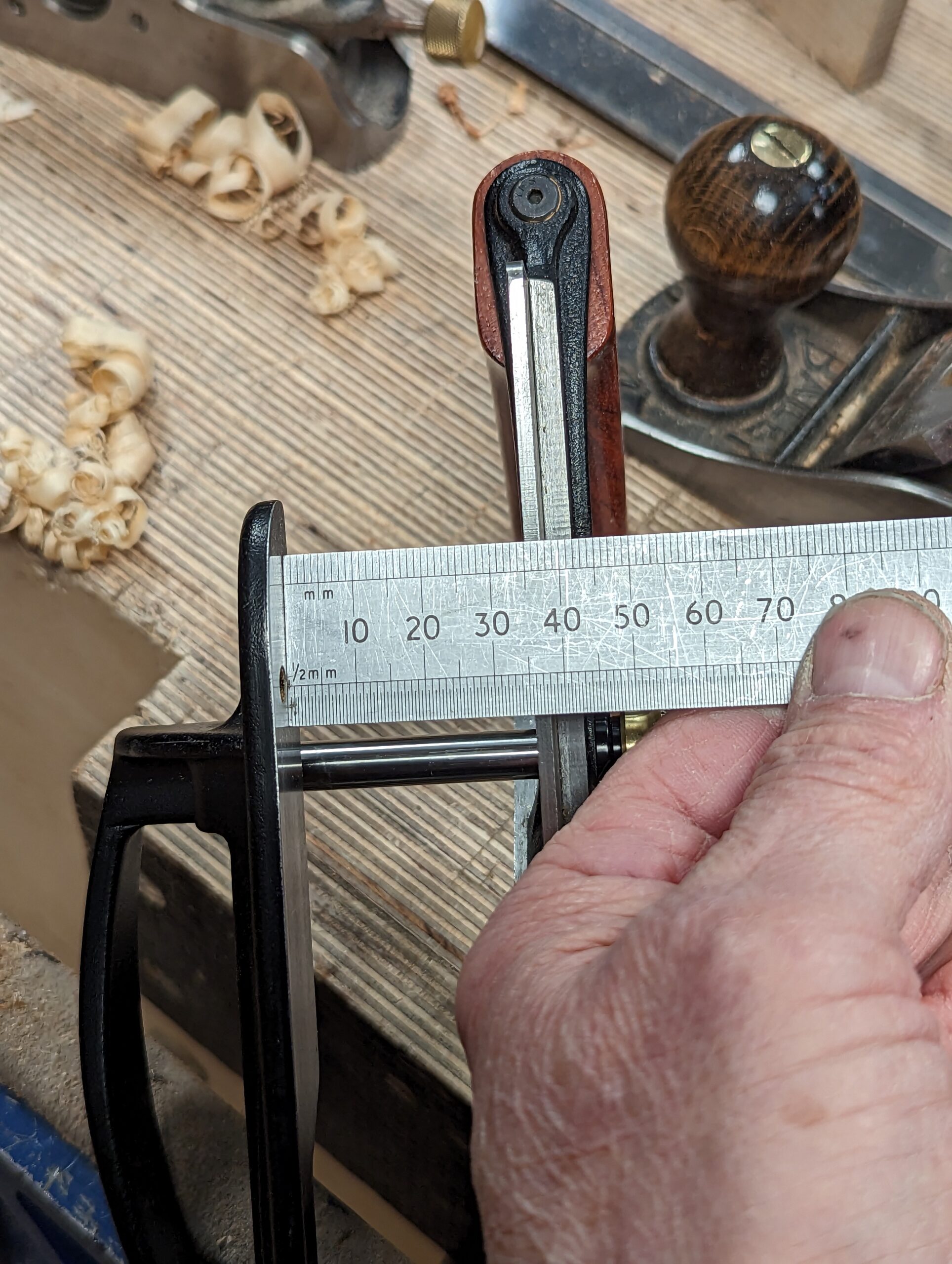 That being the case you will eventually look for certain elements to adjust that makes them work or makes them work better. The fence too needs to be at least parallel to the sole of the plane or slightly more open at the rear end of the plane. If it tapers the other way the plane tends to jam. The bench planes we often use require only a few minimal tweaks to set up after sharpening but micro-adjusting them is an ongoing necessity as you change the depths of cut intermittently or indeed reset them because of certain grain awkwardness. Plough and rebate planes on the other hand seem always to need thinking through, in the zone, at the time and according to wood and wood grain type. The more you do this the quicker you will become at adjusting and then too being aware of what problem might specifically be occurring and the sooner you can get on with the ploughing or rebating. I should point out that fence parallelity is usually out by a millimetre or two and sometimes more. One millimetre usually does not affect the plane enough to be always problematic but it might be in some cases, harder more dense grained woods can affect the planes performance markedly. Of course, any more and it will make the plane awkward to use and can jam the plane as the cut deepens stroke on stroke. I don't know that any of us have the ability or the wherewithal to fix such engineering issues like this. You could abrade the fence but that is a bit iffy. The best way we woodworker scan correct this discrepancy is to add a compenating tapered fence in wood, which is the best plan anyway as the plane works so much better with wood against wood rather than metal.