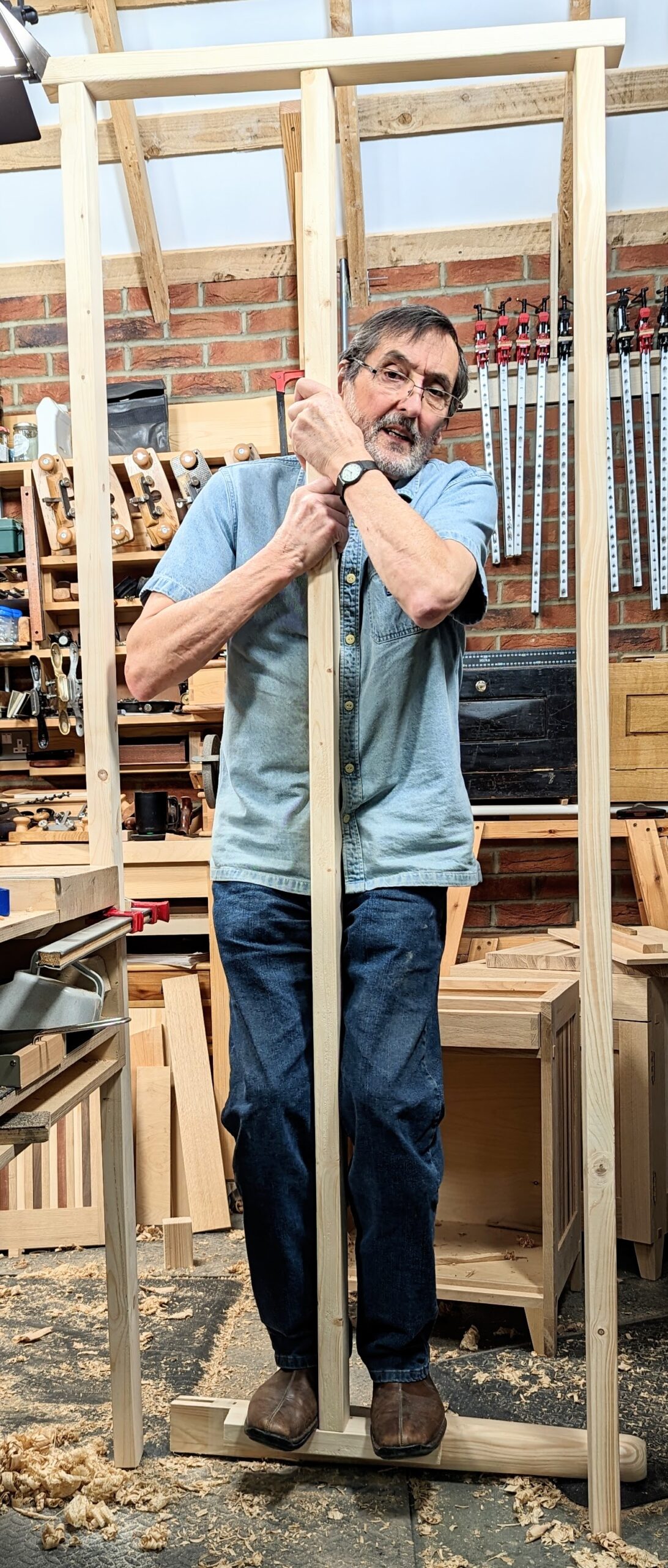Here was my experiment today. It took me ten minutes and I felt it was worth the doing. I made a mock door frame, hung a two-by-three spruce stud from the opening two inches above the floor by a single screw into end grain and stood on a step piece I had screwed into the end and into the end grain. I tried it three times stepping off a two-inch high board so I could get even pressure to each side of the stud. I weigh 75 kilos (165 lbs) `and the screws top and bottom held fine even in ultra-soft spruce. There was no glue. These interesting experiments bring enjoyment to my work with you. In the Facebook post on screwing the dovetail, it was the legalism that I know we are all capable of. Questioning authority, the concept, likely originated with Socrates, but there was much questioning taking place in the 1960s when government used manipulations and machinations to control people into thinking bigger numbers of people suggested the right path would always be taken by the majority. In the few comments countering my desire to use a screw in the middle of my dovetail, there were 12,000 likes and a couple of hundred criticising the use of the screw.