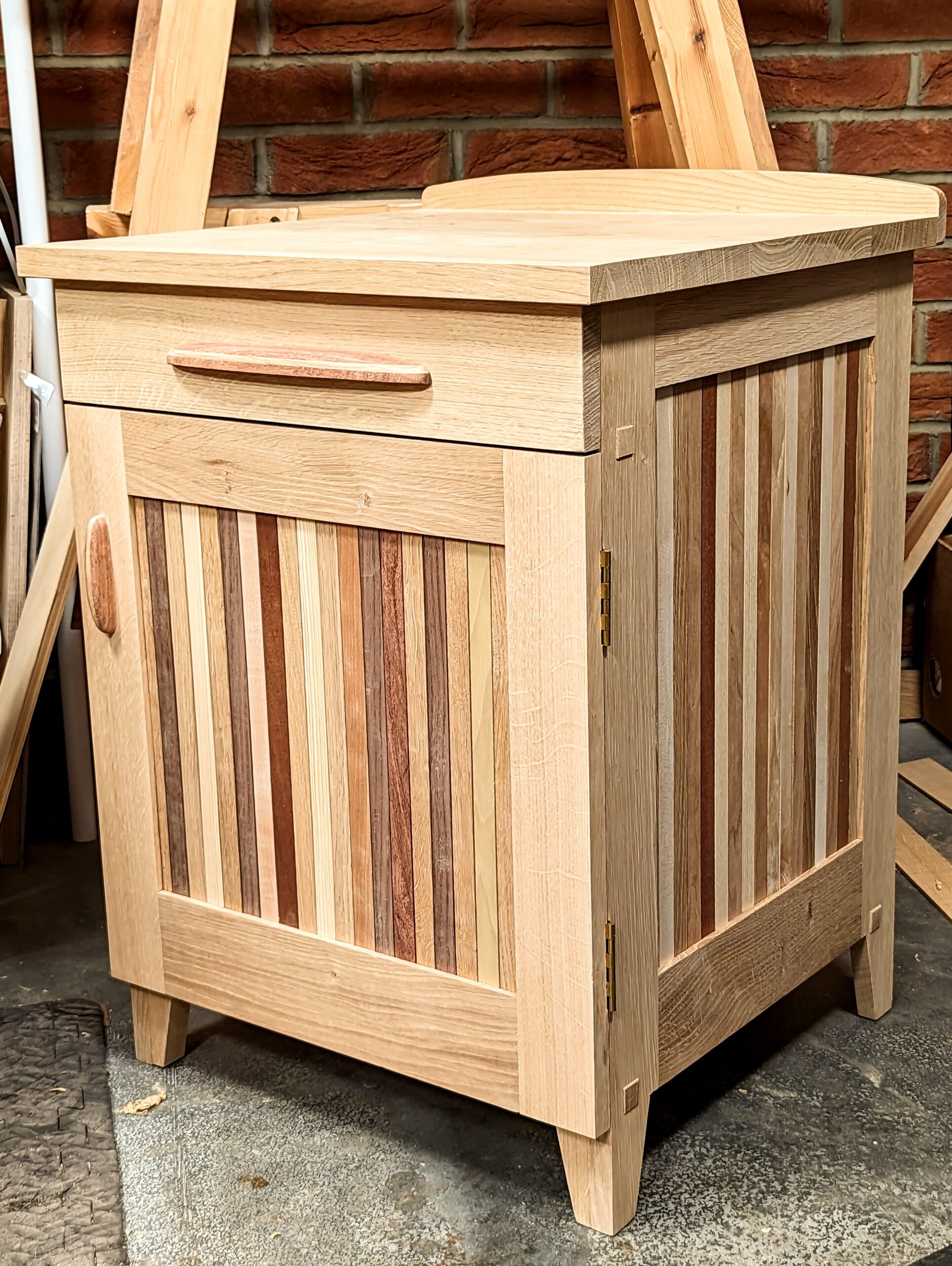 Today my life is utterly different than in those of that intermediate period when I needed to increase production levels to satisfy the demand for my then more mass-made work. I was in the valley of decision where I needed to see what was not to see what something was. Seeing the first of my two bedside cabinets replete with the finish on took me back to when I was a teenager making my first commission for six bar stools using only my hand tools. I am still using some of the very same hand tools today but enjoying them all the more after over fifty years of using them. What did I invent on this project? Well, not so much an invention as just a few simple ideas. The panels are a bit different but then there are all of the ingredients inside, the complexity of never-to-be-seen joinery in harmony and solidity. Despite the opinions of others via the Facebook post I put out a week or so ago, the outcome simply pleases me. You see, I knew what I was doing. Design is not just how the thing looks when done, it's the composition of inventiveness and creativity in the internal workings of the joinery. Remember, the root of the word joinery comes from the word harmos, where we get the word harmony. The design is uncompromisingly mine. It made me happy.