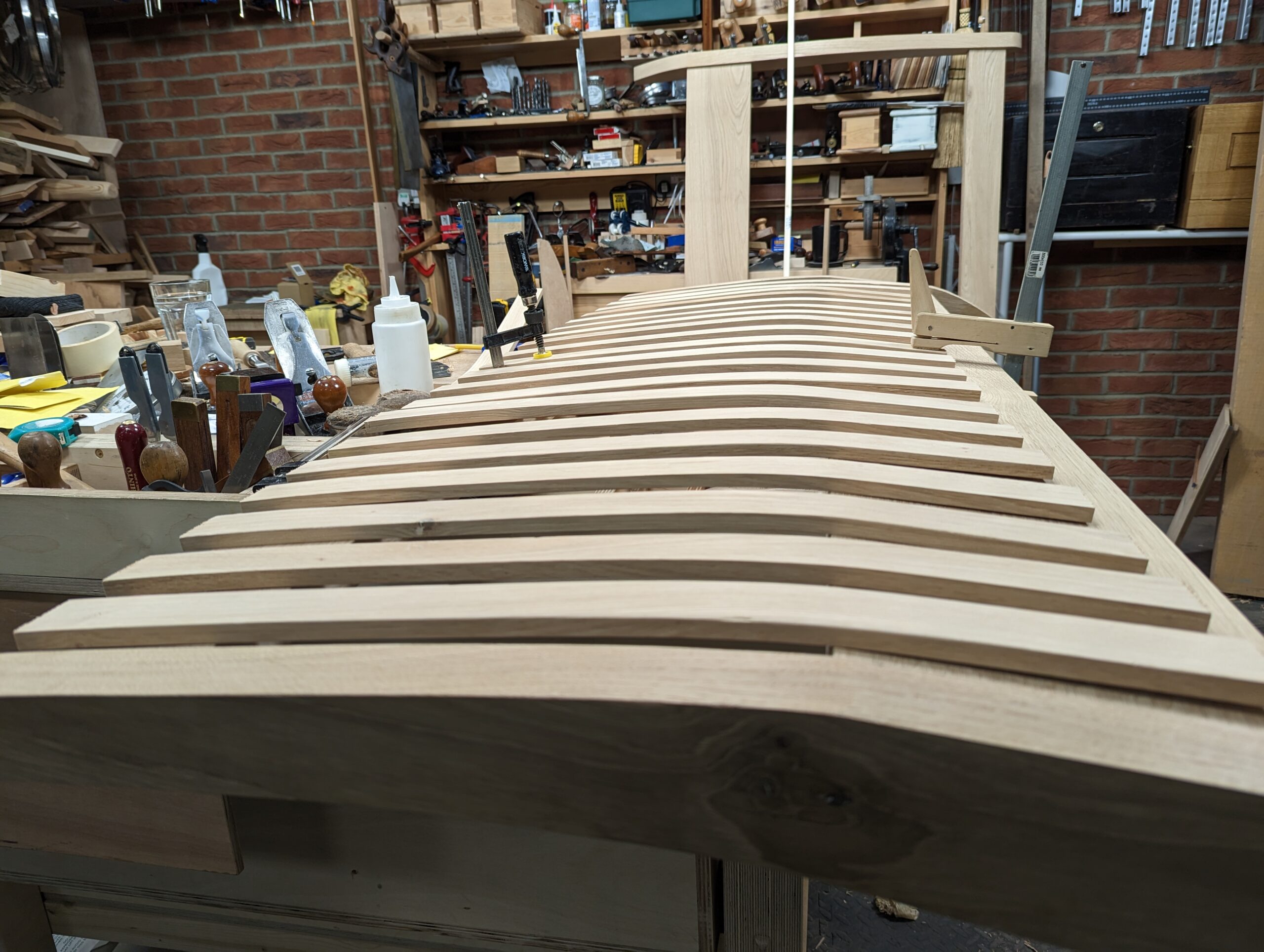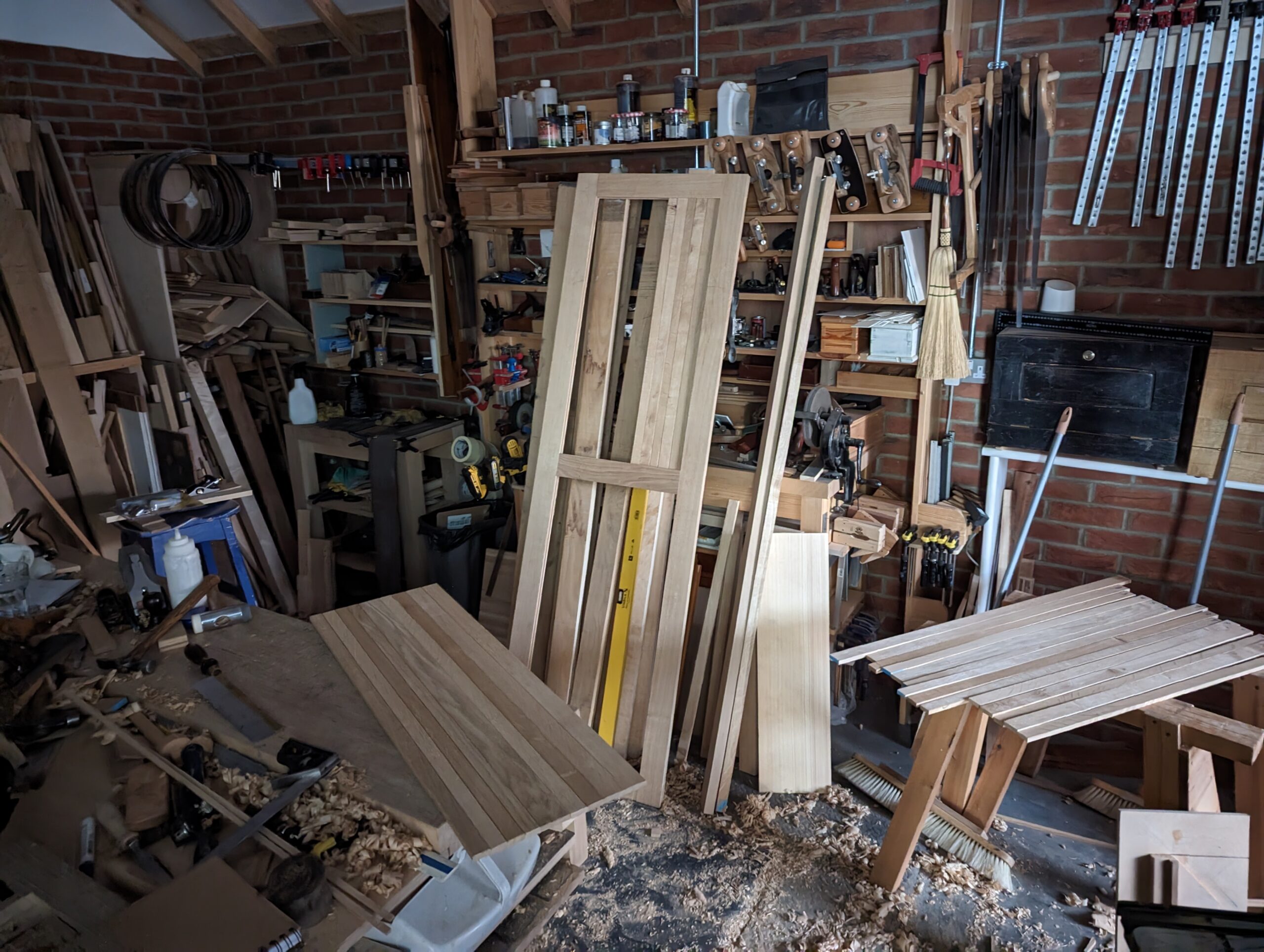 My garage workshop needed to be an important part of my life but the place was noticeably far too wet for serious making along with a level of comfort that is important in work. It was time for some deep digging to weed out faulty perspectives on damp proofing and insulation caused. If you want to feel a healthy regard for the tools and the wood to be kept permanently there and then use them there too, some remedial action was inevitable. The garage was gutted, old concrete and ground base lifted out, ground dug down a foot or so to install waterproof membrane, underfloor insulation and new concrete. I dry-lined the walls and insulated the whole to make the most remarkable difference because brick is not waterproof. Because this was an existing building, I wanted to keep what I had rather than demolish it. Today it's completely dry and even heatable for winterised working. Yes, it was radical. perhaps I should have left it as it was and built a shed for half the cost but I didn't want something there that could not be real, secure, fireproof and fully. functional long term