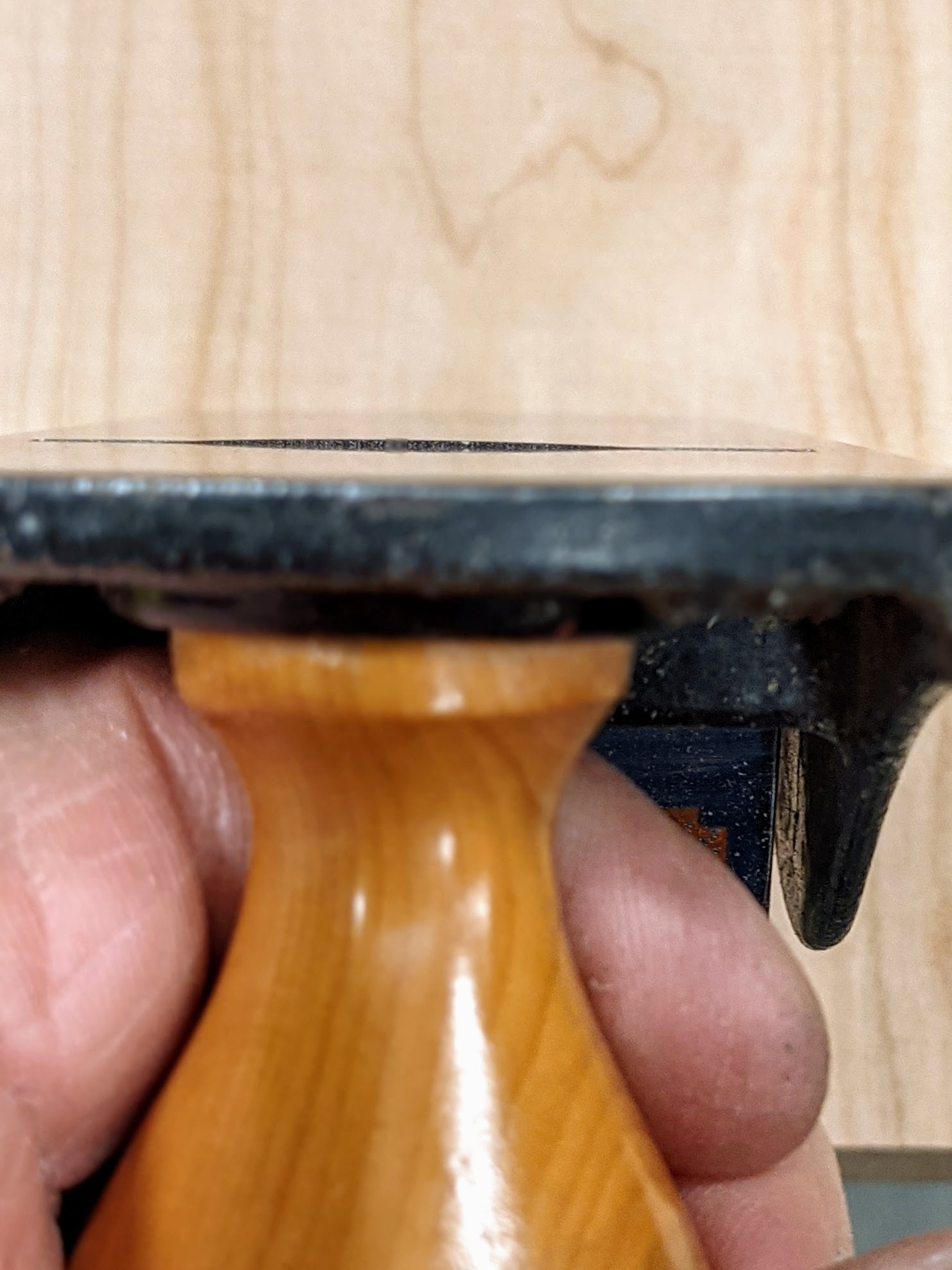 I have grown to love my two scrub planes for what they offer me in the day-to-day of preparing my material for final refining. This practice is not new but old. Vintage wooden planes went through various restorative processes as the soles wore down and their mouths gained a wider opening. That would most likely be after 50 years of use. Wood is a surprisingly resilient material and especially beech, the predominant wood used in British and North American hand-plane making. Such planes were ready to use as scrub planes with no more adjustment. The wide mouth gave gain and heavy shavings achieved the goal of heavier cuts and a mouth open enough to allow the expulsion of thick shavings. Cast metal planes are less accommodating and the mouth must usually be filed to open them up.