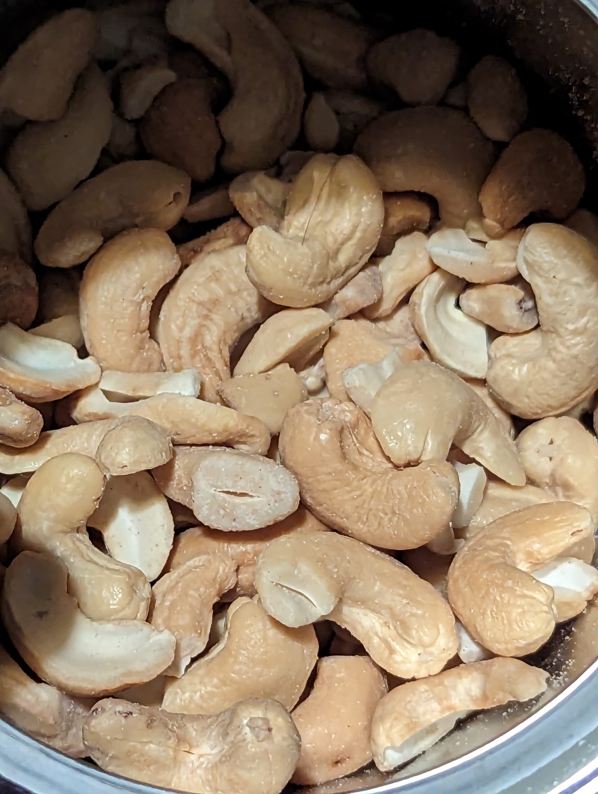 I ate some cashews last night. I noticed in this batch that there was a percentage of the nuts that were dry and crunchy, I particularly liked these.