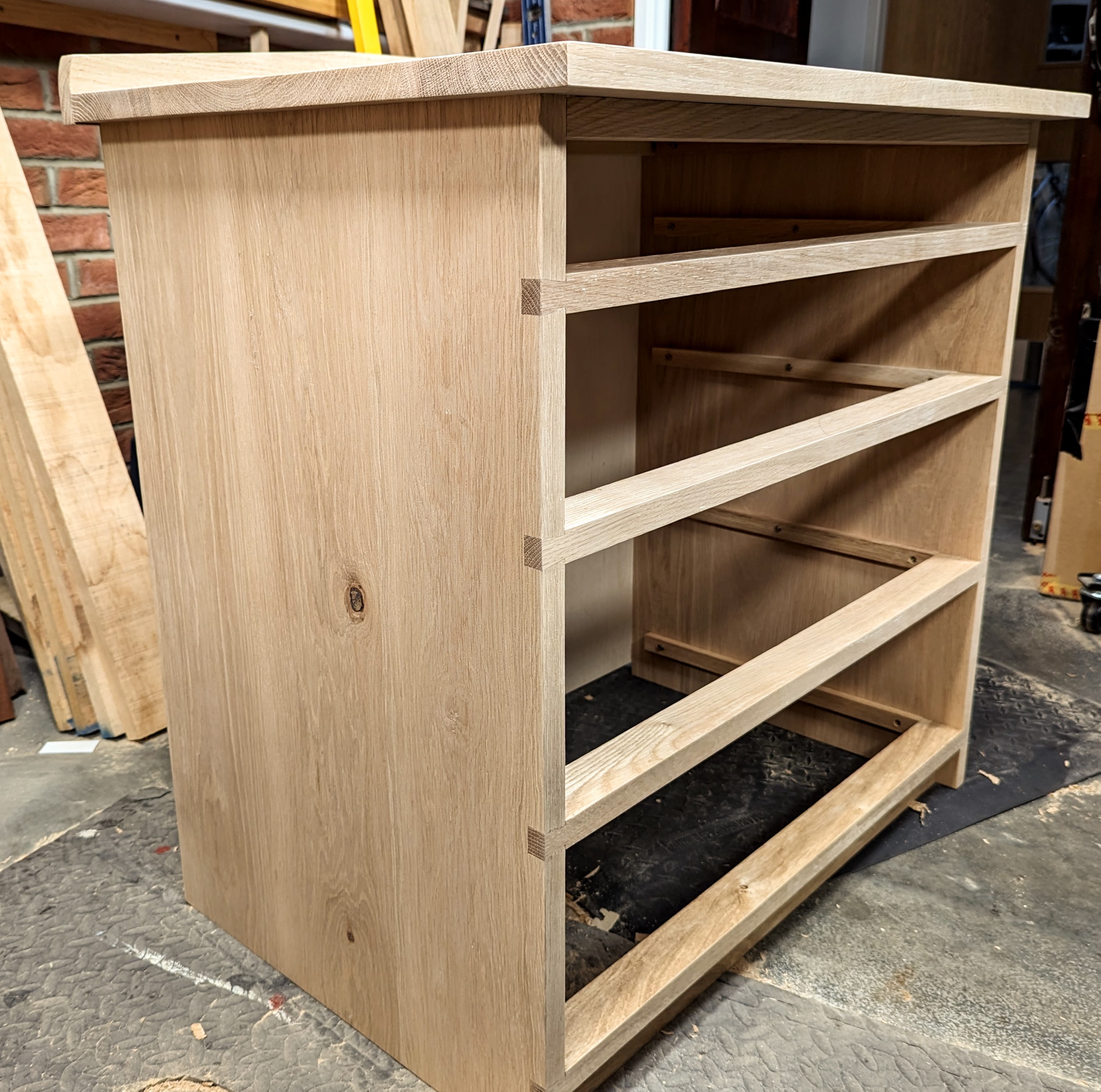 The important lesson I have learned as a hand tool woodworker is that any discrepancy will inevitably telegraph into the overall outcome. Two shoulder lines out of square or distanced slightly differently will almost always send the whole marginally out of square or out of parallel, often both. It's the small things that can make a big difference and with chests of drawers, we end up matching the drawers to what we created as openings.