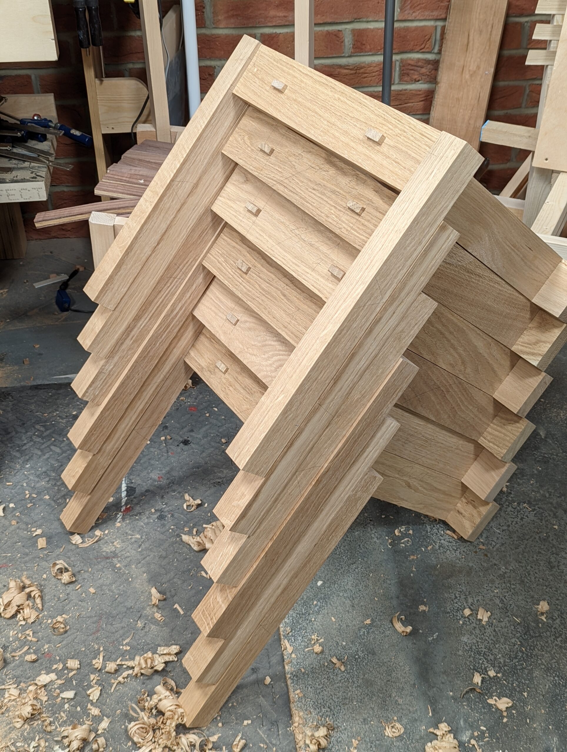 Moving on into the upstairs and thinking of kingside beds and wardrobes can be a little daunting but the challenge for me was making things that could be moved singlehandedly by this 73-year-old man. So between making and moving, climbing stairs and installing, I had my work cut out and remember that the only machine I used on all of these pieces is a bandsaw and no I did not buy machine-planed stock, only rough-sawn.