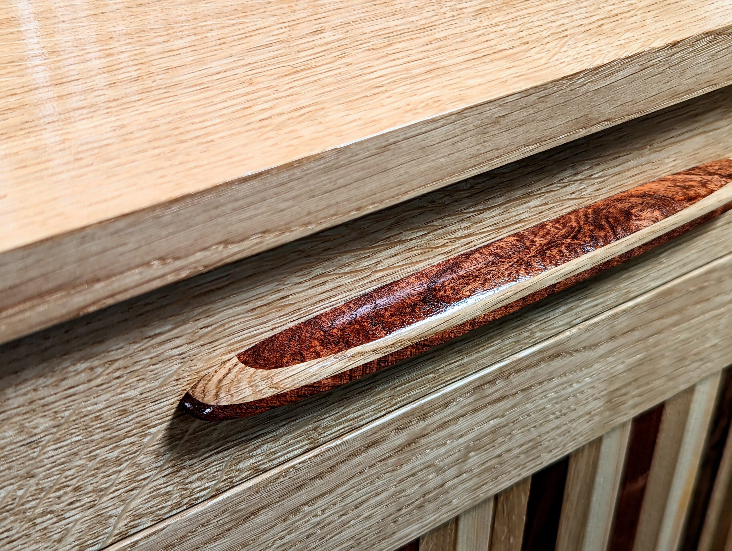 Another rather complex-looking piece is really nothing more than an oversized dovetailed box in sycamore and mesquite. I made two of these, one for the underside of the wall cupboard.