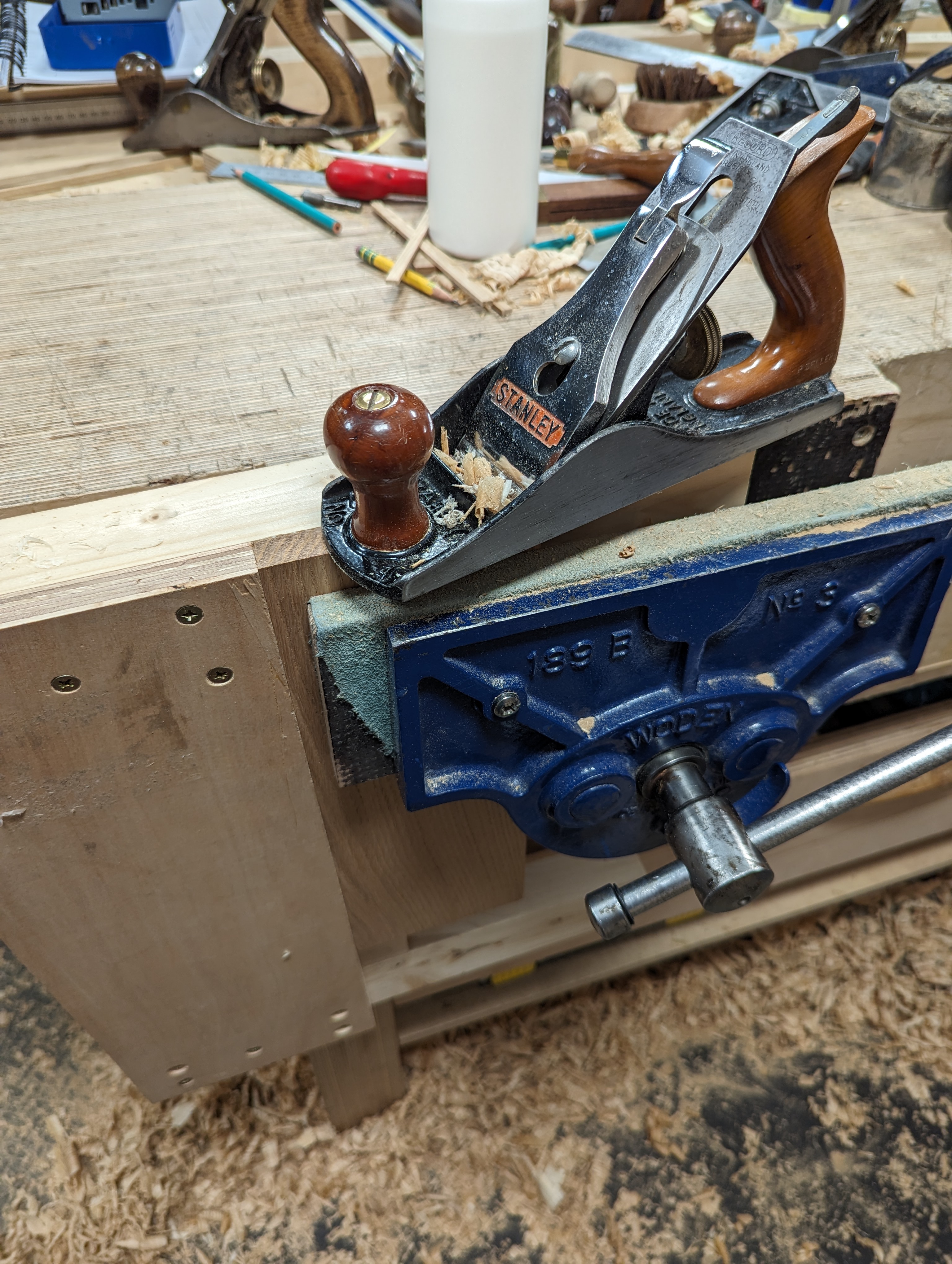 A thing that is most overlooked by the 'professional' questioners is the natural posture of planing vertically with the plane using both hands to support and manipulate the plane to the workpiece and the security of both guide and piece locked as they are in the vise. Nothing moves.