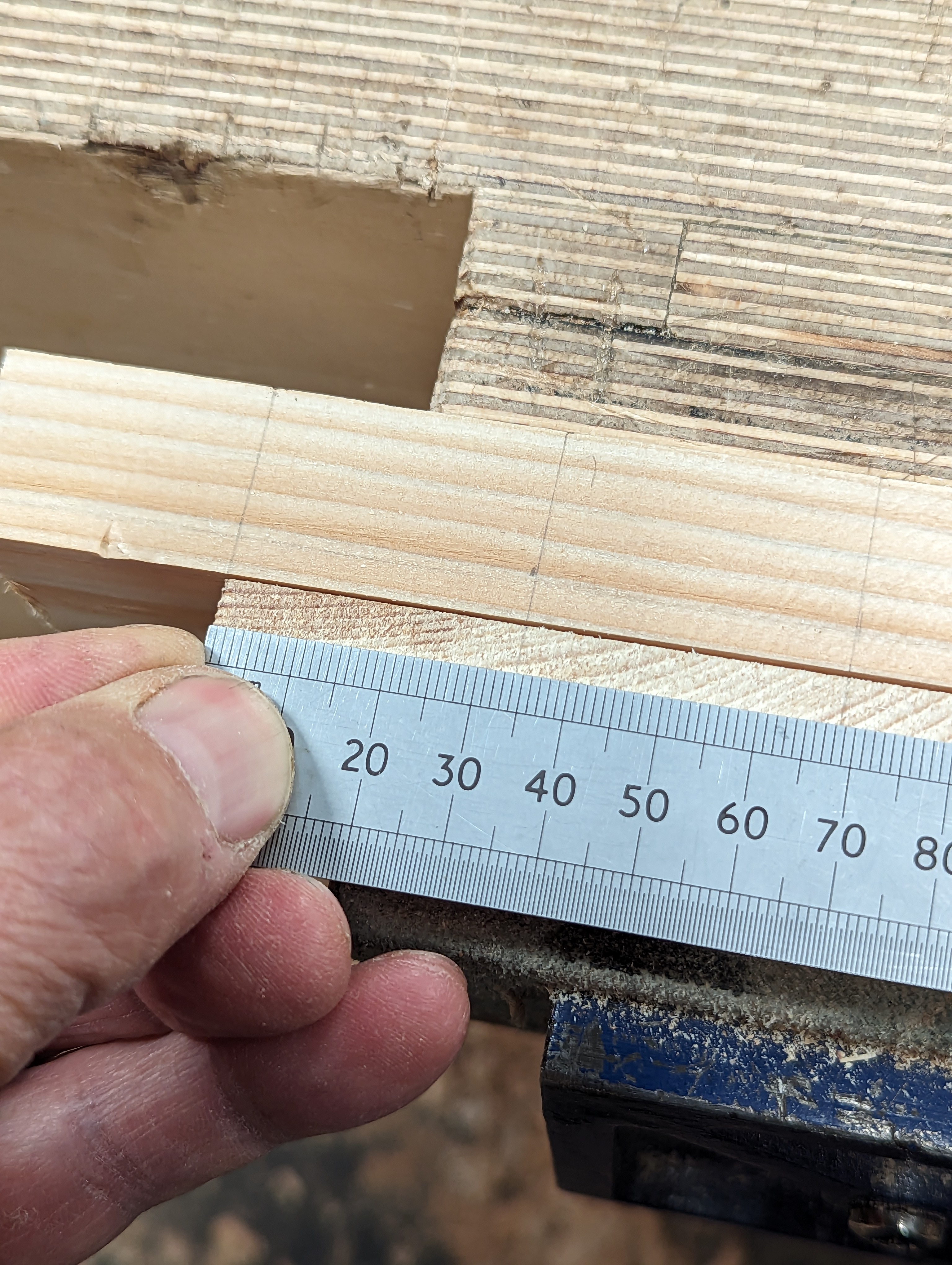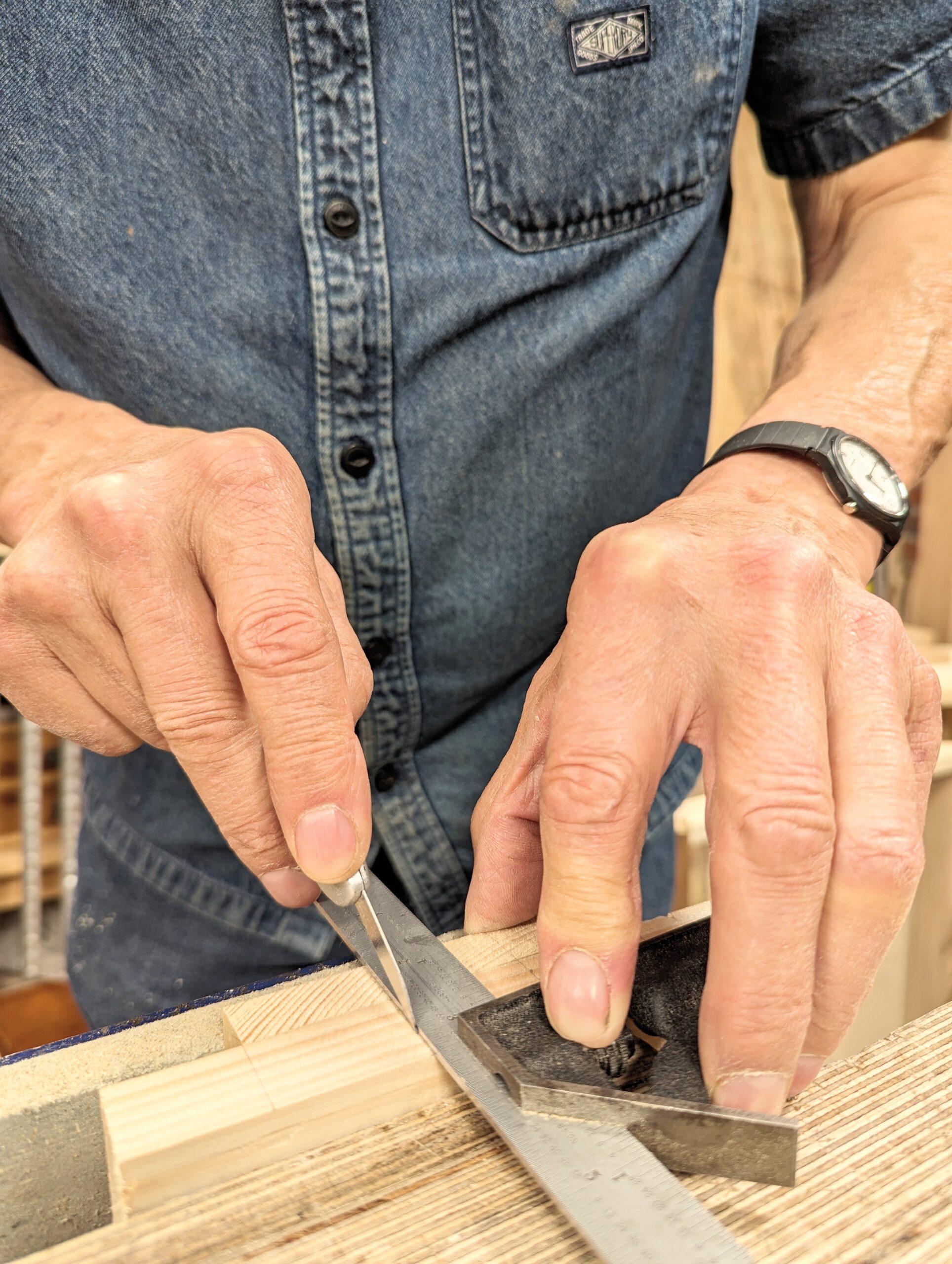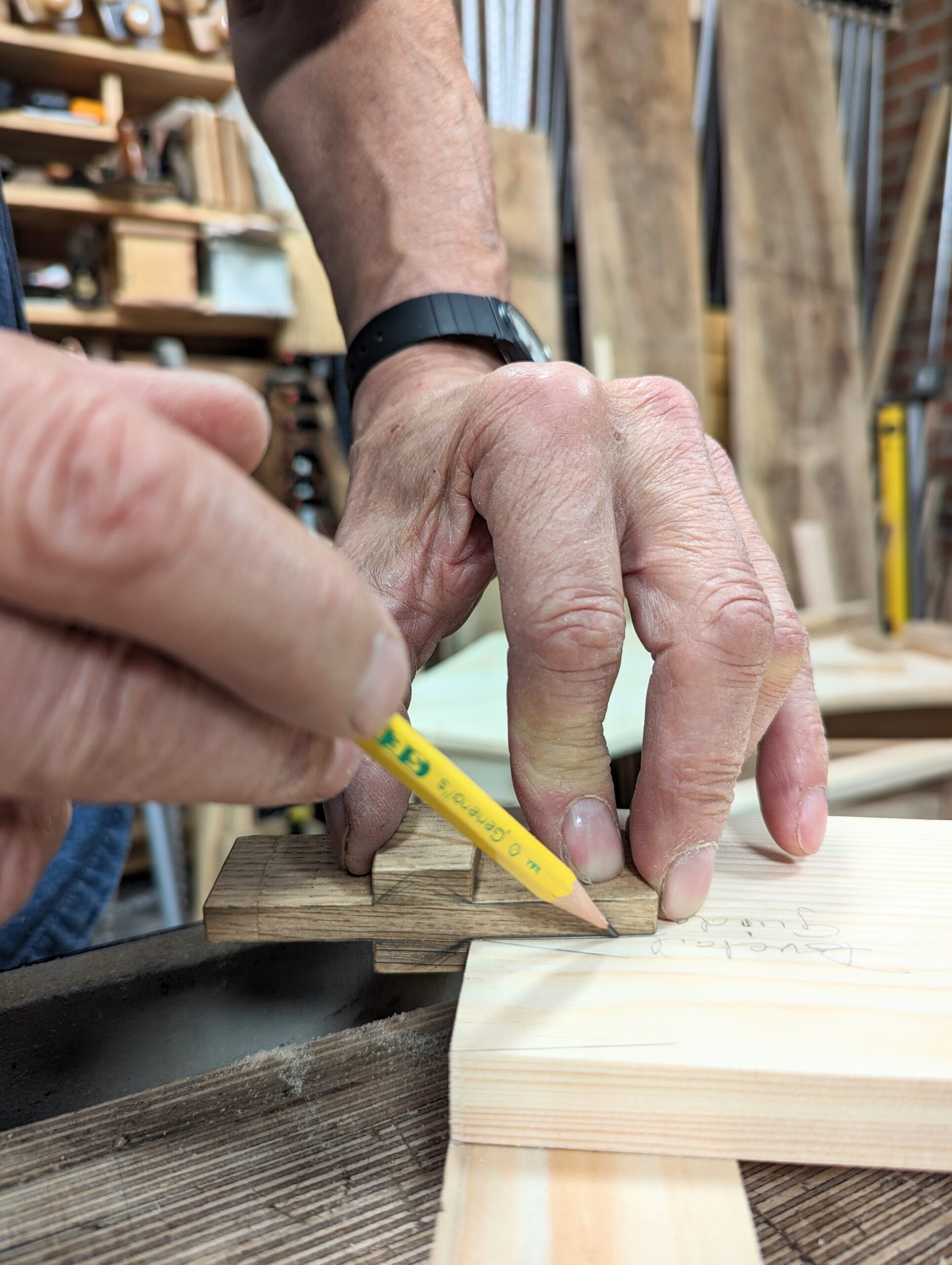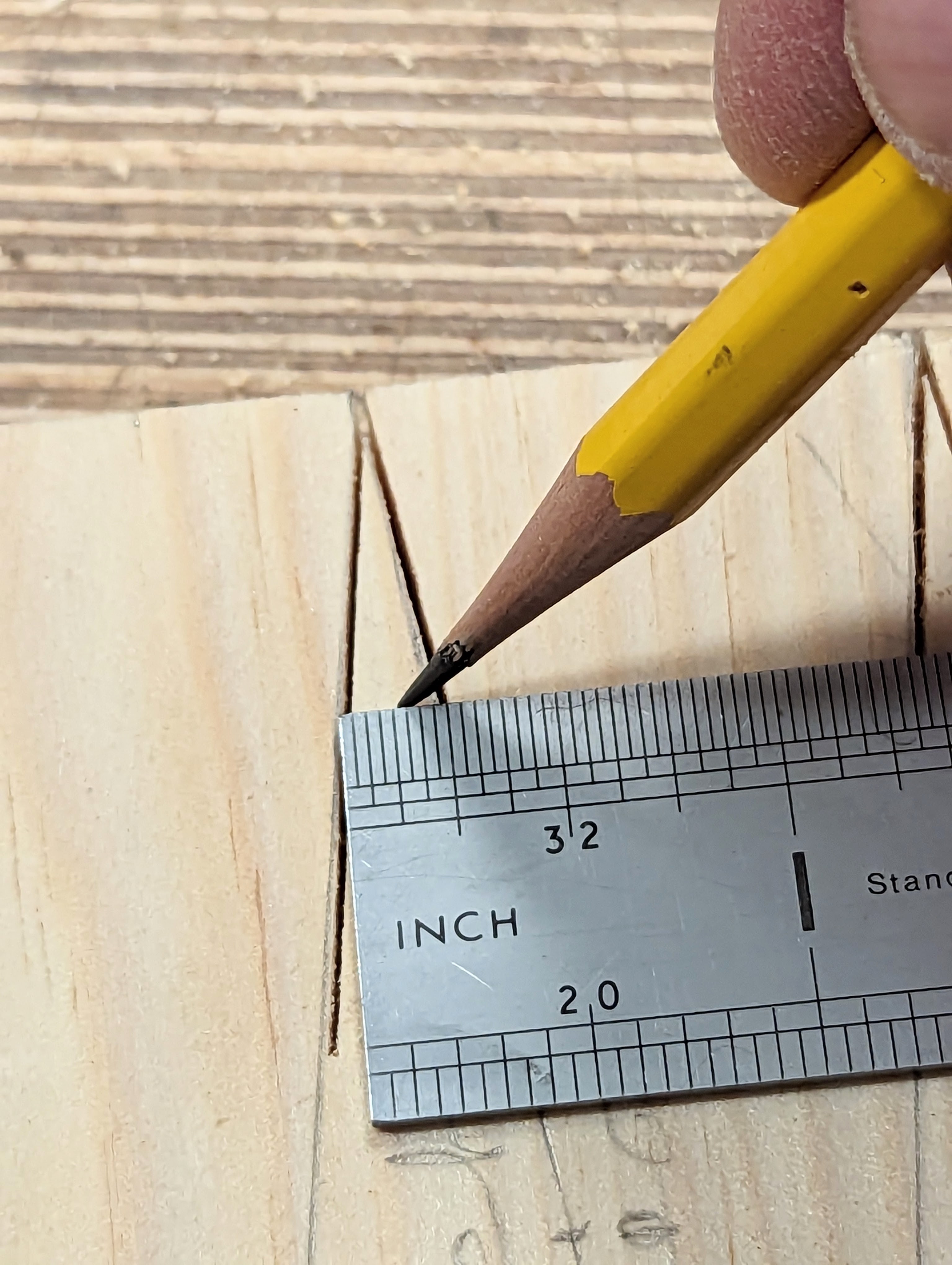 Marking the position for the 3/4" depth mark for aligning the workpiece to.