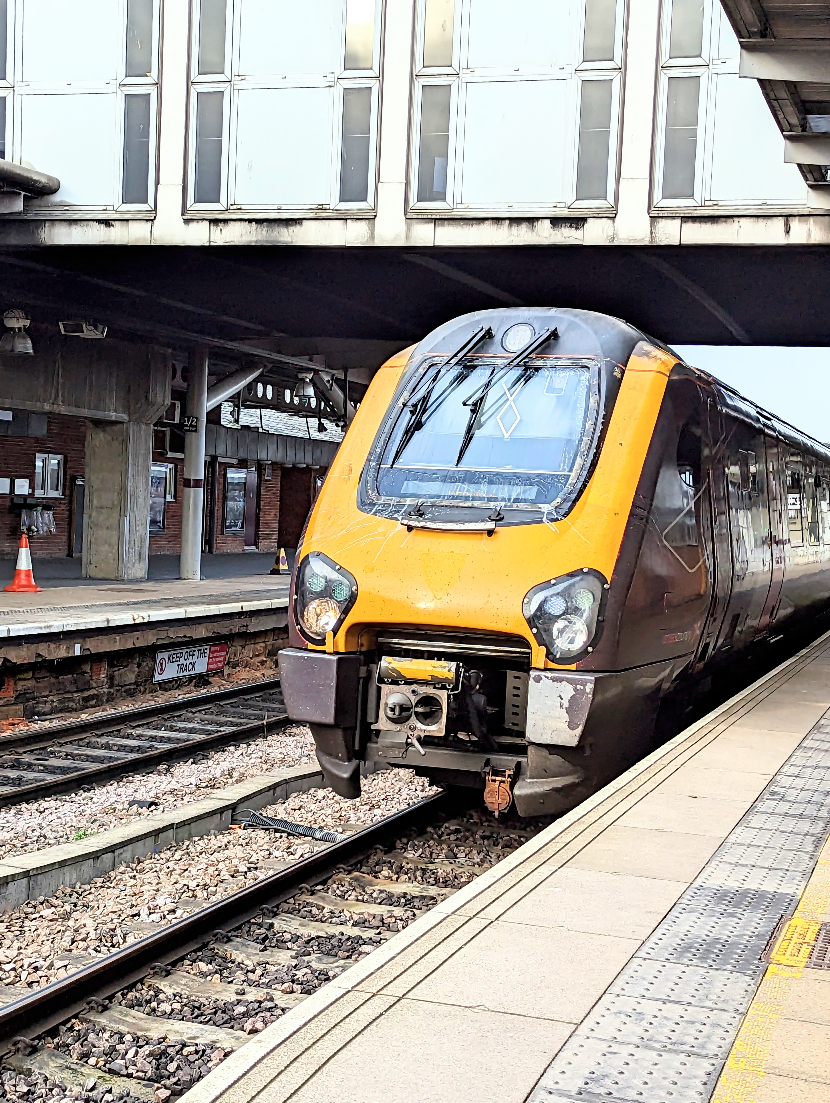 My taxi arrived to take me to the railway station and I said goodbye to Derby. The train came in on time and was zipping along the two zip-wire rails to Oxford. From there the bus outside took me into the city centre and as I got off that bus my next bus rolled up behind it.