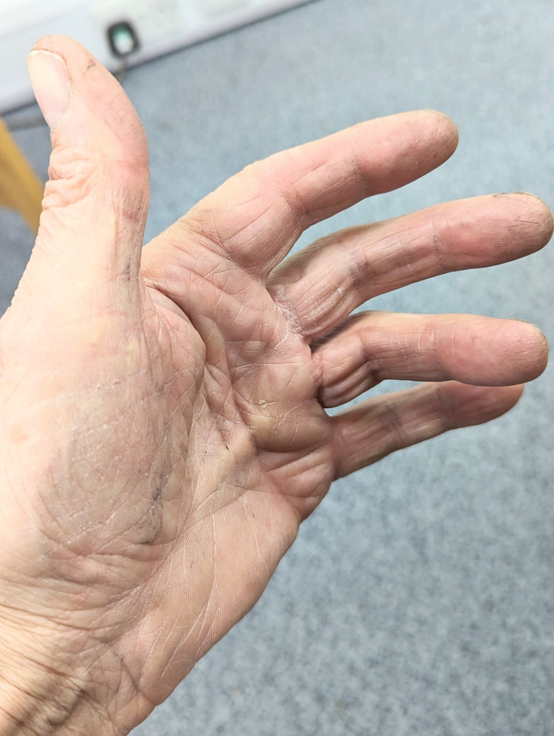 Before I knew it I was lying down head on a pillow and arm stretched out with two doctors discussing the procedure. "Slight scratch!" she said and almost at the same time she asked me if I could feel anything. 'Only faintly.' I said and she gave it two seconds before she asked, "What about now?" I answered no and then I could feel only the movement of my hand as she manoeuvred the needle inside and along the rising ridge in my palm. Yes, I could feel tugs now and then but nothing more than I could stand. I understood that she was systematically severing the fibres inside the palm skin. I confess some disconcerting snaps taking place in quick succession. There were two ridges on the side of my ring finger too. This needed more needle insertion and some tugging and such. The discussion between the consultant and the junior doctor was fascinating. It wasn't too long before we were working on the other hand, a lesser problem but still in need. We were done.