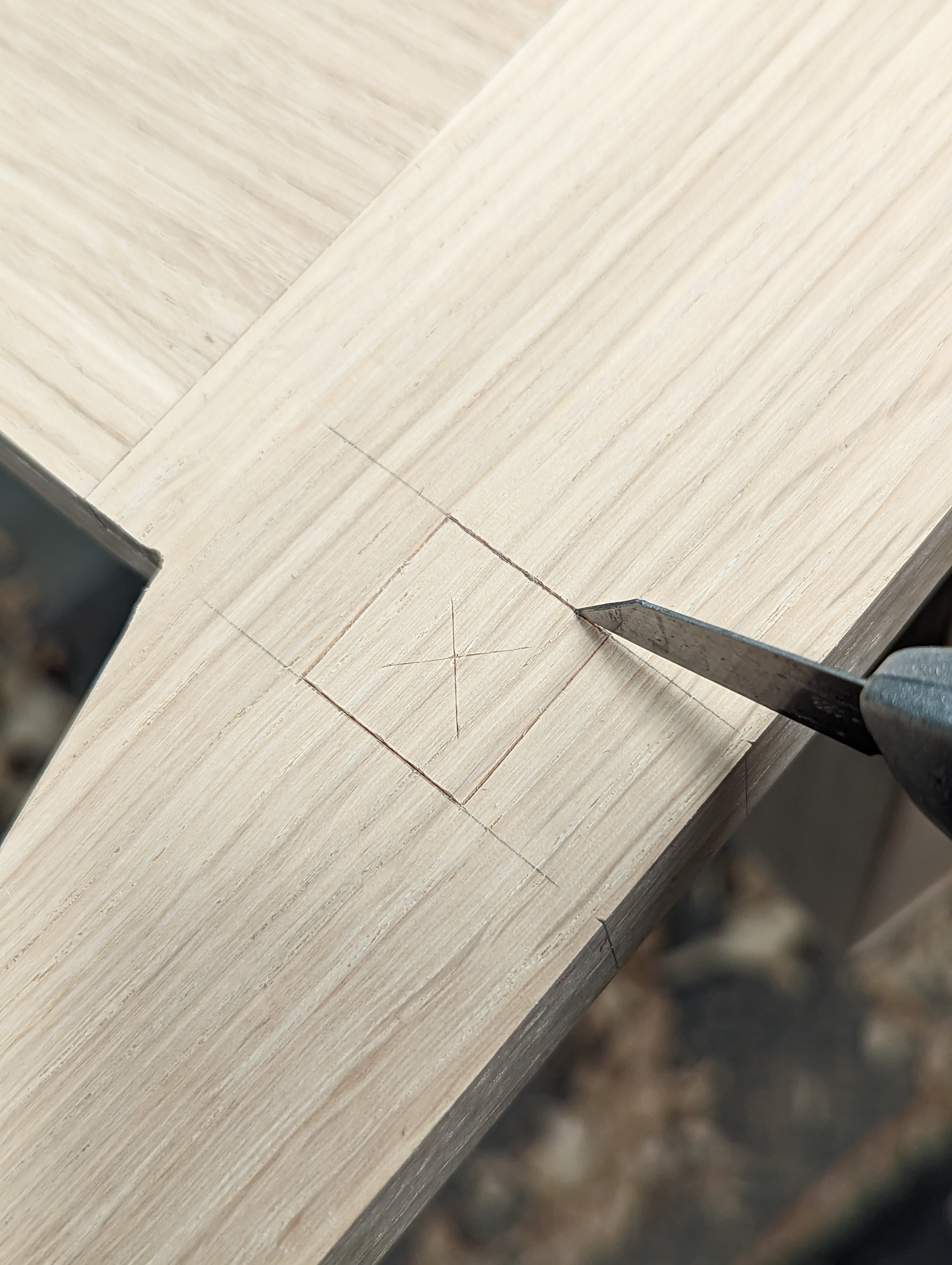 Using the pencil proved more accurate and tolerant than the knife and it is this I want to talk about. Knifewalls around dovetails is establishing the highest extreme of intolerance. Cut to the knifewalls and the dovetail will not go together without serious hammer blows and the wood is more likely to give somewhere. Some will disagree with this but no matter. Experience tells me that knifewall tracing to accommodate a counterpart results in ultra-high levels of friction with glue added at the level ensuring that the joint will never go together as is. What we really need is not a knife-splitting hair but a judgement following clear pencil lines. If I ever had to choose between only using a pencil line or a knife line I would most likely choose the HB (#2 USA) pencil. I sharpen this repeatedly as needed until the layout is done. The pencil is more versatile, often clearer and super-sharpenable. So what more is there about the pencil?