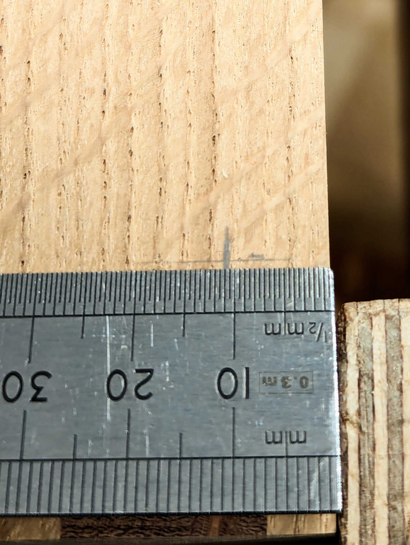 Measure in from the inside face of the dovetail at the top, back corner of the box 14mm . . .