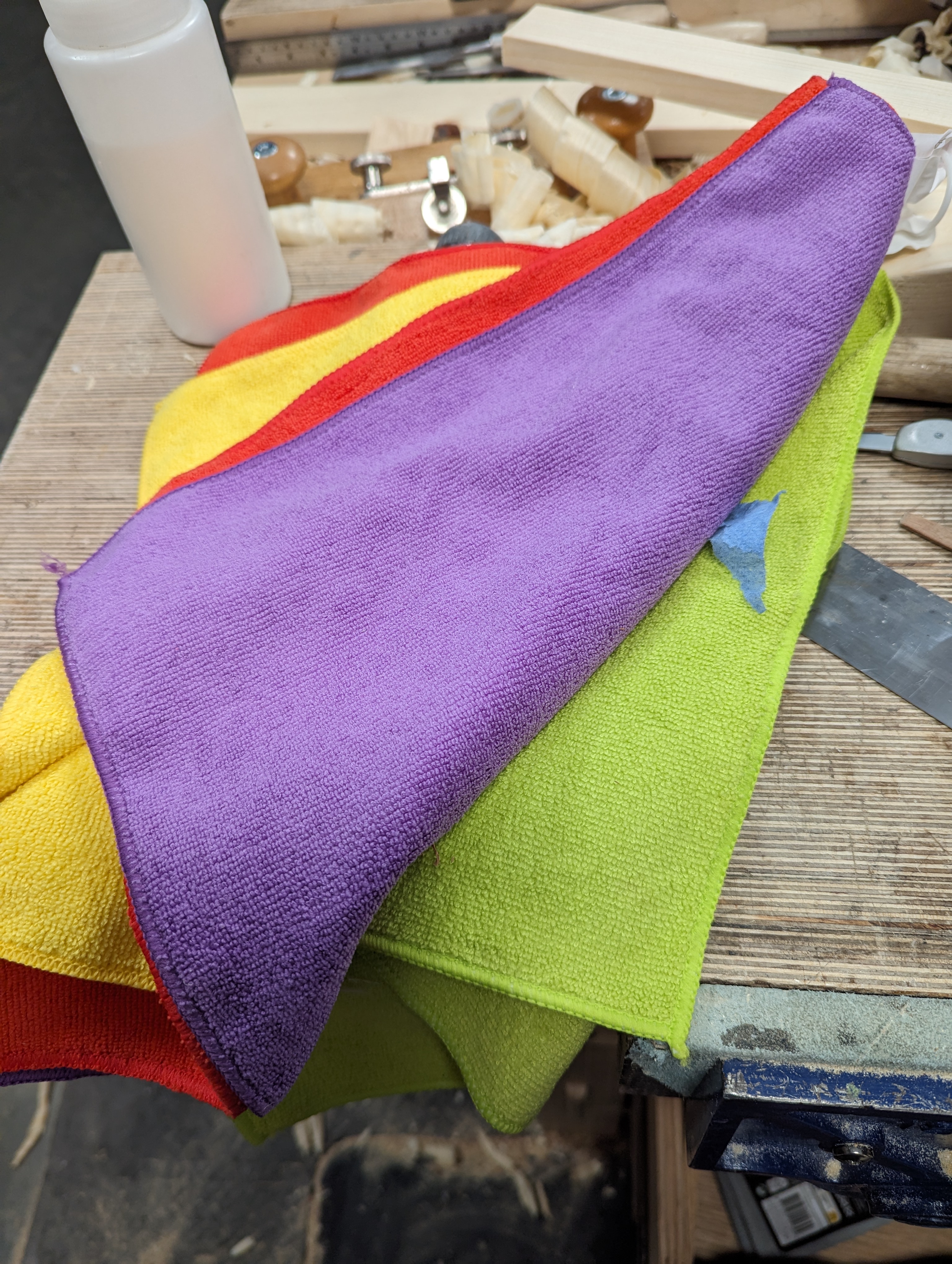 Apply the finish of your choice. There are many good rag-applied finishes finishing to a pleasing satin finish these days. I think I would avoid a water-based as they are usually thicker and more opaque. Shellac is good if you want a high glass but buffing out with 0000 steel wool and a soft paste furniture wax softens it. I used Osmo Polyx-Oil High Solid 3232 Rapid Clear Satin this time. Two to three coats wiped on and then almost scrubbed all off straightaway with five hours between coats works well making it impervious to water, staining and alcohol. You do not need their special applicators or removal rags. I just use microfibre household and car cleaning cloths cut into 5" squares for application and clean-off. Warning: As with many oil finishes, even the ones that seem natural, this finish is capable of spontaneous combustion so dispose of it sensibly. I keep a can of water for this but an airtight container works too. Oh, and clean up can just be with white spirits so no special solvents as suggested on the can.