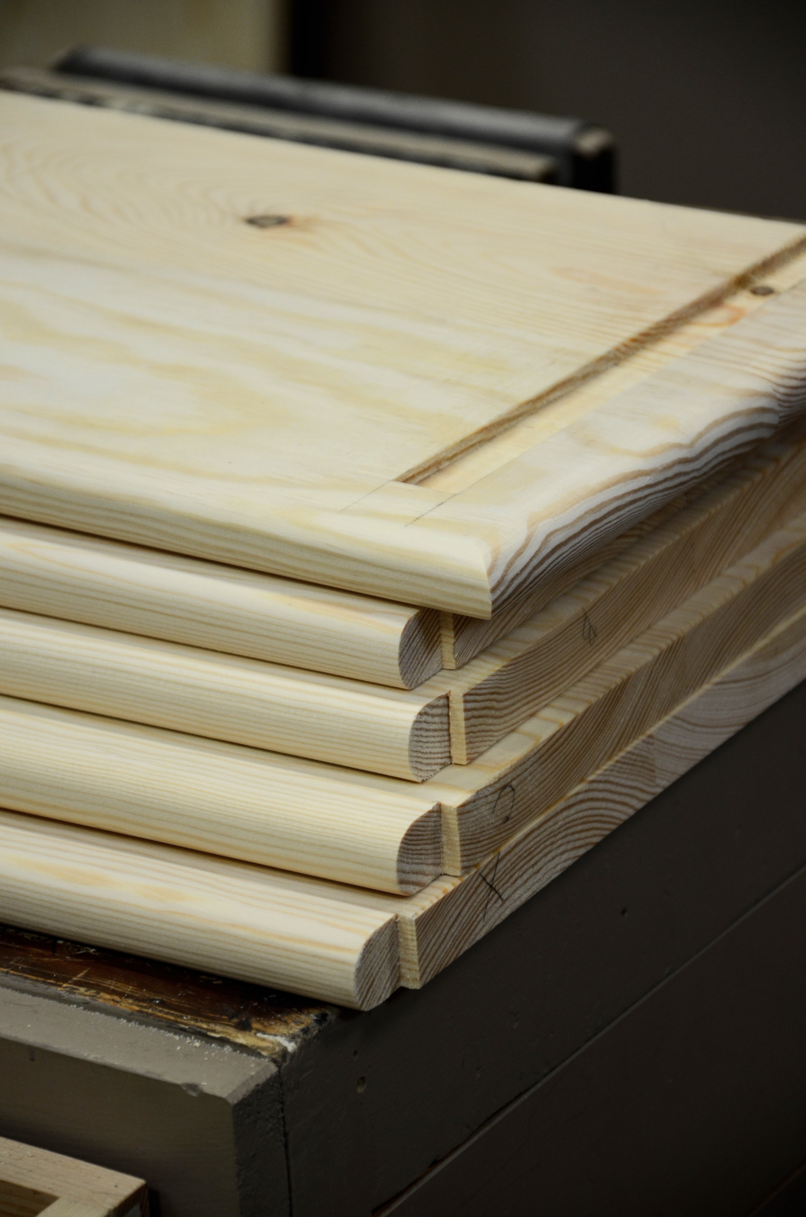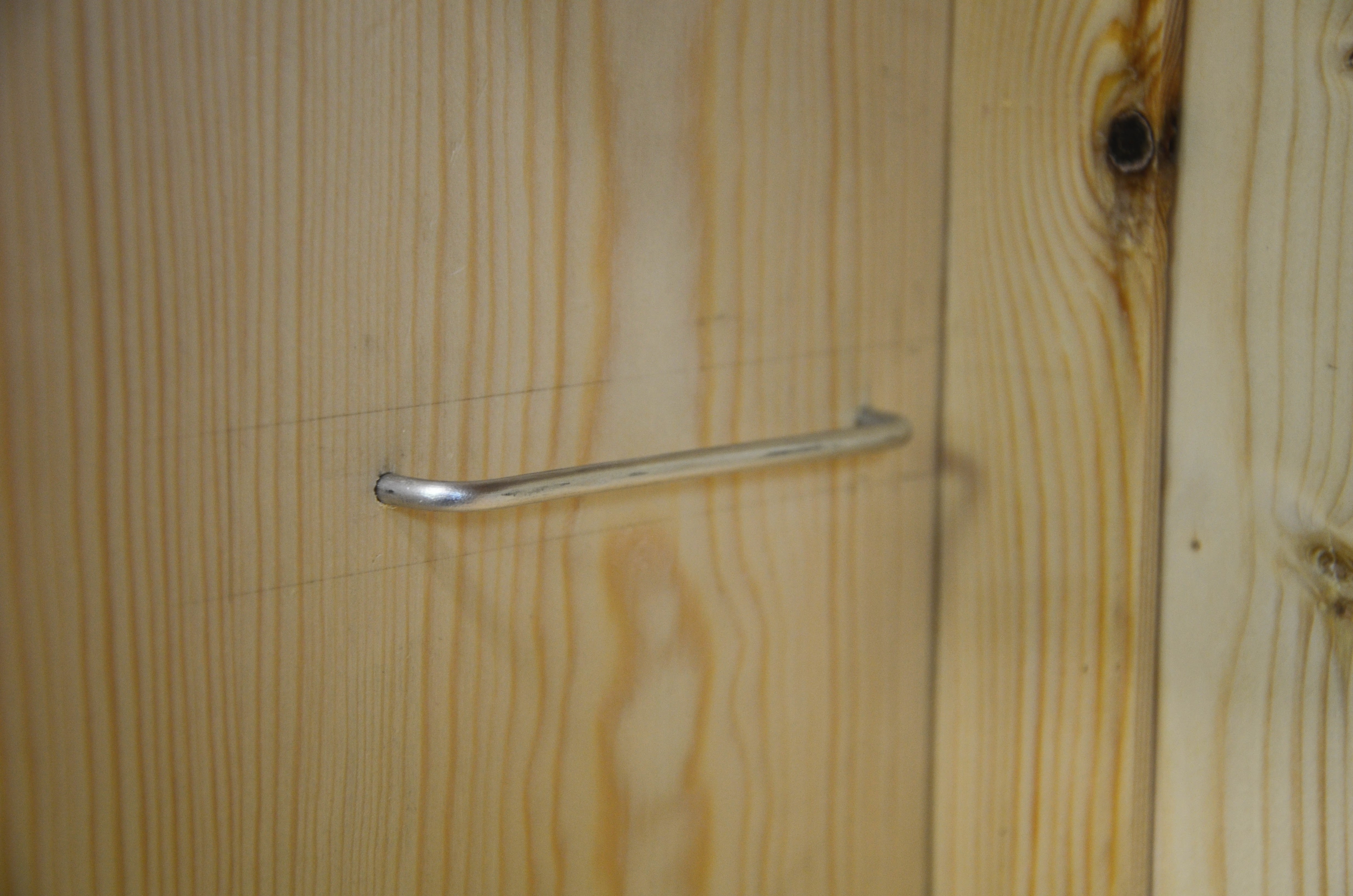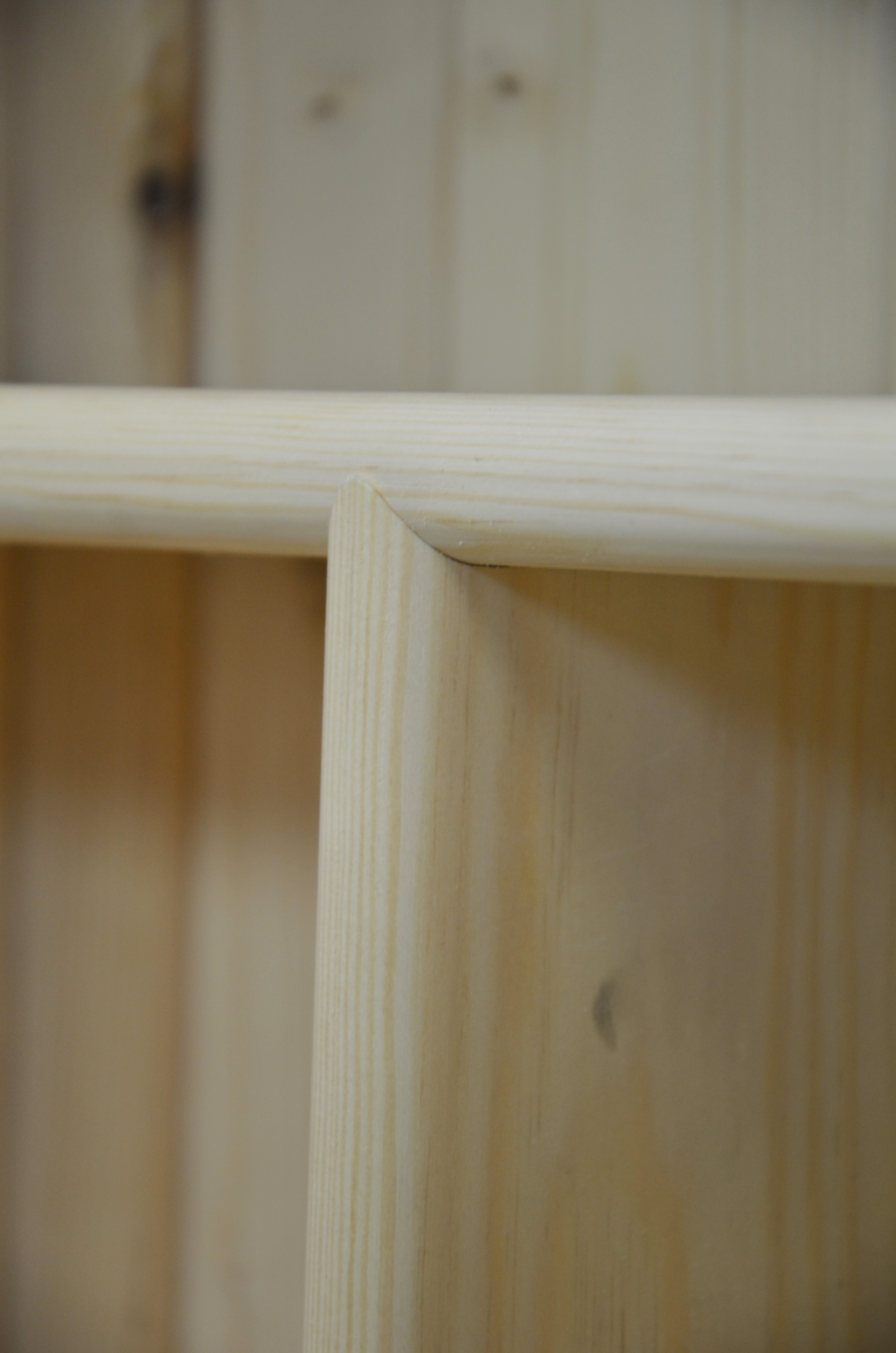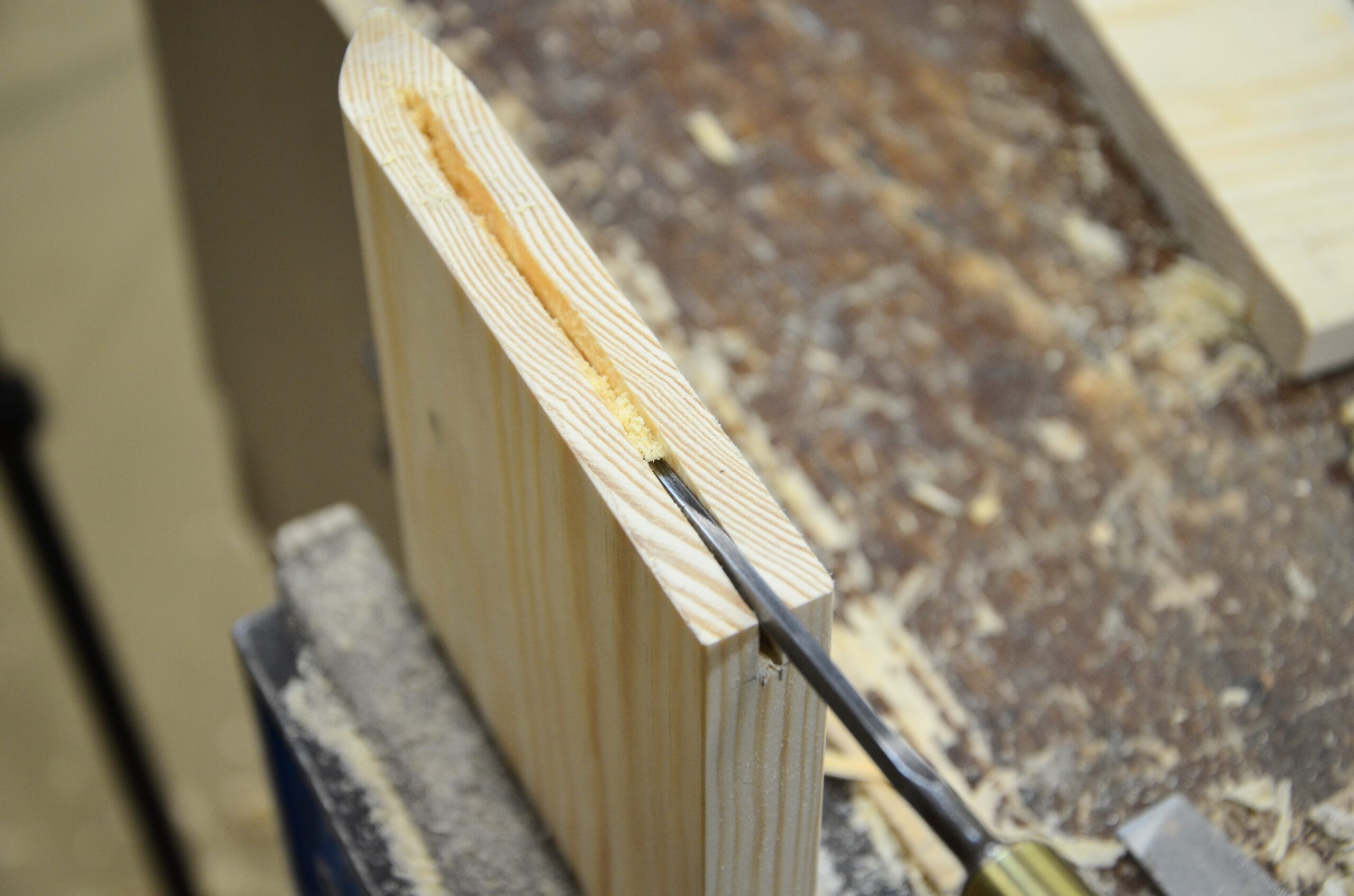 There are many elements in this project I included that will be missed in the overall and final appearance. How are the shelves adjusted and what holds them so well? Well, it's nothing more than a wire coat hanger with bends that form a spring in two holes. When someone shows you this thing with a slight spring you ask yourself now why didn't I think of that? And here is another thing. Over the decades I have shown a hundred thousand people how to make bull-nosed edges to shelves, stair treads and window sills using nothing more than a common #4 Stanley bench plane and any wood you care to name. You do not need a moulding plane or a power router. They will only mess you up and so too your workspace.