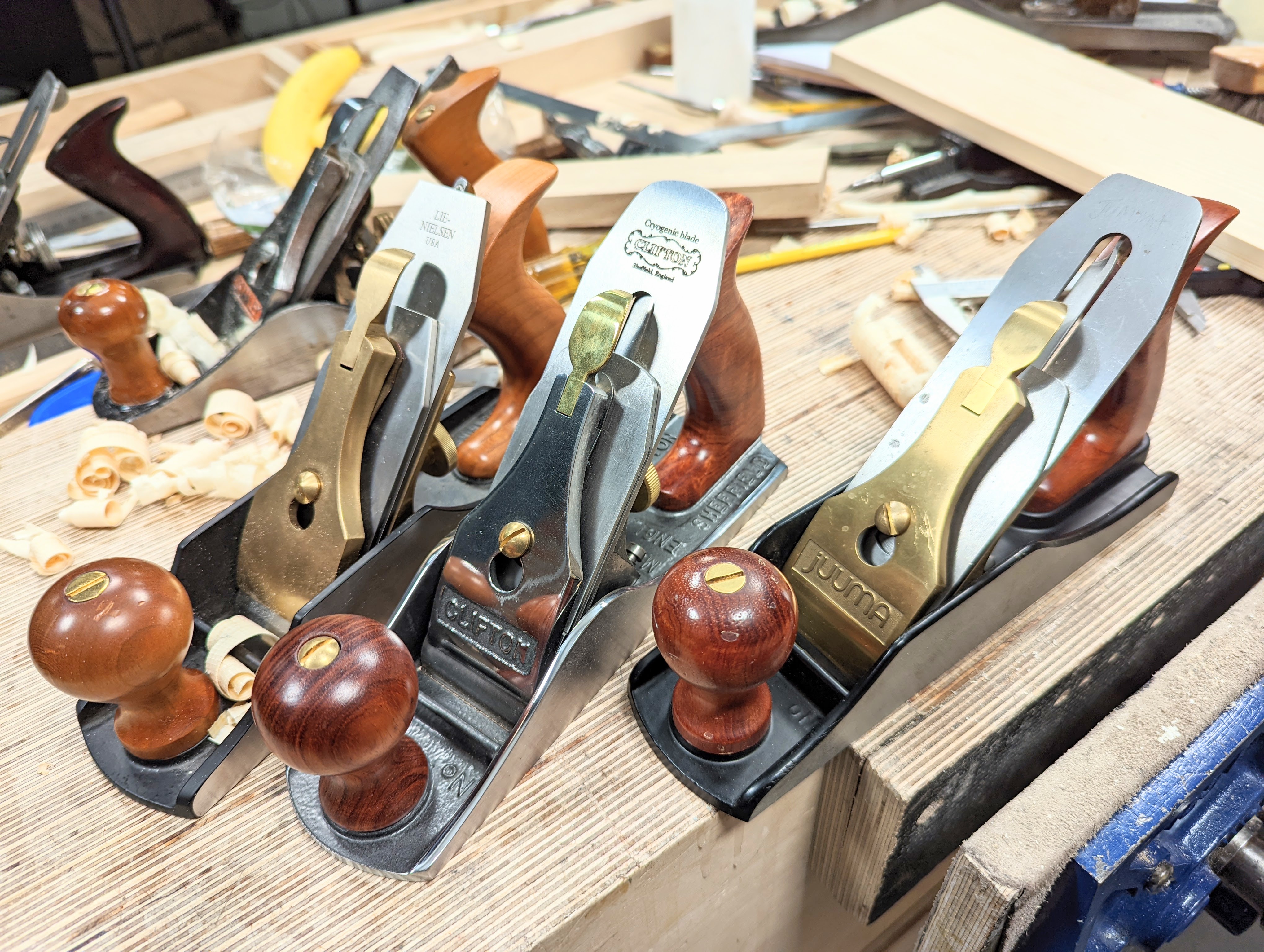 When we made the shelf unit we were able to create so much content packed into a few episodes people were stunned by it. We trialled four different planes covering 150 years of planemakers and found all of them coequal in ability and quality. The wooden Sandusky was the single most pleasant but of course, we couldn't recommend it because it wasn't available universally. What we did show then was that you could acquire a Record or Stanley version with three to a dozen cutters sometimes for only ten pounds but anyway, usually, under fifty.
