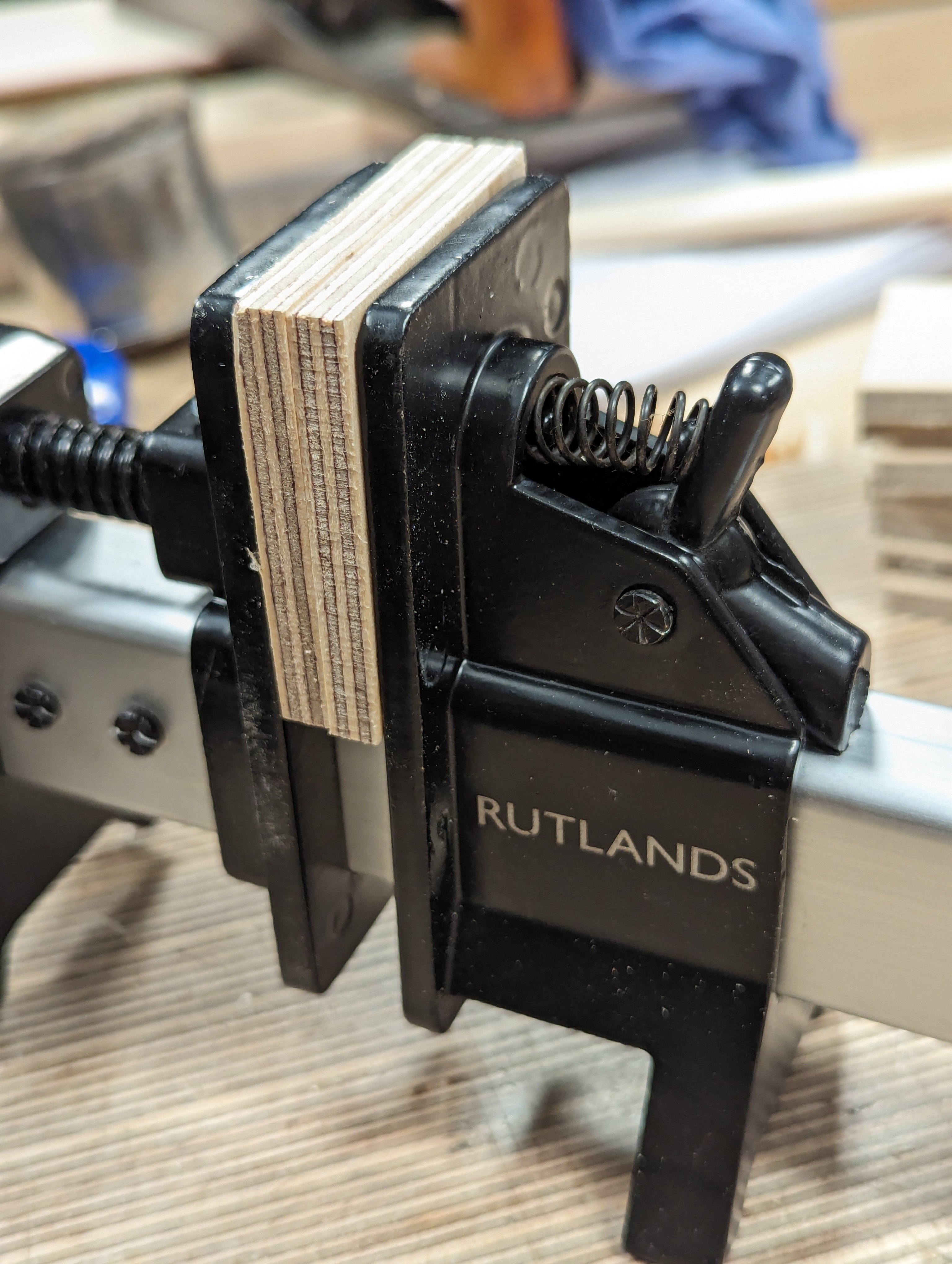 On all of my clamp heads I prefer birch plywood facings and I added them to the Rutlands. This cushions the clamped wood very nicely and provides an absorbing feel when clamping.