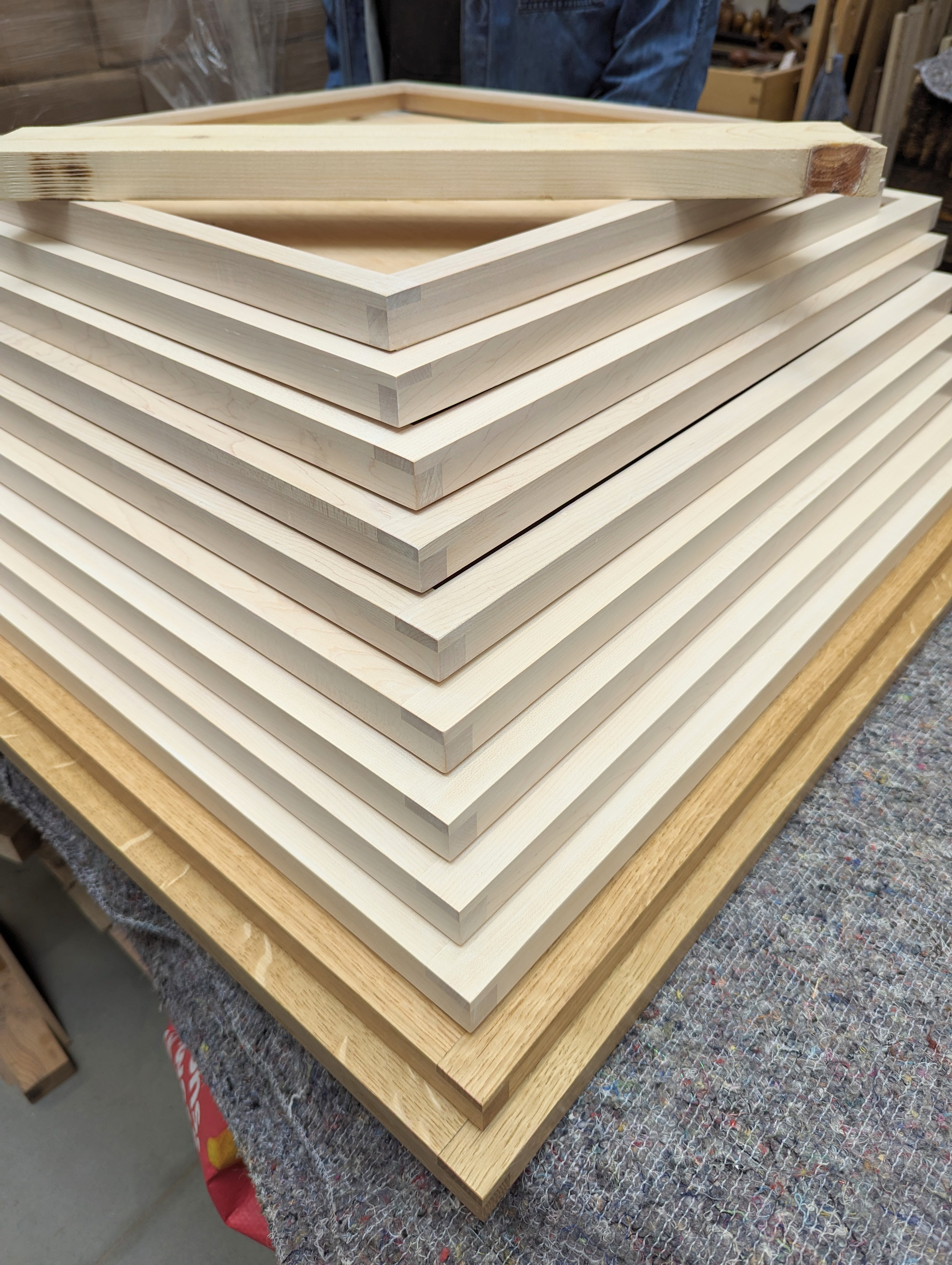 I have made a dozen or so picture frames of this design from scratch to date and then helped Hannah with her order for 21 of them. I designed the frames to cater to hand toolists. It eliminates the need for any machine work if that is what some want. The ones `i just made are for my most recent video and blog offerings. I will be going into the video and blog shortly but for now, I will focus on this particular finish.