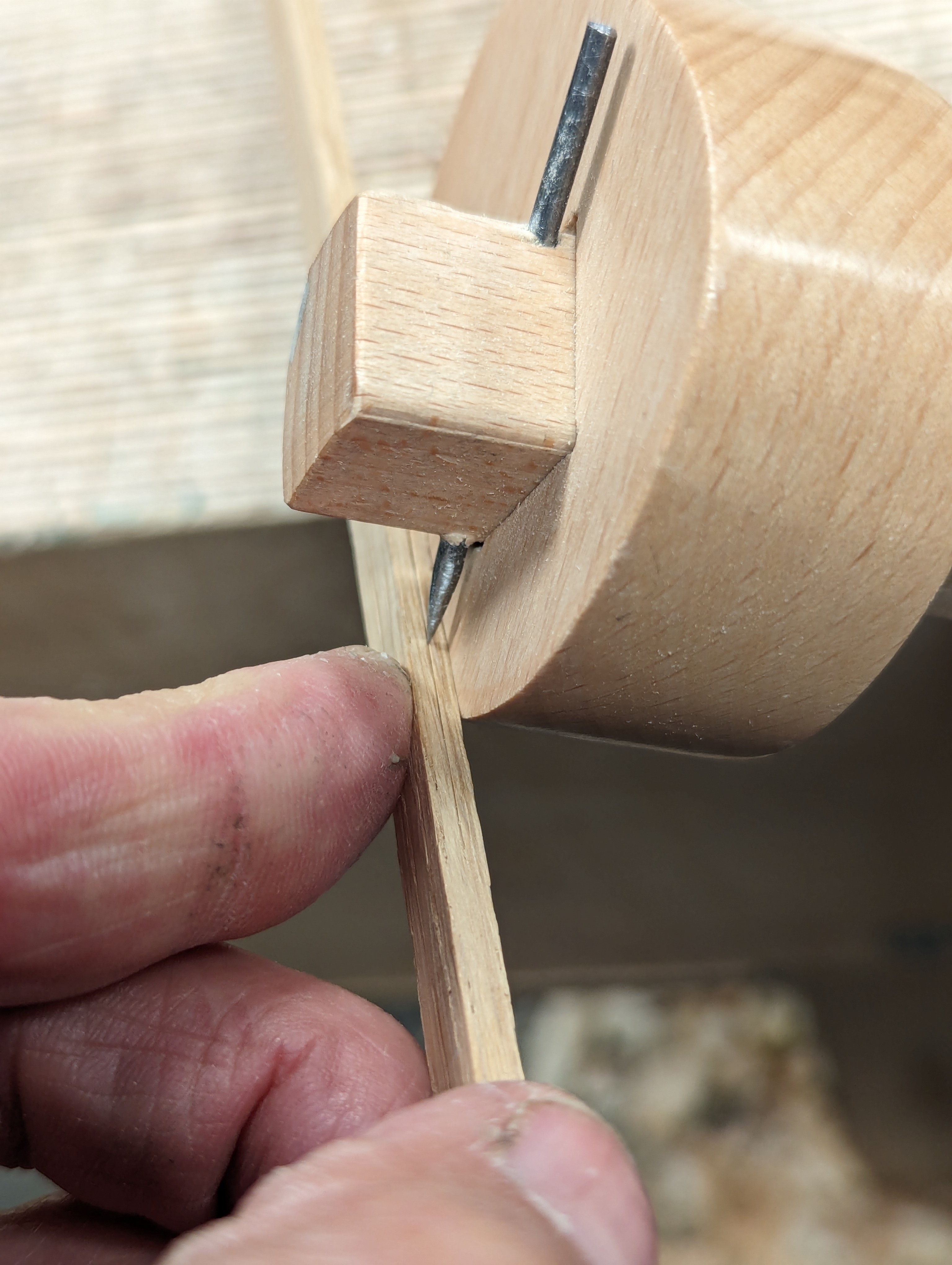 I just cobbled this quick one together from a section of spruce stud and it works just fine. If you want a long term version then use something like beech or maple but any hardwood will do. That said, the stud woiod will do it perfectly well too.