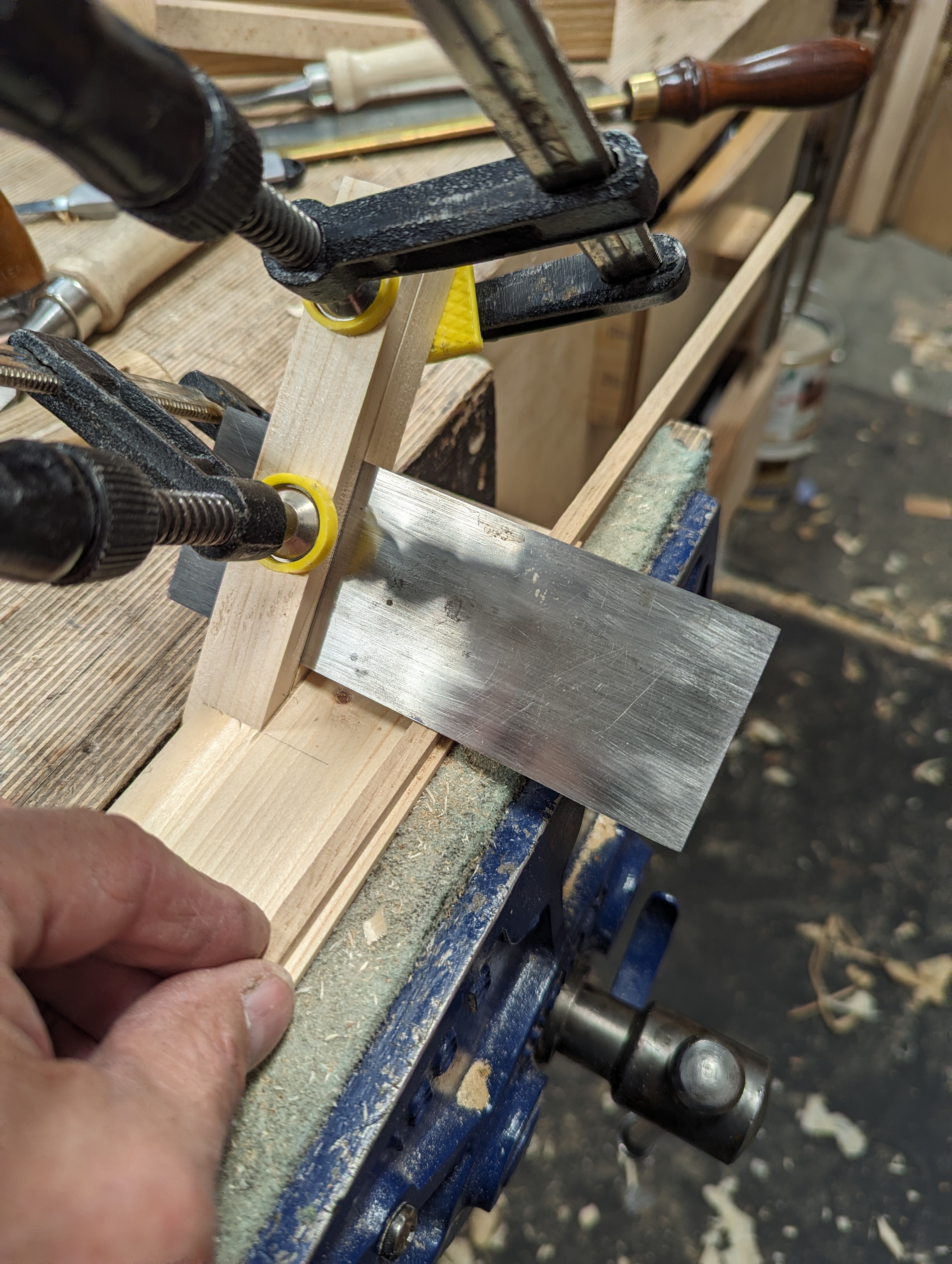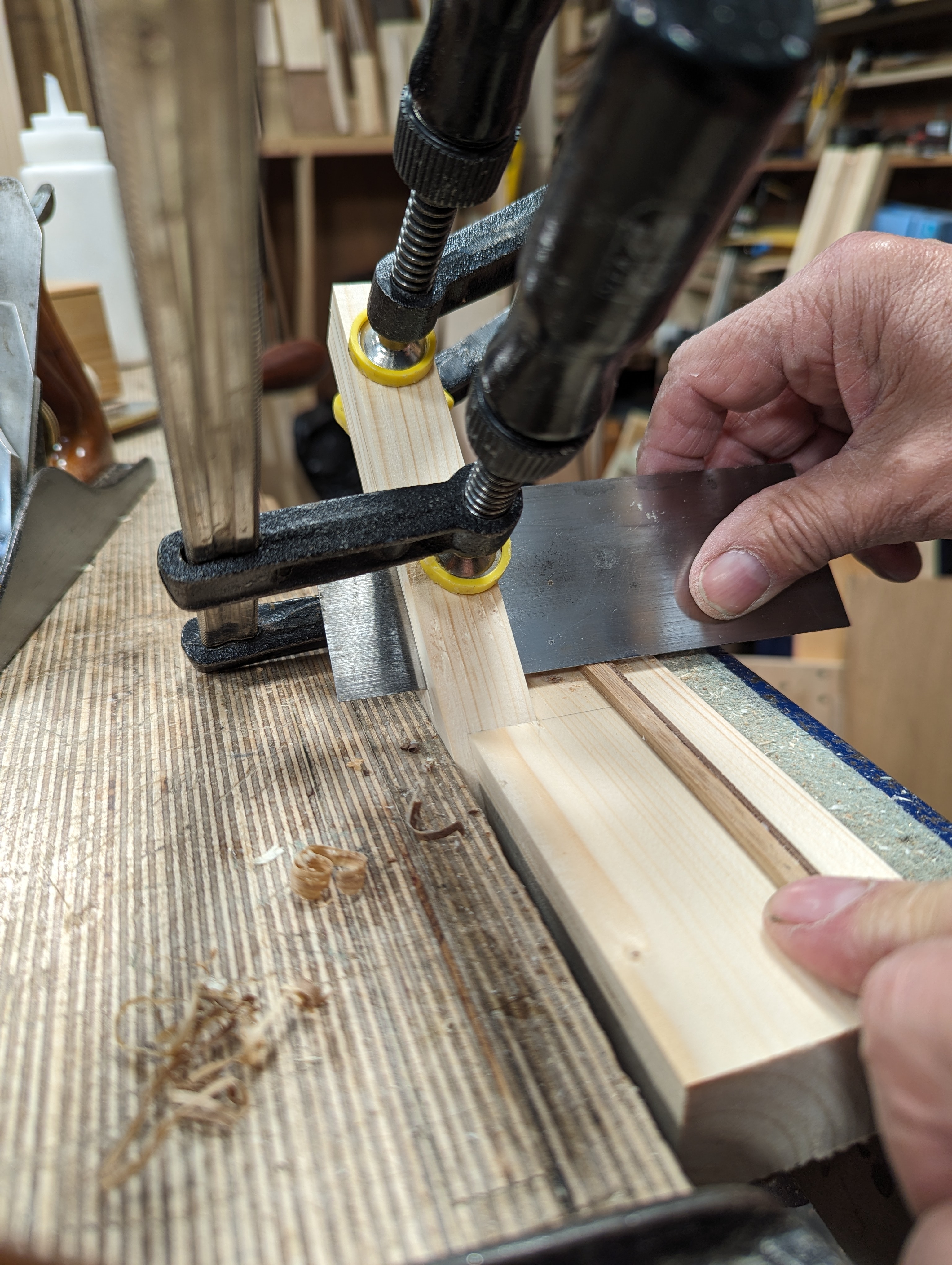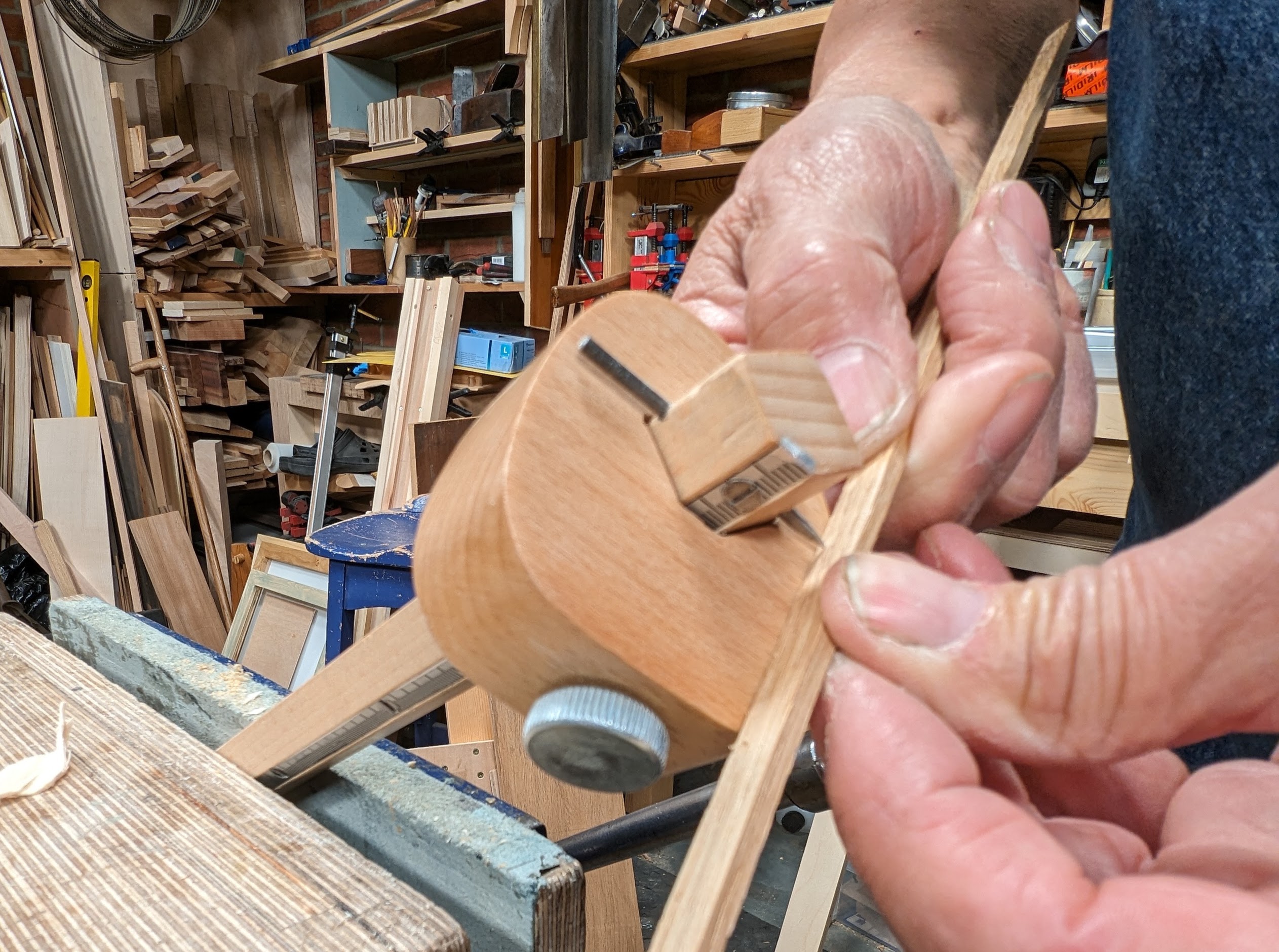 A friend nudged me for this post. Reminding me of making my tool chest back in 2013 or so, that was in upstate New York, he spoke of my card scraper setup for thicknessing cockbeading, inlay and such. I thought it would help others so here it is:
