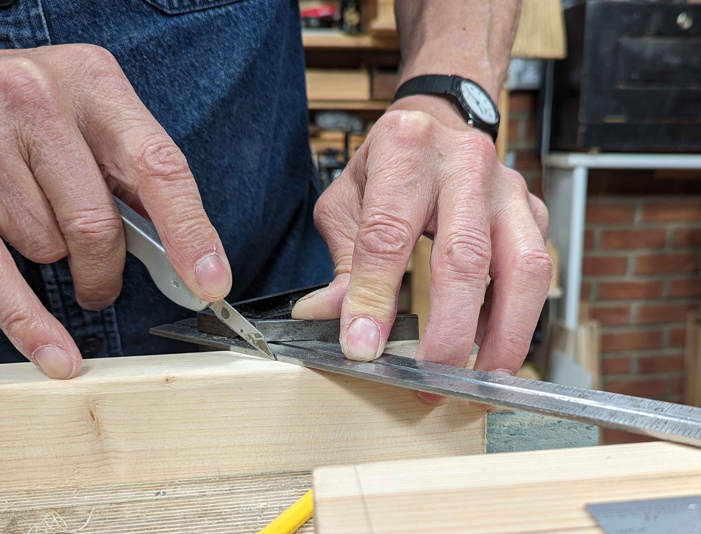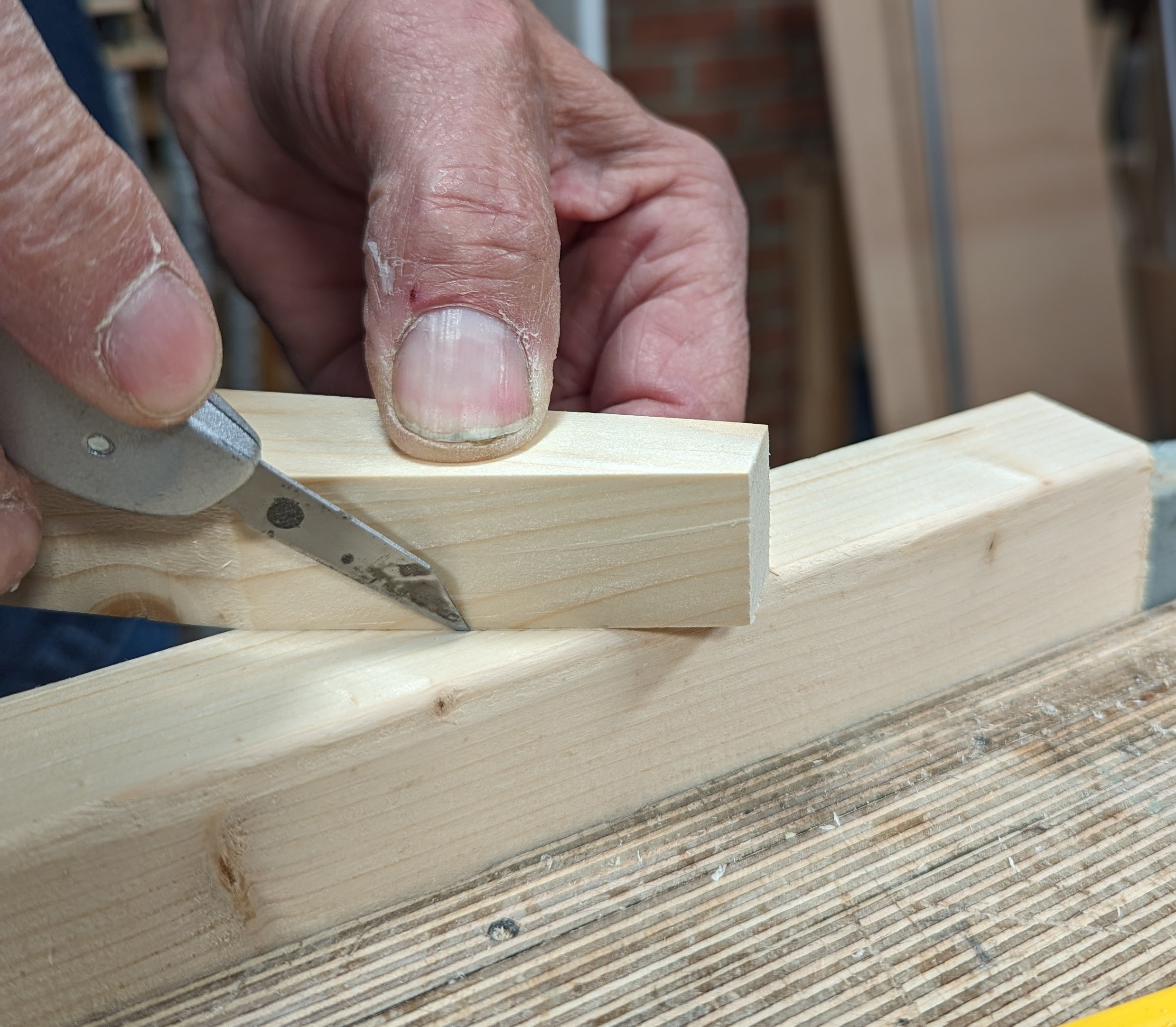 Use a sharp knife to part the fibres down into the gauge lines but not too deep in the first pass as this is likely to split the main body of wood.