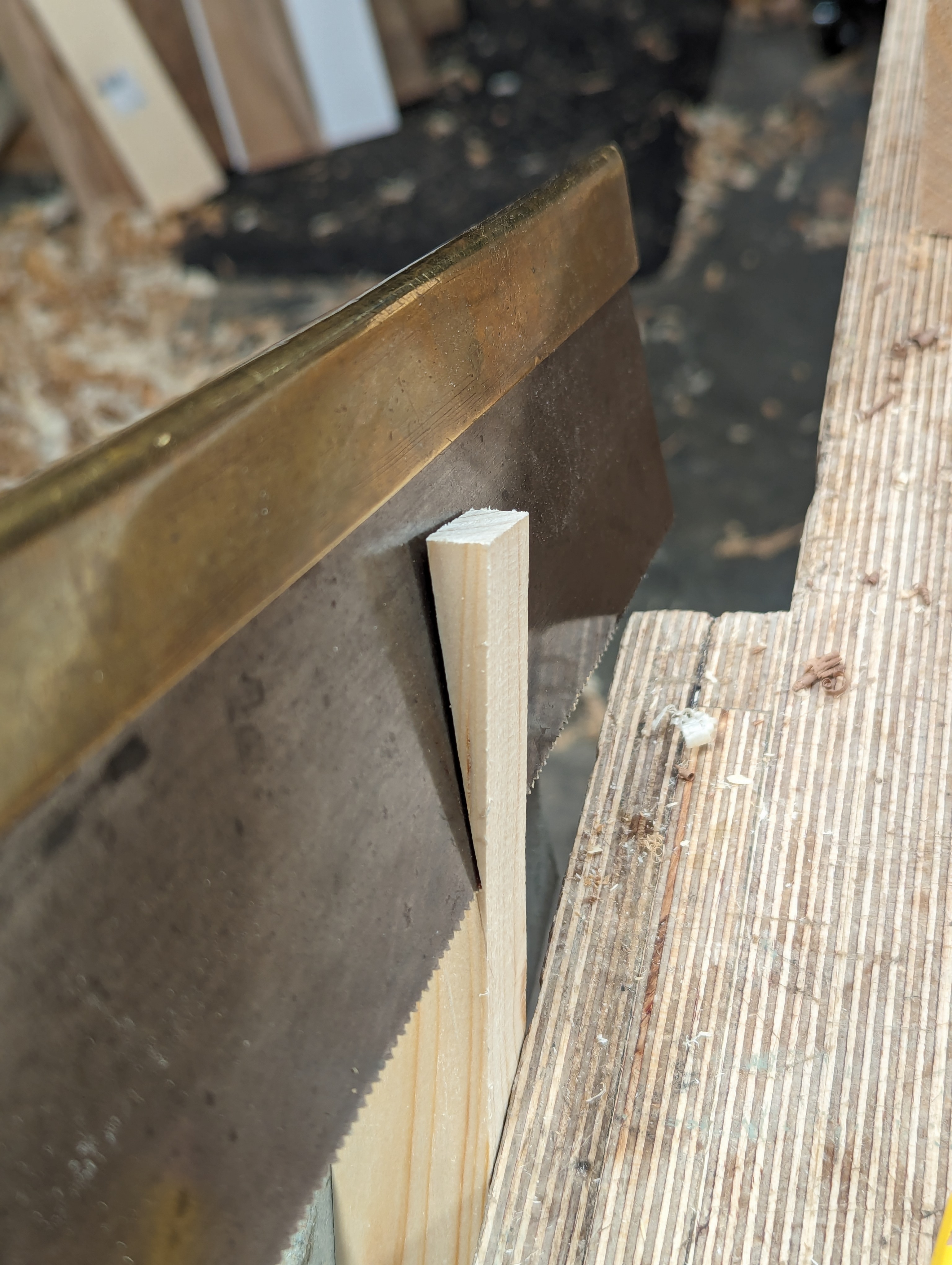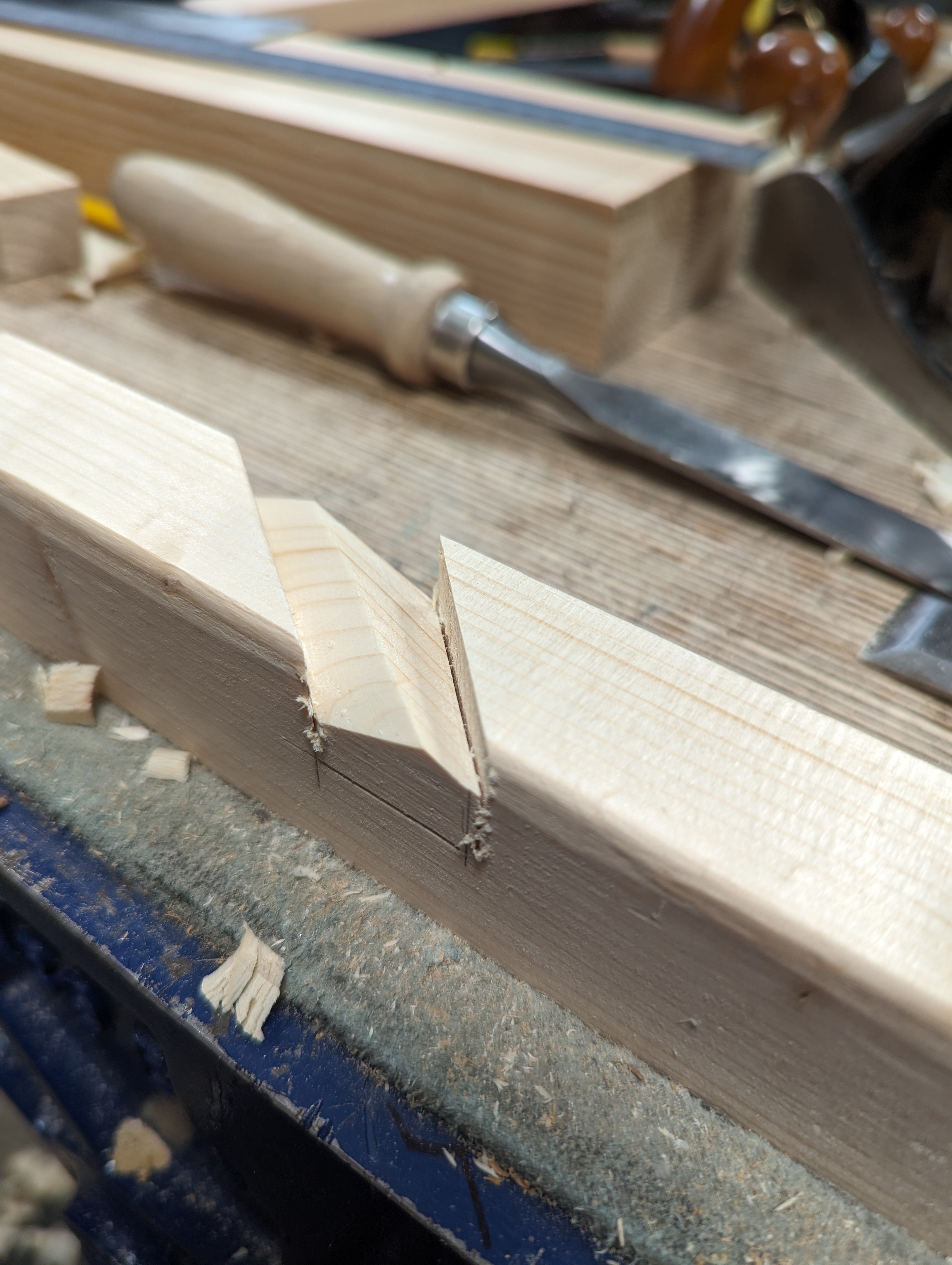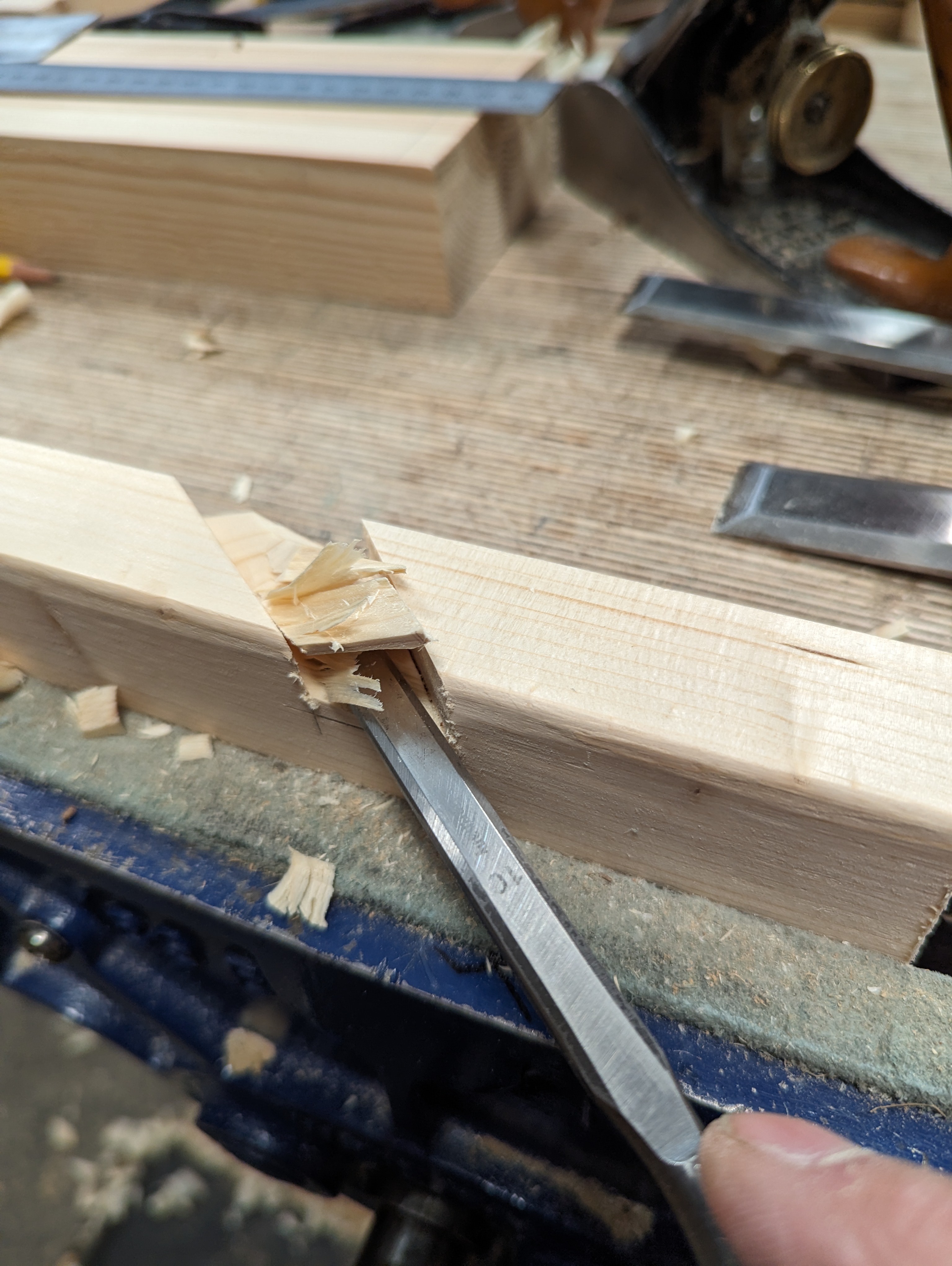 Deepen the knifewalls with a wide chisel to set the saw down into.
