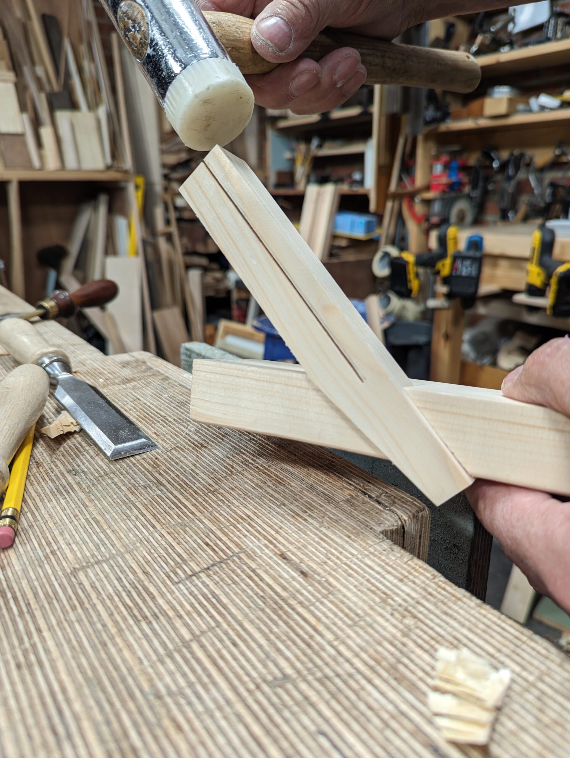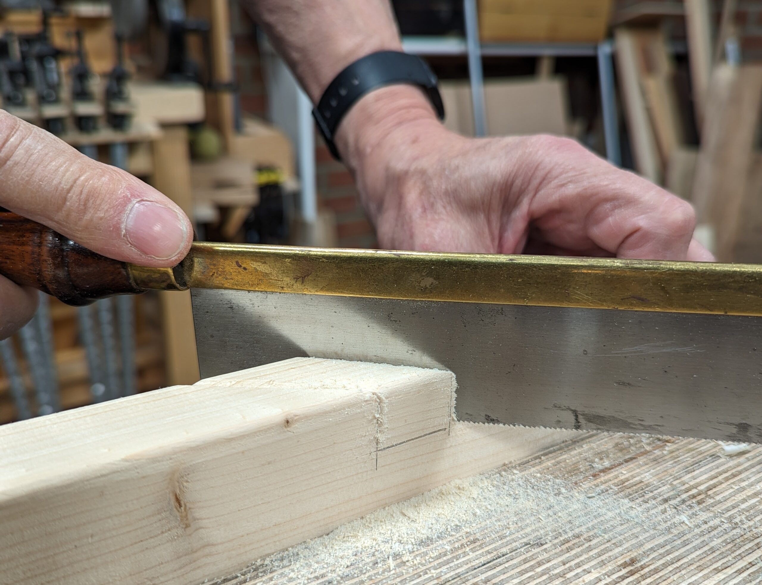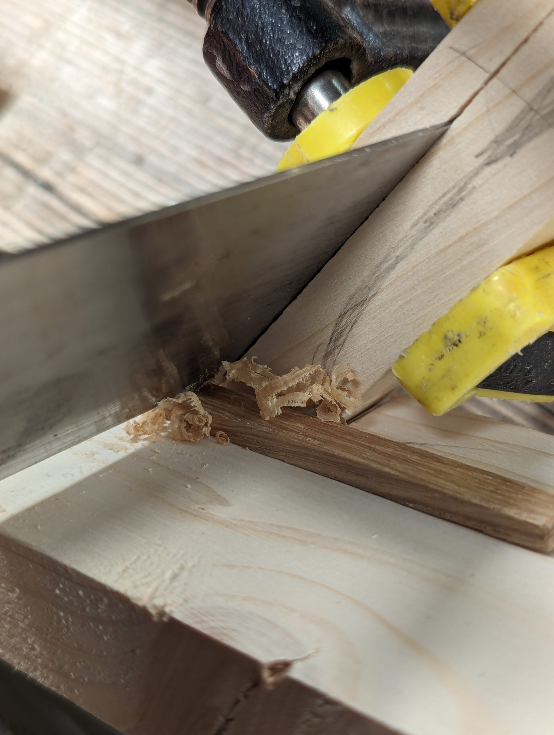 Deepen the knifewalls with a wide chisel to set the saw down into.