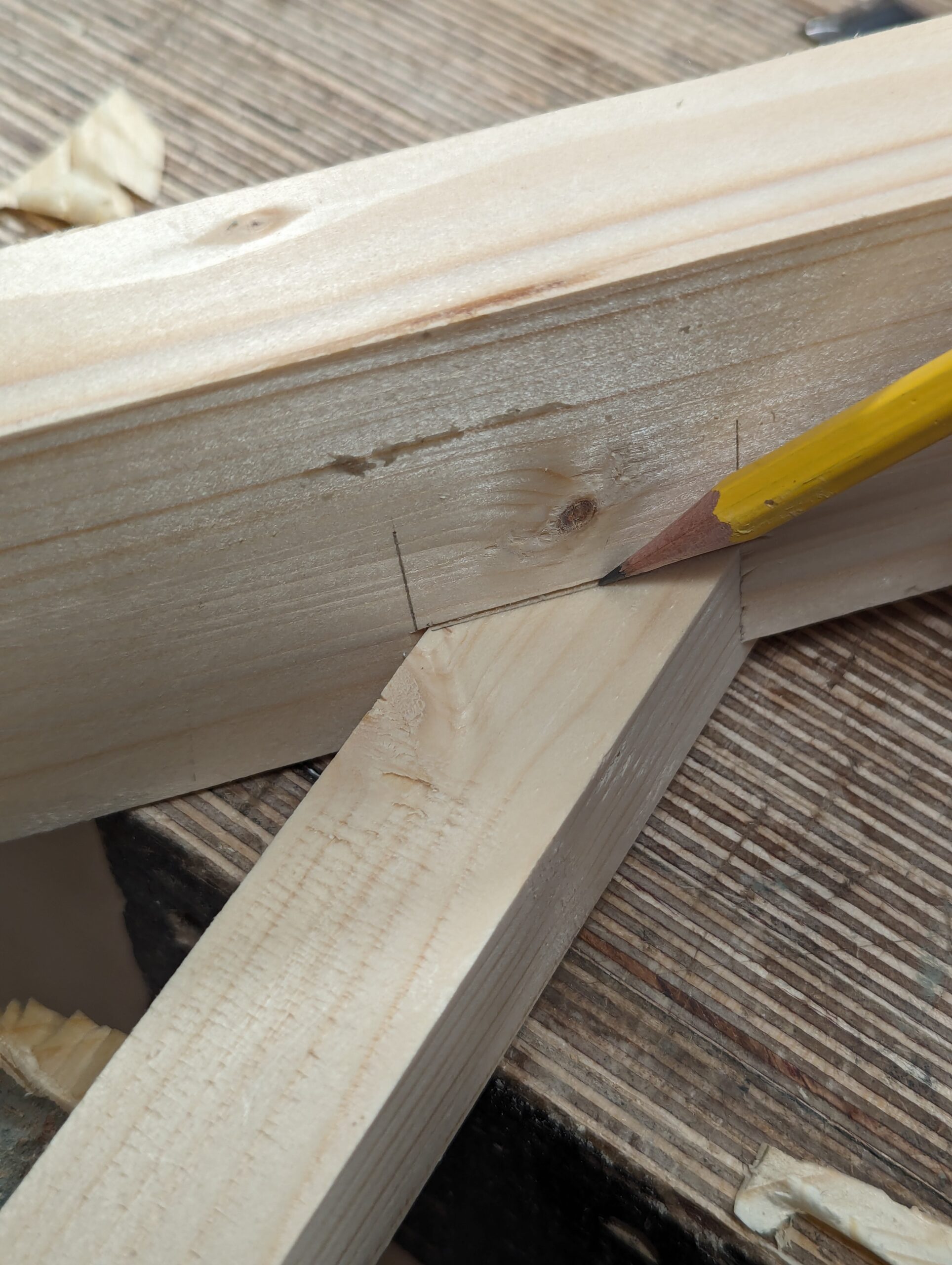 Place the wedge against the knifewall and mark the second, angled line onto the edge of the base platform piece.