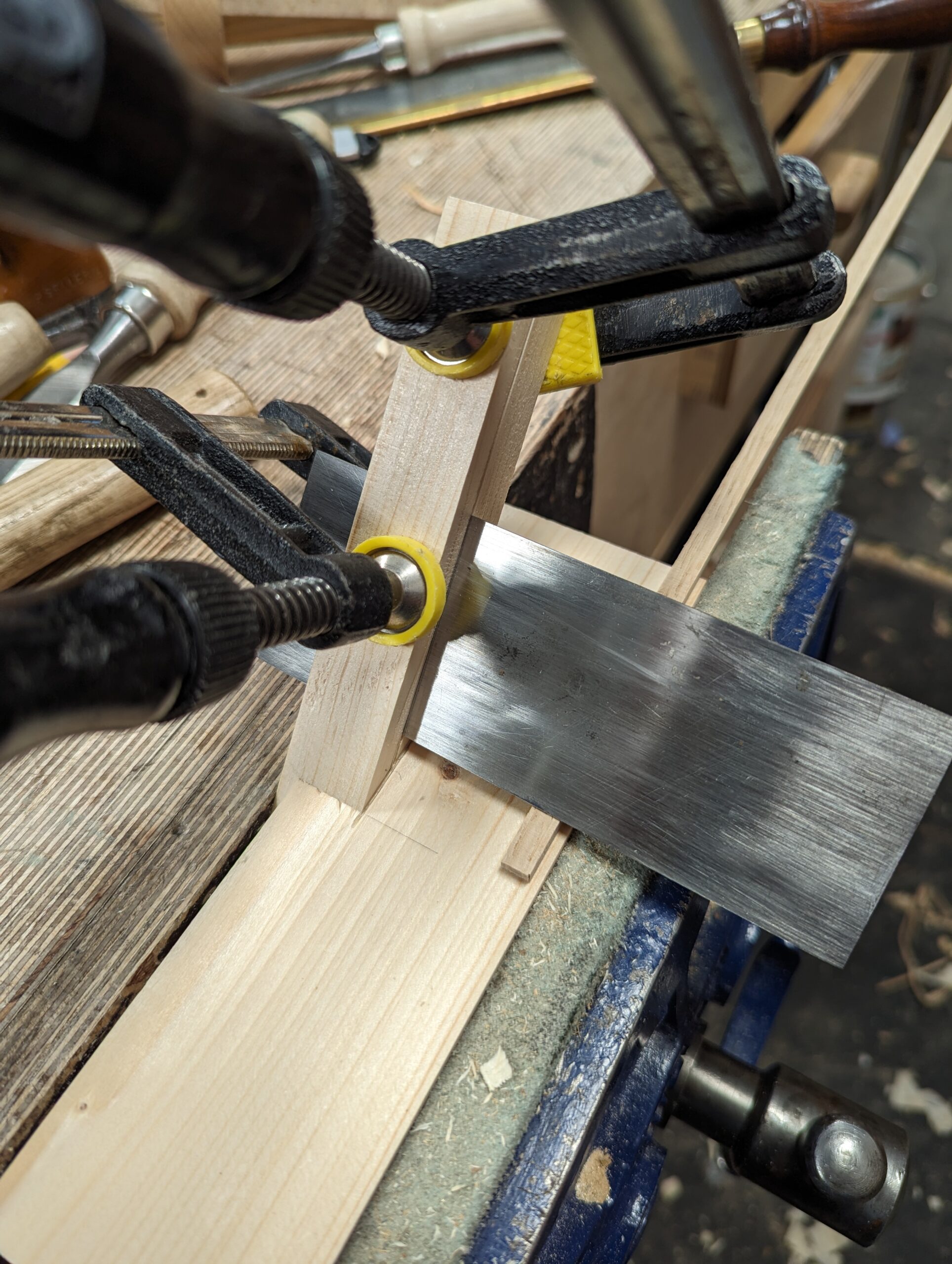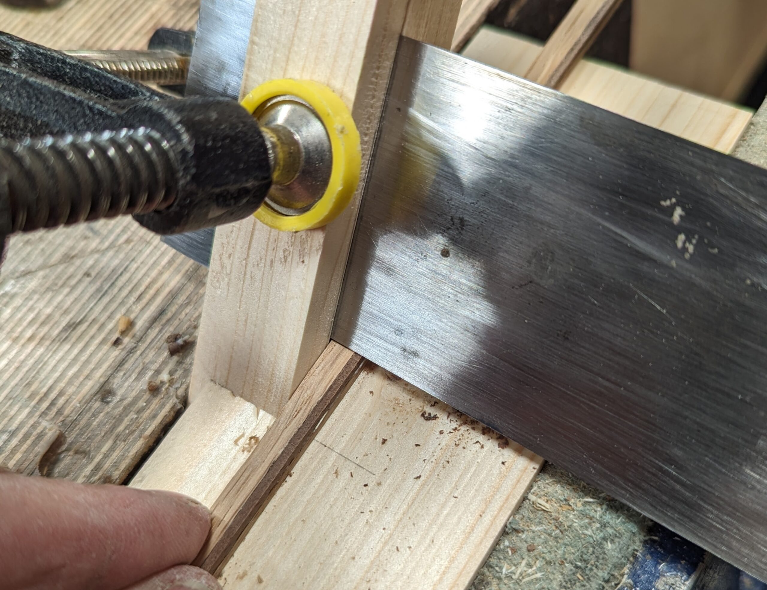 A friend nudged me for this post. Reminding me of making my tool chest back in 2013 or so, that was in upstate New York, he spoke of my card scraper setup for thicknessing cockbeading, inlay and such. I thought it would help others so here it is: