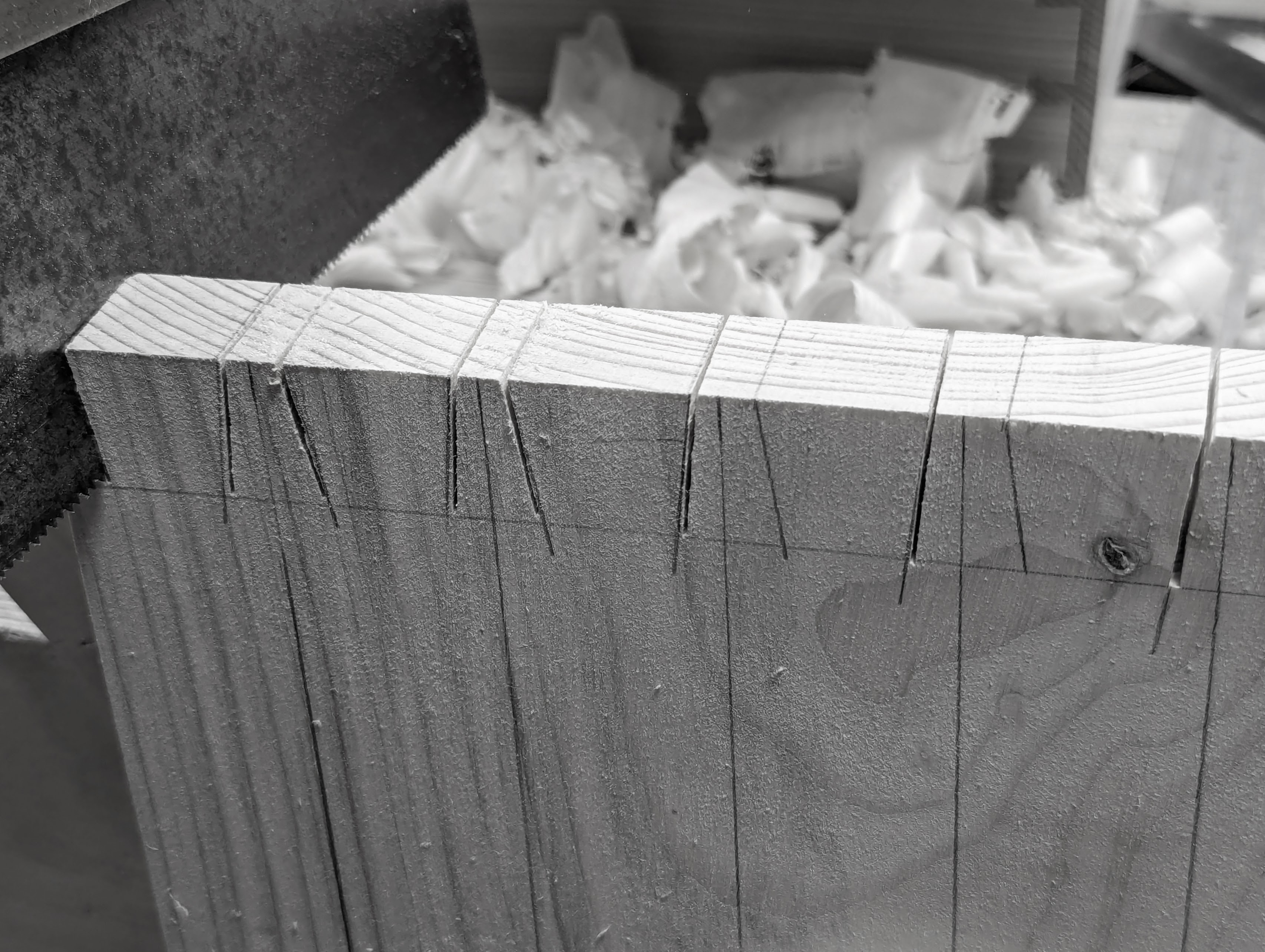 What was unique about the outcome of this particular and specific dovetail was that I didn't do it to be approved. These men never worked to be admired or qualified or anything else. None of it was to gain approval because the standard of workmanship was expected no matter what. It was the realness of life I admired and respected and so too them. They, aside from my parents, were the first adults I would associate with on a daily basis and they in turn placed expectations on me that brought maturity out of me and that to a fullness. Even when the men were indeed impressed, along with George, that was not what I sought. I achieved standards that measured up simply because it was the right thing to do with the right and intended outcome. Here, I managed the making of the dovetail using the first tools I had ever bought, owned and used with my own hands. Looking back now, knowing that I have made thousands upon thousands of hand-cut dovetails, and having now reached the age I have working my wood through six decades, it was that first dovetail of quality that raised and set the bar of self-discipline for me for life. I believe it was this that spoke to me the strongest, saying I would never once use any other method for cutting my dovetails. I wanted what I did to be good, of course I did, but what I saw was that the outcome of what I did would indeed, by its very nature, validate me as a capable woodworker in my own right. The lines of satisfaction fell there. By this I would be governed throughout my life.