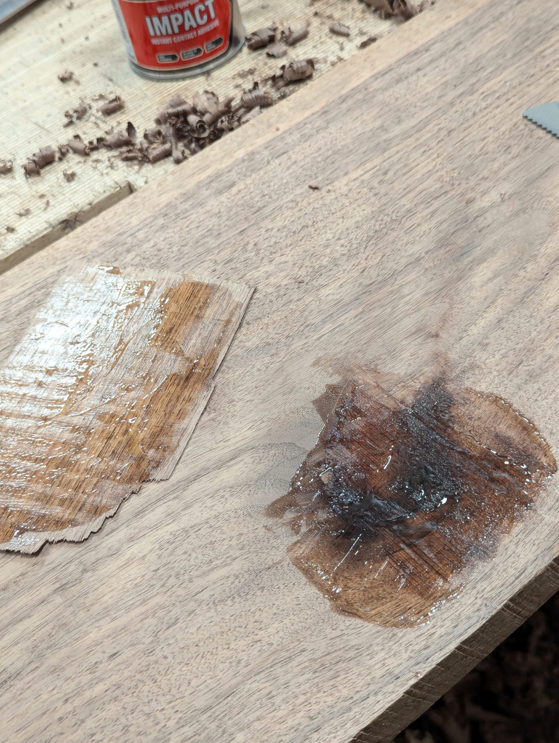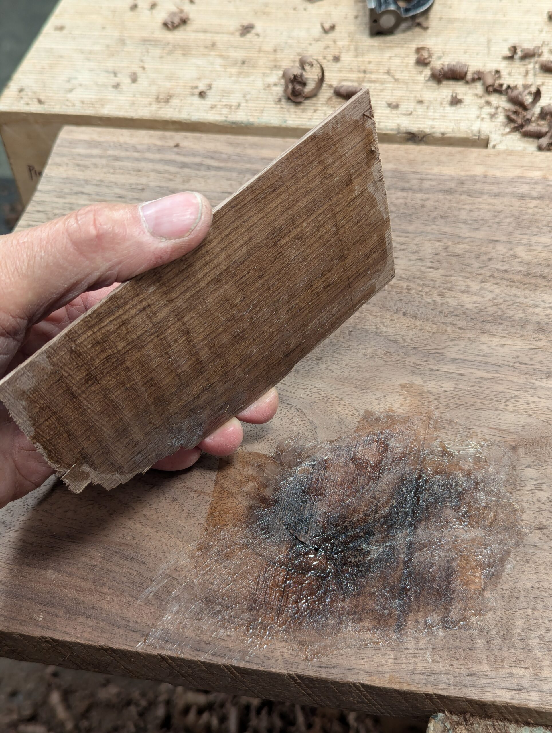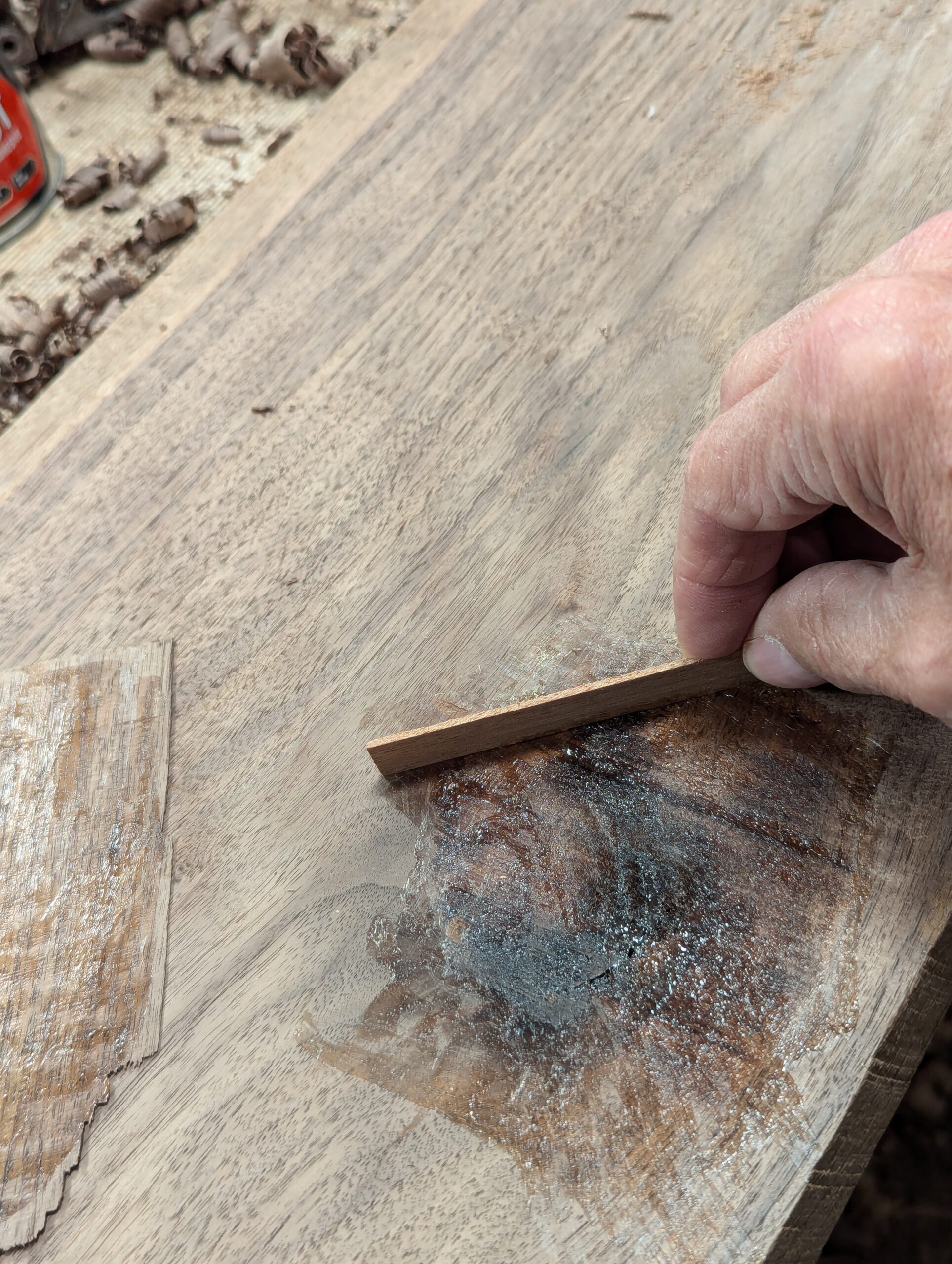 As you can see, the depression is now brought level with the rest of the wood. You may never need this but you can also use the method for inlays and small veneering areas too.