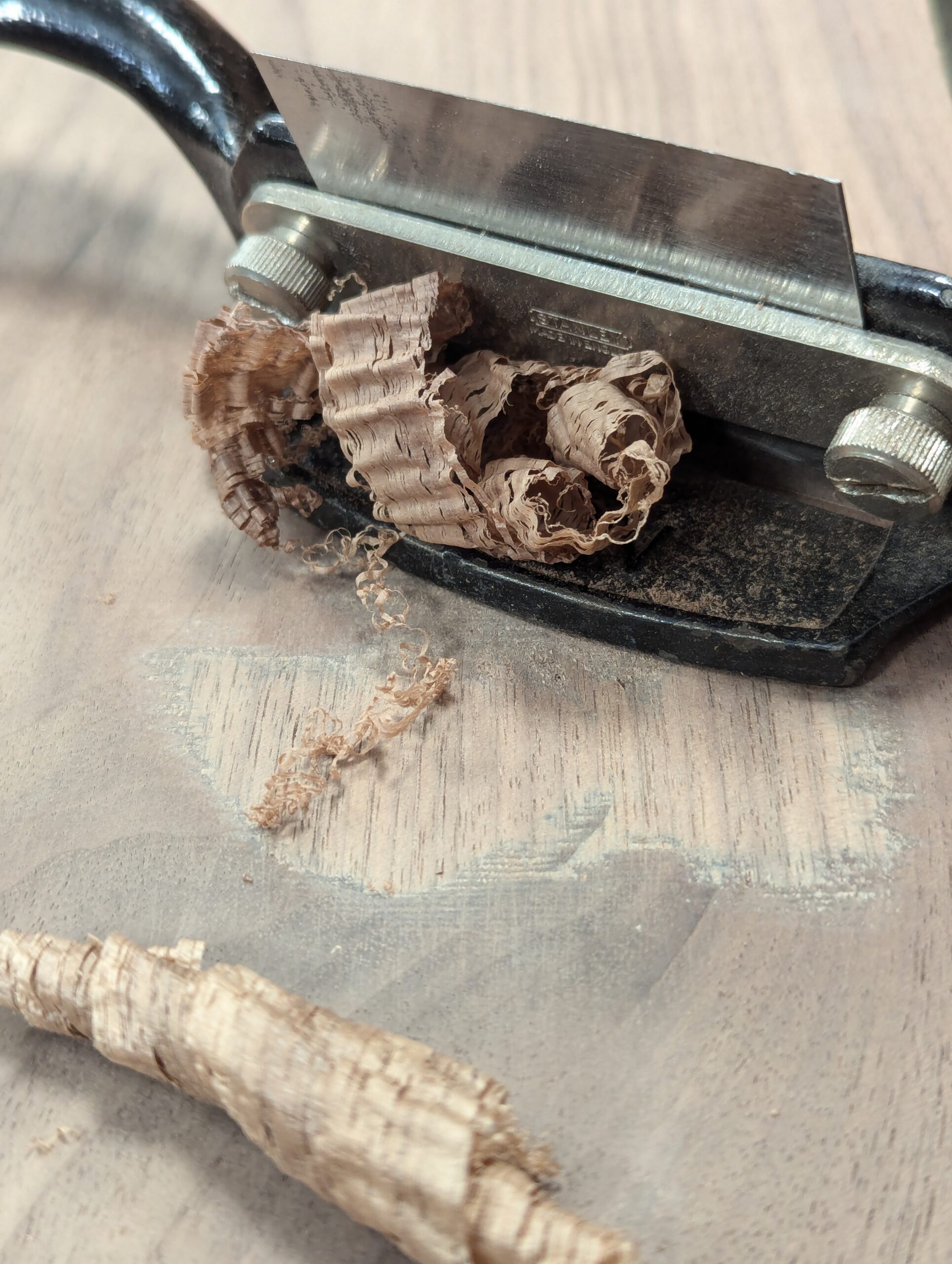 I'm making a new video series and had some walnut in my wood rack; it's some really fine and prime stuff a good inch full in thickness so I planed everything as usual and just enjoyed the full day's workout. Walnut is one of the finest woods to work with hand tools. It hand planes beautifully, rarely tears out, chops crisply and always seems to split to the line you want it to. What more can you ask of it?