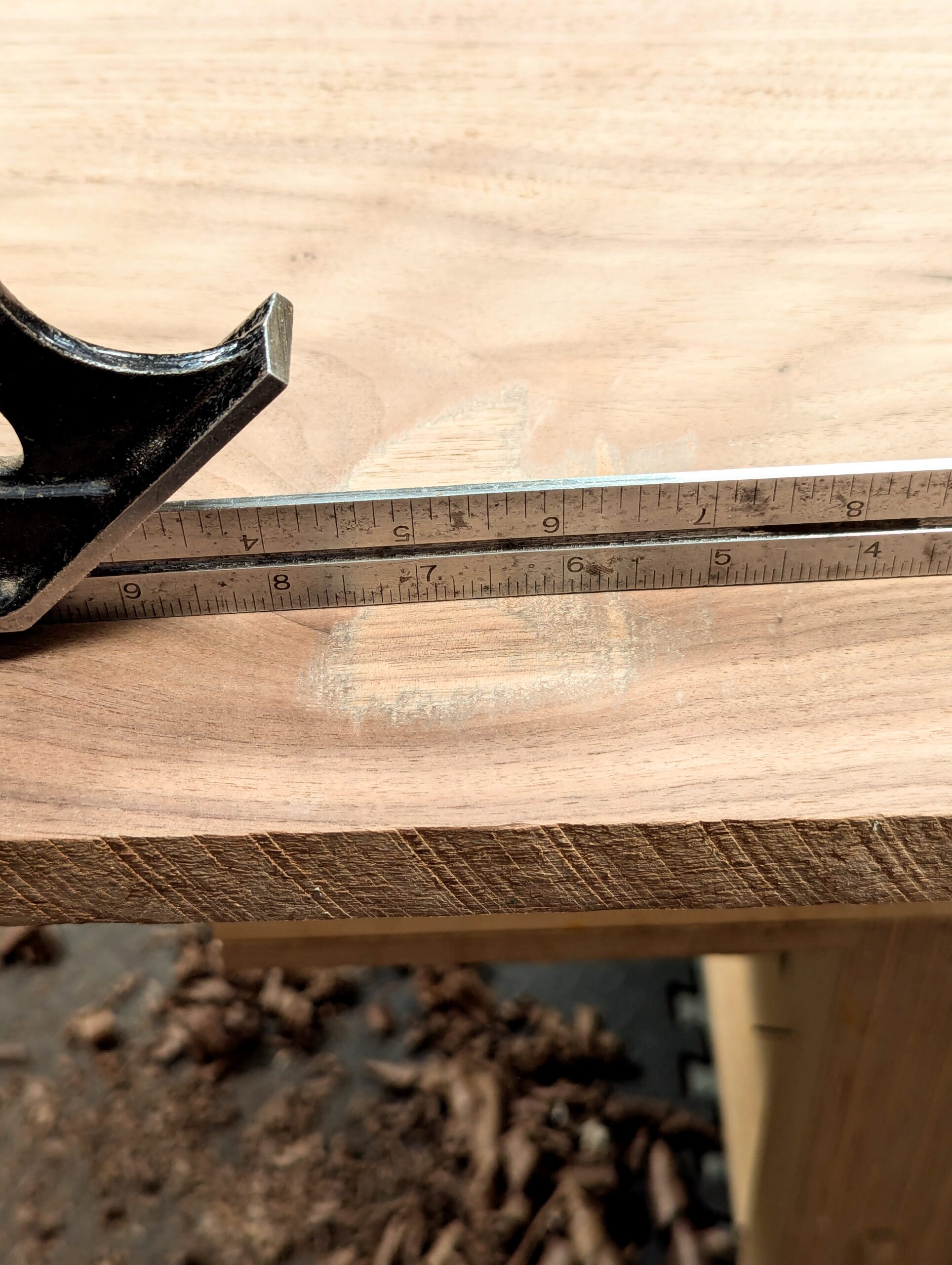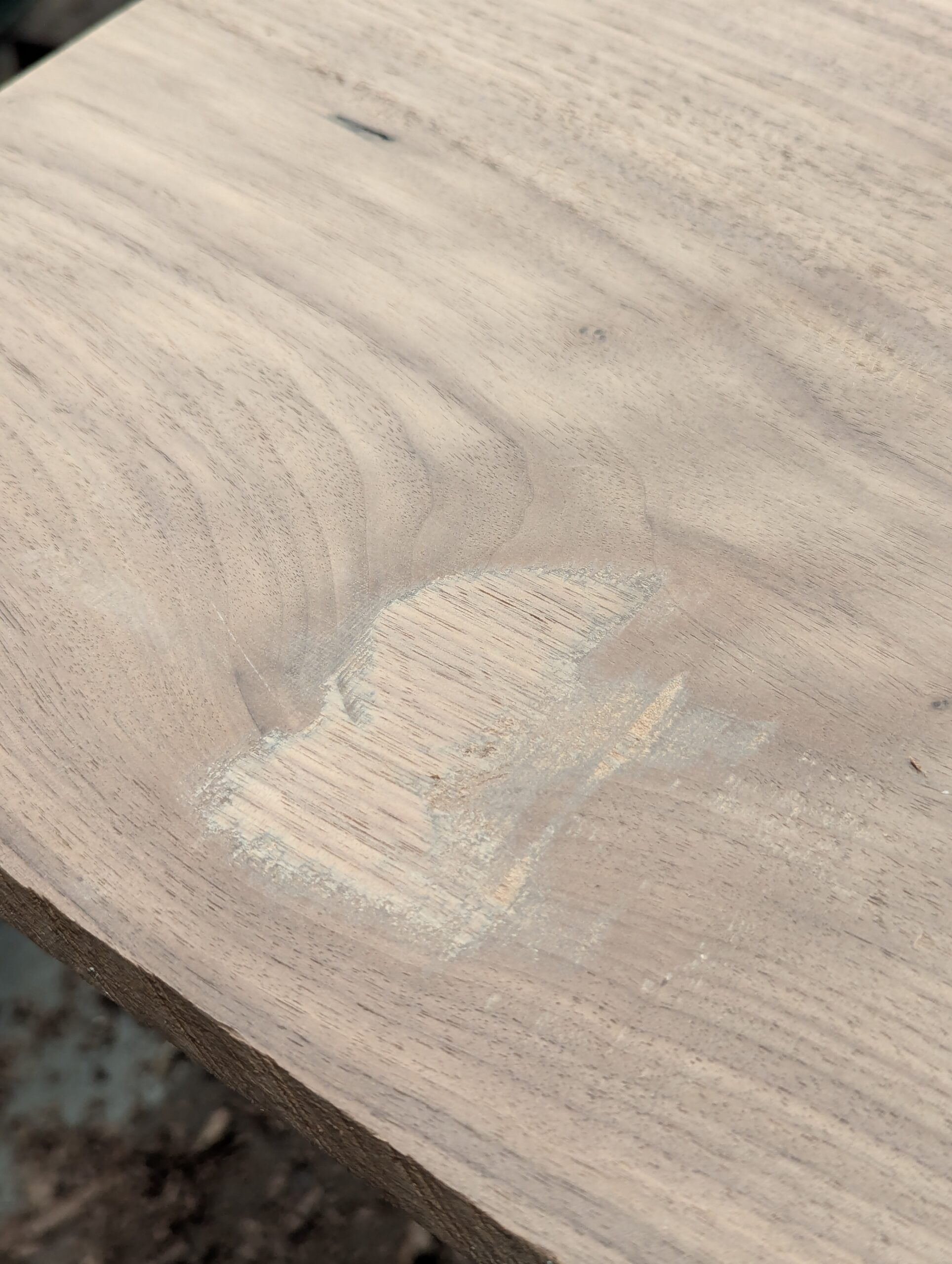 As you can see, the hollow is a good 1/8" deep but to get through to even grain I would likely need to go another 1/16" and that means losing 3/16" in thickness.