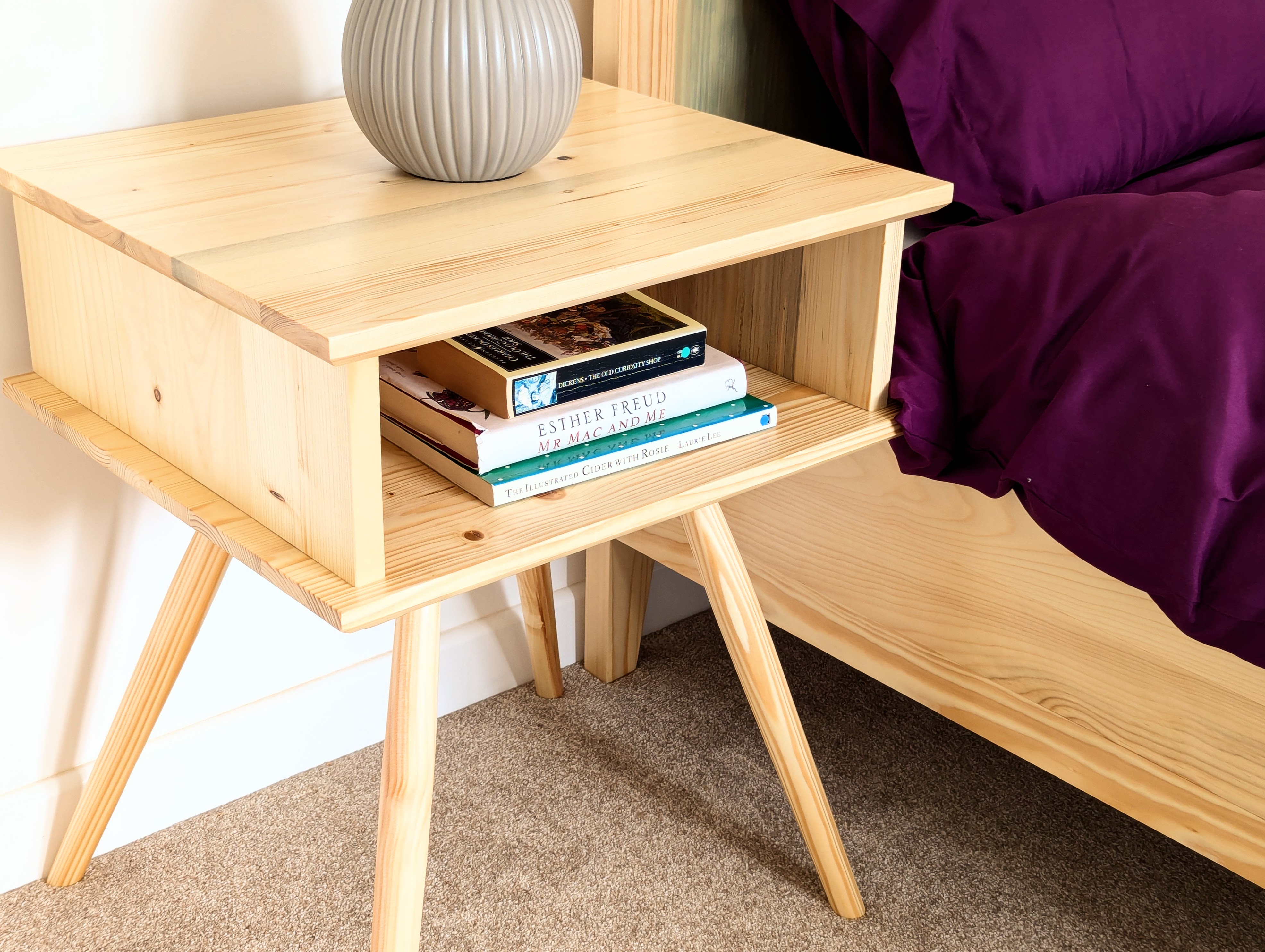 This has been my third design to conclude since the assault but I actually made about ten or more of the three pieces in the development phases of the designs. The first two were relatively small pieces. I did this on purpose as a lead-in back to gradually heavier work and the more demanding energy furniture making with hand tools demands. As on the day of the attack, I didn't know how much I would recover or how serious the damage would be. I now find myself being ever-grateful for the level of recovery I have had. I am always surprised by just how much repetitive work still spikes my appetite for what Texans call the "same ol', same ol." I just love every aspect of my woodworking with hand tools and it never seems to get old. It has been that way for 60 years thus far and I see no waning in my love of the ordinary and then too the extraordinary. If I tire at the end of the day and the work seems a little more tedious than at the start of the day, I clean up, sweep up and put up and write, draw or whatever else is productive for me and the next morning I am just as keen as when I was a fifteen-year-old. The week I started the bedside tables I cut eight housing dadoes in quick succession, 17 " long, 3/4" wide and quarter-of-an-inch deep. Though it's in spruce (relatively soft), the knots and their surrounding grain are a beast to work with with chisels and saws as they are hard and as dense as any other wood you care to name and have no grain run you can reliably follow with your cutting edges. As always, I did enjoy the whole of it still, and what was really nice for me at this stage in my recovery is that I have a few days of working where I experience no pain or strain to my rib area as in recent months. Oh, there is still some discomfort in other parts of my body that I find myself cushioning now and then, and I did have physio to help gain relief, overall I am now doing much better.