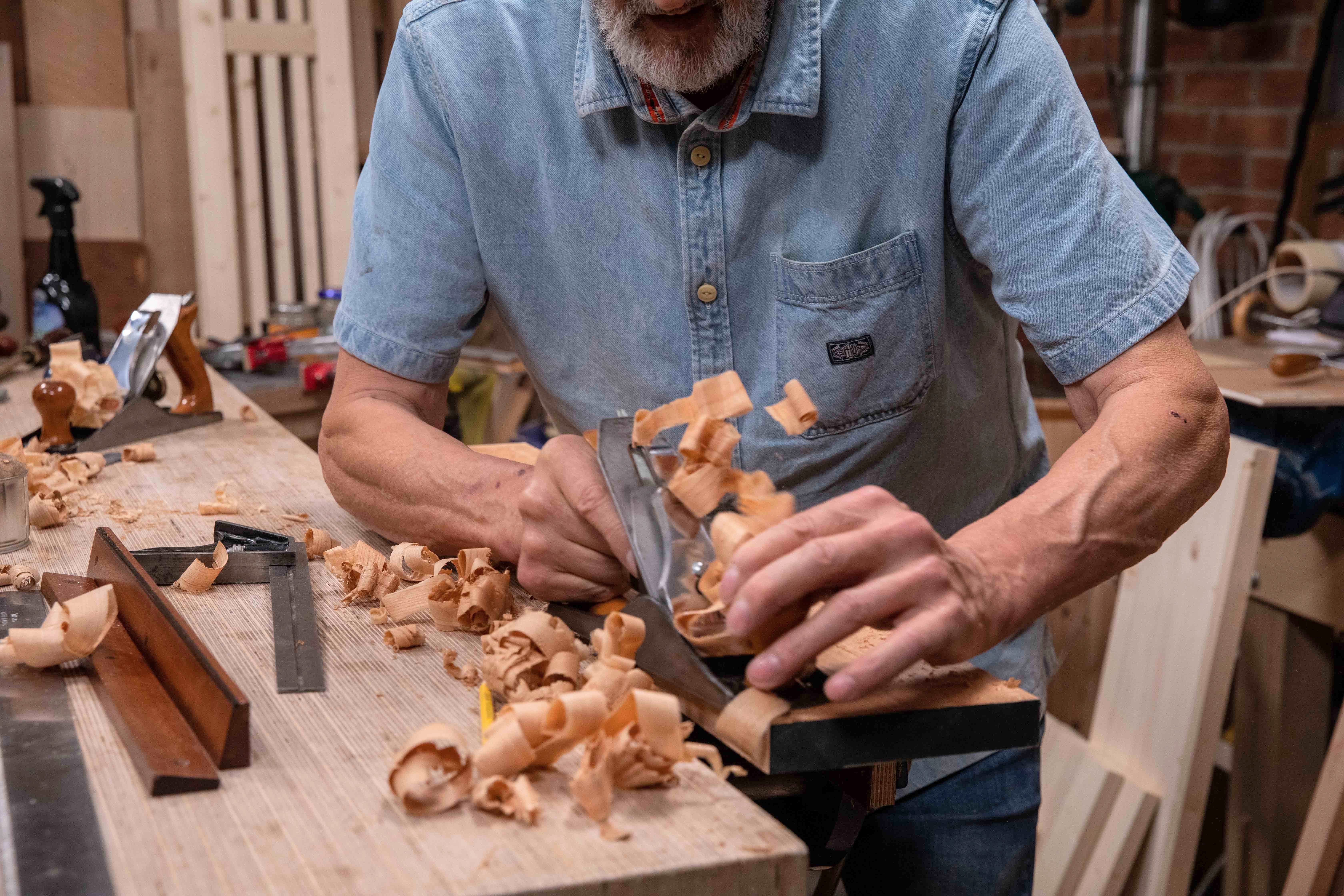 The investment the inventor and developer Leonard Bailey, together with the Stanley Rule and Level Co, made into the development of their bench plane series of eight-plus bench plane lengths was so good no other plane maker then or since came close to bettering the mechanical functionality and quality of the Bailey-pattern plane. It was so good that any other makers of Leonard Bailey's work could only offer knock-off copies. In the details, they never really offered anything that improved the plane even though they boasted and still boast to that end. Rather than inventing anything to change the dynamism of the plane, they merely offered tighter tolerances that actually encumbered the plane as such engineering often does. Think sloppy gearsticks of a well-worn 1960s Morris Minor, how you slipped the gearstick from second to third half a minute before it engaged and how well that worked for those of us who knew it. I can use the #4 plain-Jane plane version for making raised panels and scrub planing over and above general trimming, refining and truing the wood they are confidently known for. It's a strange assumption that somehow saw the transition of buyers buying all-metal versions they rejected throughout the 20th century. Someone, somehow pursuaded them that expensive versions would suddenly bridge the gap to translate them from unskilled outcomes to skilled ones––that the tools they were using, those unsophisticated primitive ones, were the real problem and nothing to do with any lack of skill––buy a tool ready to go straight from the box and all skills would magic their way into their lives. But no one told them that bench planes would be high-demand tools and high-demand for the rest of their lives because every time you sharpen them you must remove and install different components every time and that this can happen ten or even more times in a day if you are using a plane throughout the day. Sharpening and setting are maintenance tasks and you cannot have one without the other. 99% of good planing outcomes revolve around the sharpness and set of the plane. Once you see that and accept the reality of it you are on your way to good planing practice with pretty much guaranteed outcomes every time you use it. Of course, we believe that better-engineered tools in iron will automatically be better than vintage versions and it makes sense to think that way even if the reality is the opposite. It is unlikely that any modern user of all metal planes would or could ever match the quality of work the wooden plane users accomplished. It's not that they can't. I don't believe that. there are many reasons that they never will, not the least of which quite simply is the loss of skills. I believe that there are makers who could achieve the same results but that they would more than likely take ten times longer to do so.
