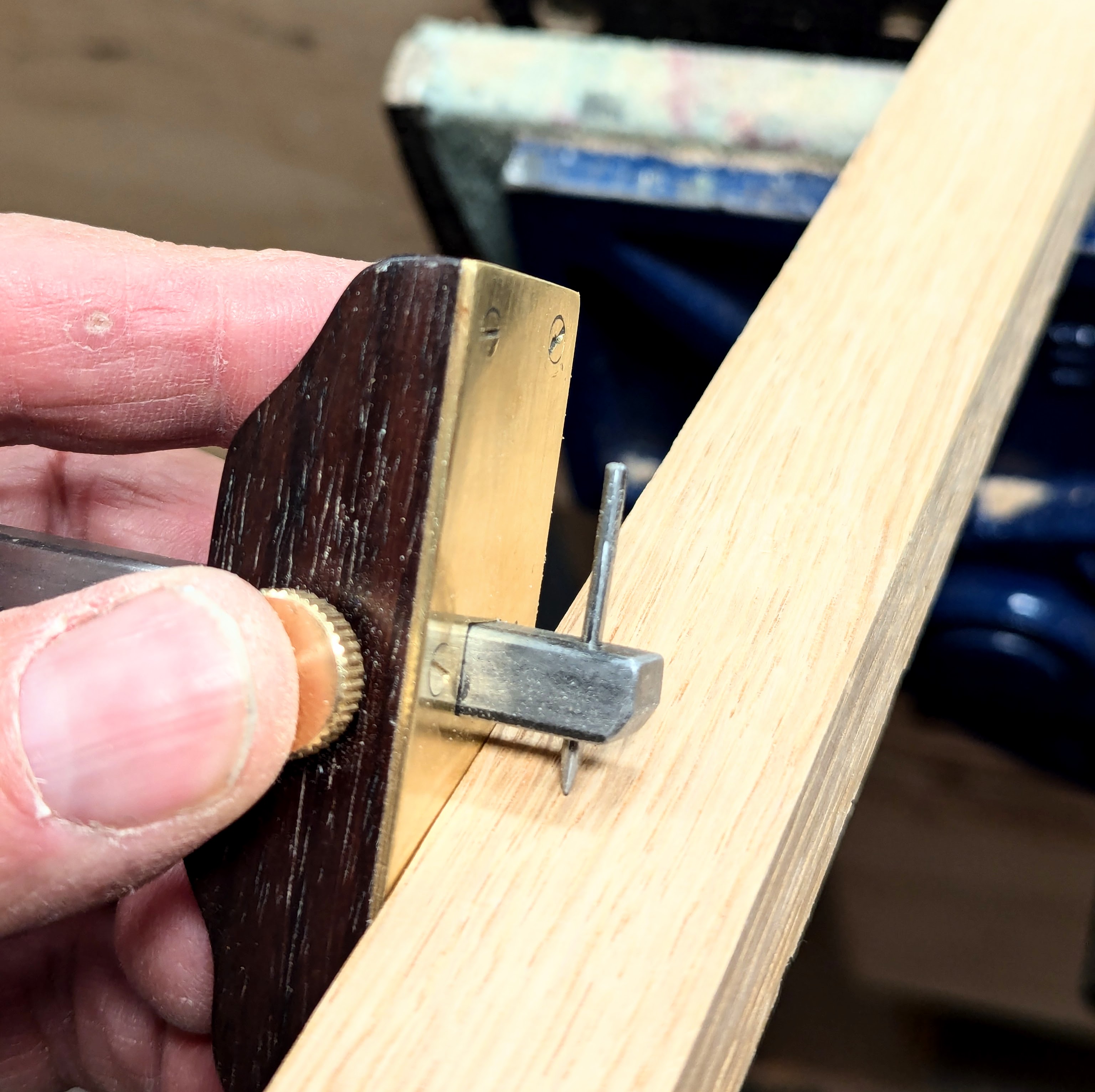 Gifts as simple as this are rare finds these days and even more rarely given. When Hannah made this for me, it was unexpected. She has one just like it that she found and enjoyed and I had admired it when I saw it for the first time. Hannah made this one for me and gave it to me a few weeks ago. I have many marking gauges and the variety ranges from Victorian ebony ones with micro-adjustability via threaded brass rods to wedge-stem versions and then those I have devised myself as better ergonomic designs. When she gave me the one she had made I put it on the bench to see which one or ones I would reach for after a week or two. I ended up with just two. One was my own, the one that follows the Stanley design that has the pin passing through from one corner to the opposite corner and so ensures the point of the pin can always be seen and that you are able to reach right into the tightest internal corners. The other is Hannah's. On the one hand, I just like its compact size, but what I love is handmade pieces. You know, those pure works of art made from recycled materials or just using something that's been totally scrapped by one person and made into something new and unique by another.