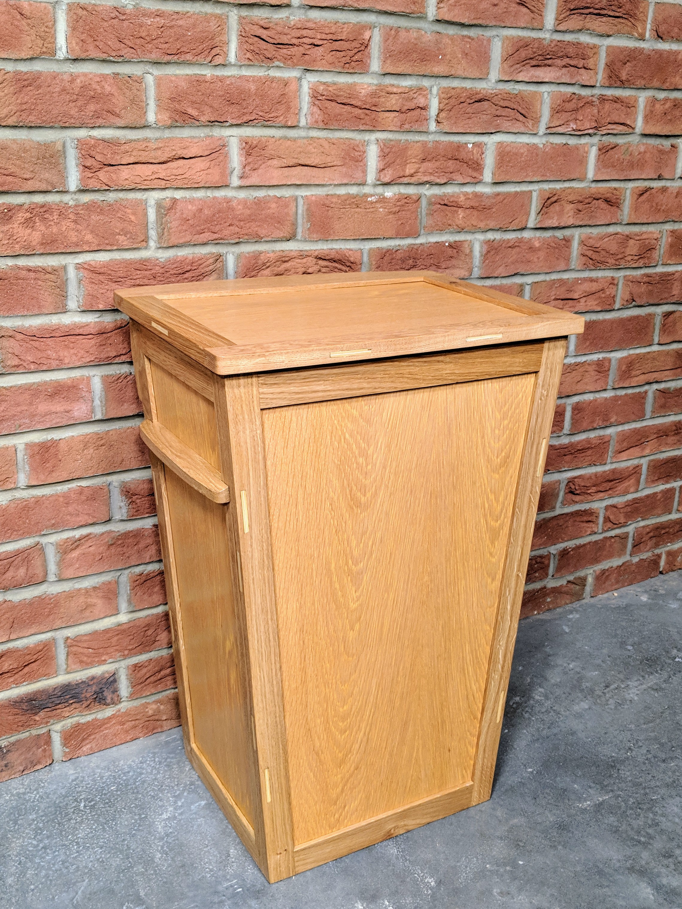It was a few years ago when I made my oak plywood-panelled laundry/waste bin using a decorative plywood for the panels held within the grooved frames of oak. The frames were mortise and tenoned as per tradtionally; mitered at the tenon ends and haunches. The design worked really well both structurally and aestetically. Innovation even in such small ways puts an important part of you into the work.