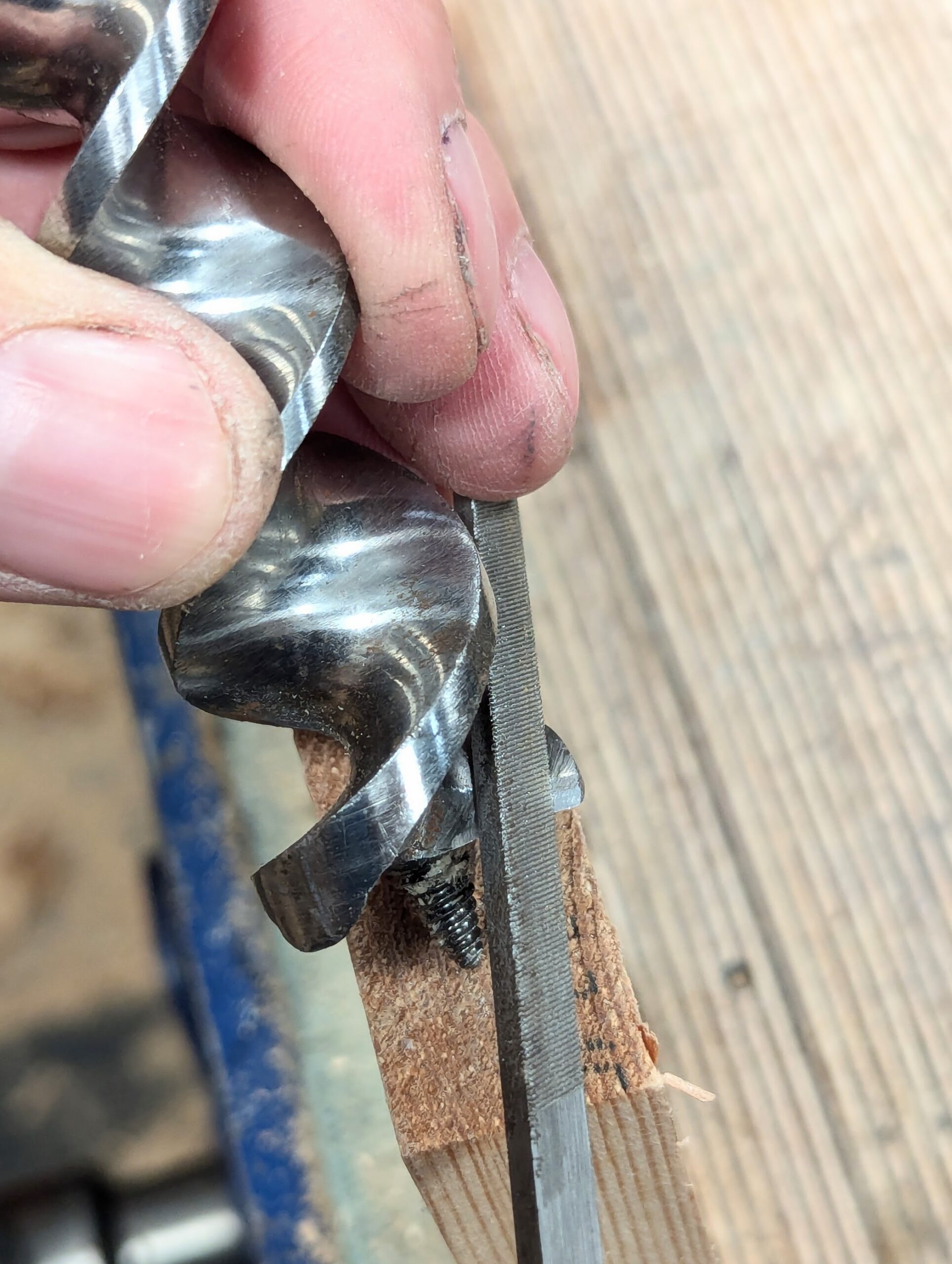. . . followed up with the refining file. I can't really get the diamond hone in here, but I'm not particularly bothered about this. These rakers are essential to making the bit work well and should never be neglected.