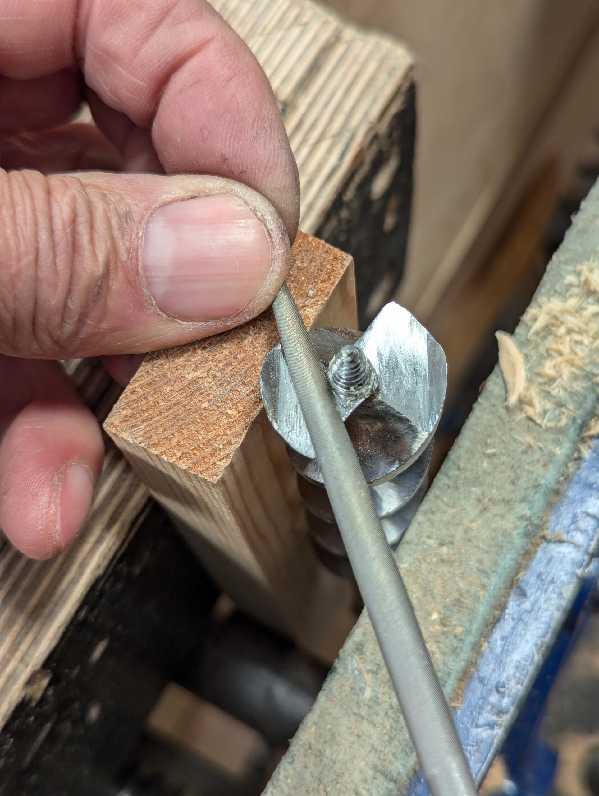 Clamping the bit against a 2" by 1" stick minimises any flex in the bit and clamping it in the vise gives excellent support. Take care doing this. You don't want to bend the bit.