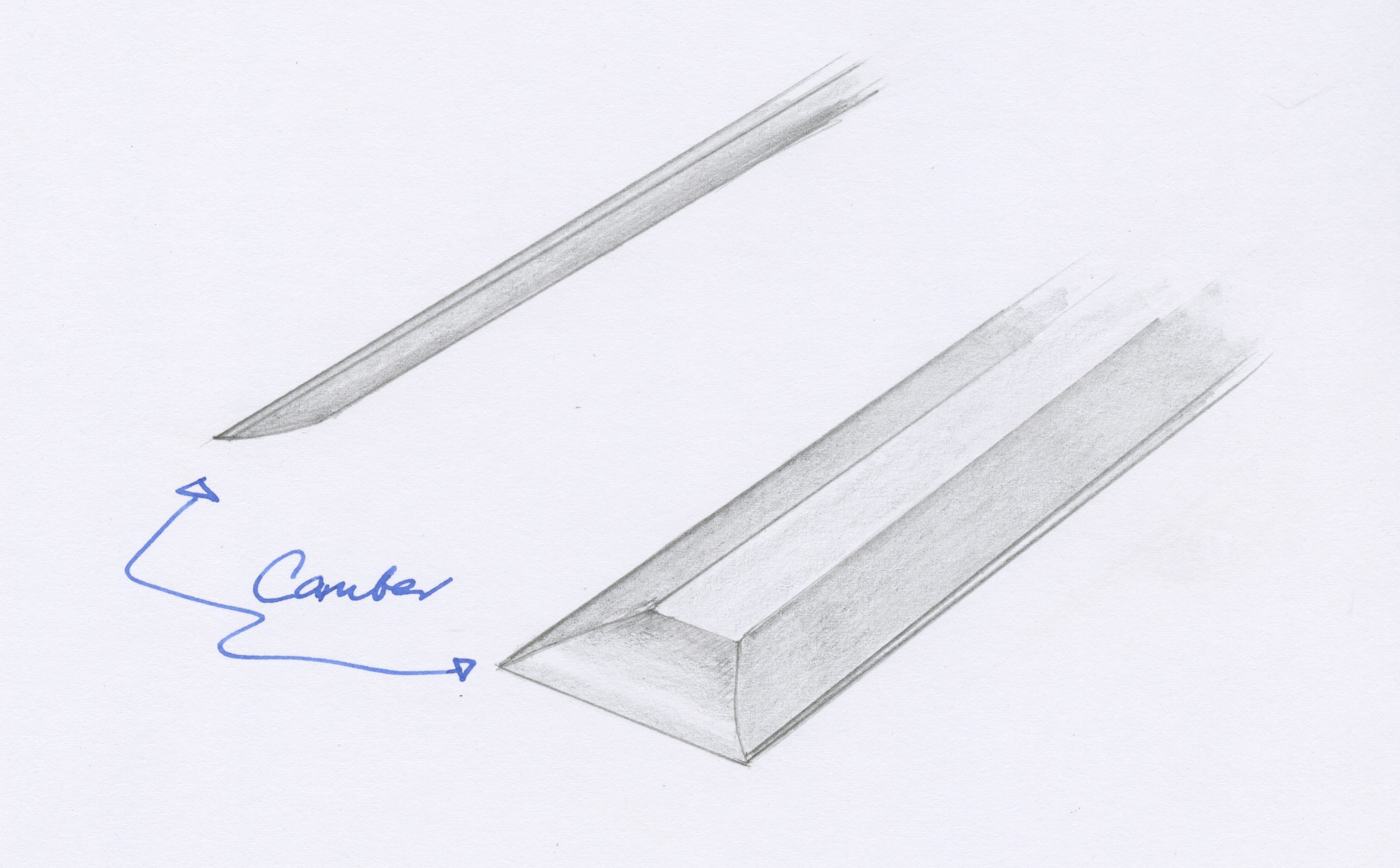You may or may not have read or seen that I rely on a macro cambered bevel. This can only be established and maintained through freehand sharpening, and you will need to work on this technique as you grow in your sharpening skills. The guide is a good way to establish muscle memory and the feel for angles, etc. A macro-camber makes a strong bevel with backup right from the cutting edge, so the chisel works well for both paring work and chopping without any noticeable compromise. This cambered bevel-type (established centuries ago and maintained for hundreds of years, BTW) counters the advocates for something now called micro-bevel sharpening. It's all said to be a matter of preference, but for me, it is about efficiency and economy of motion.