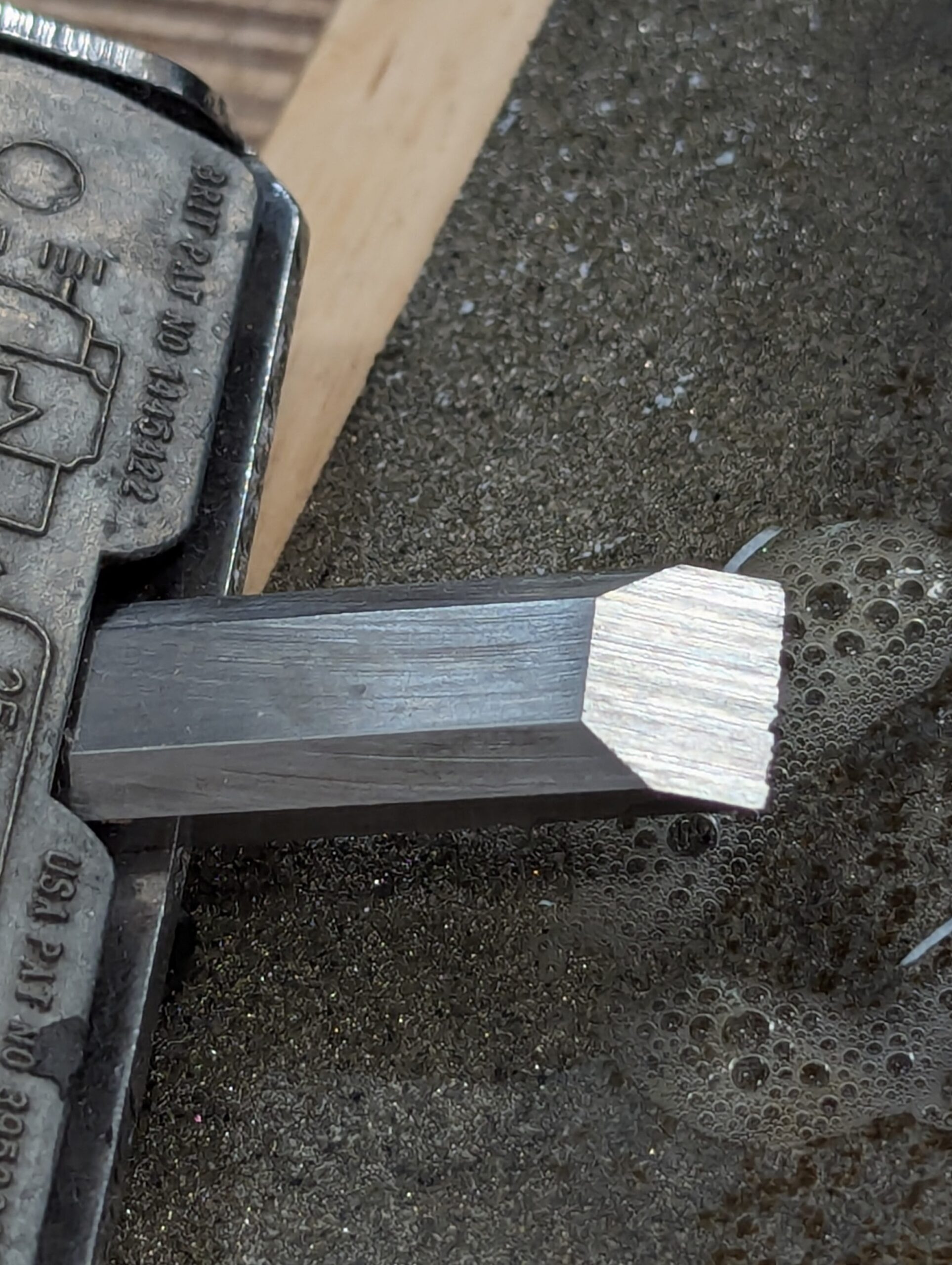 After this level of abrading, we focus on polishing the bevel which is still abrading, but the abrasive shifts markedly to a level somewhere, anywhere, between around 10,000 and 15,000 using what we call buffing compound.