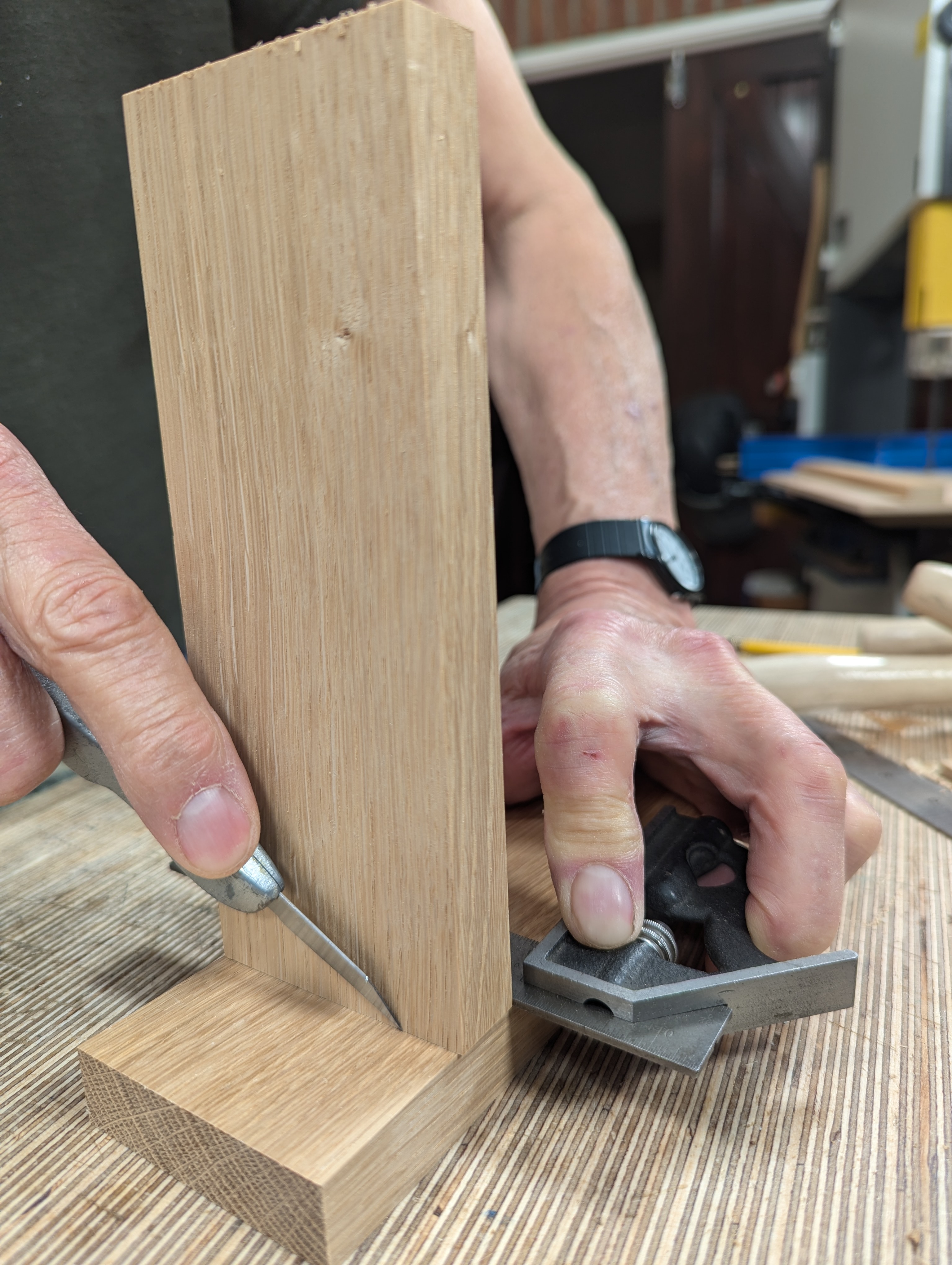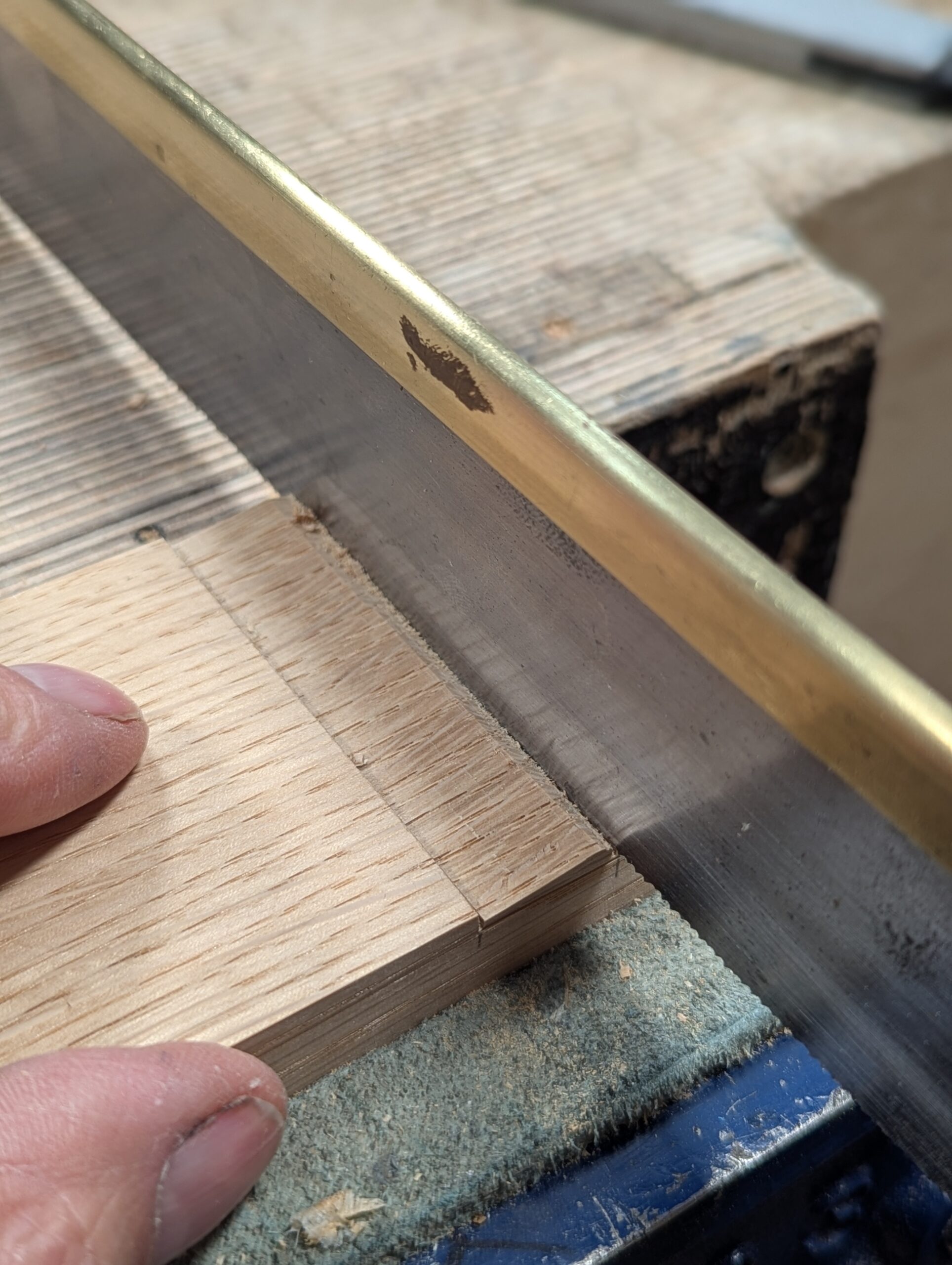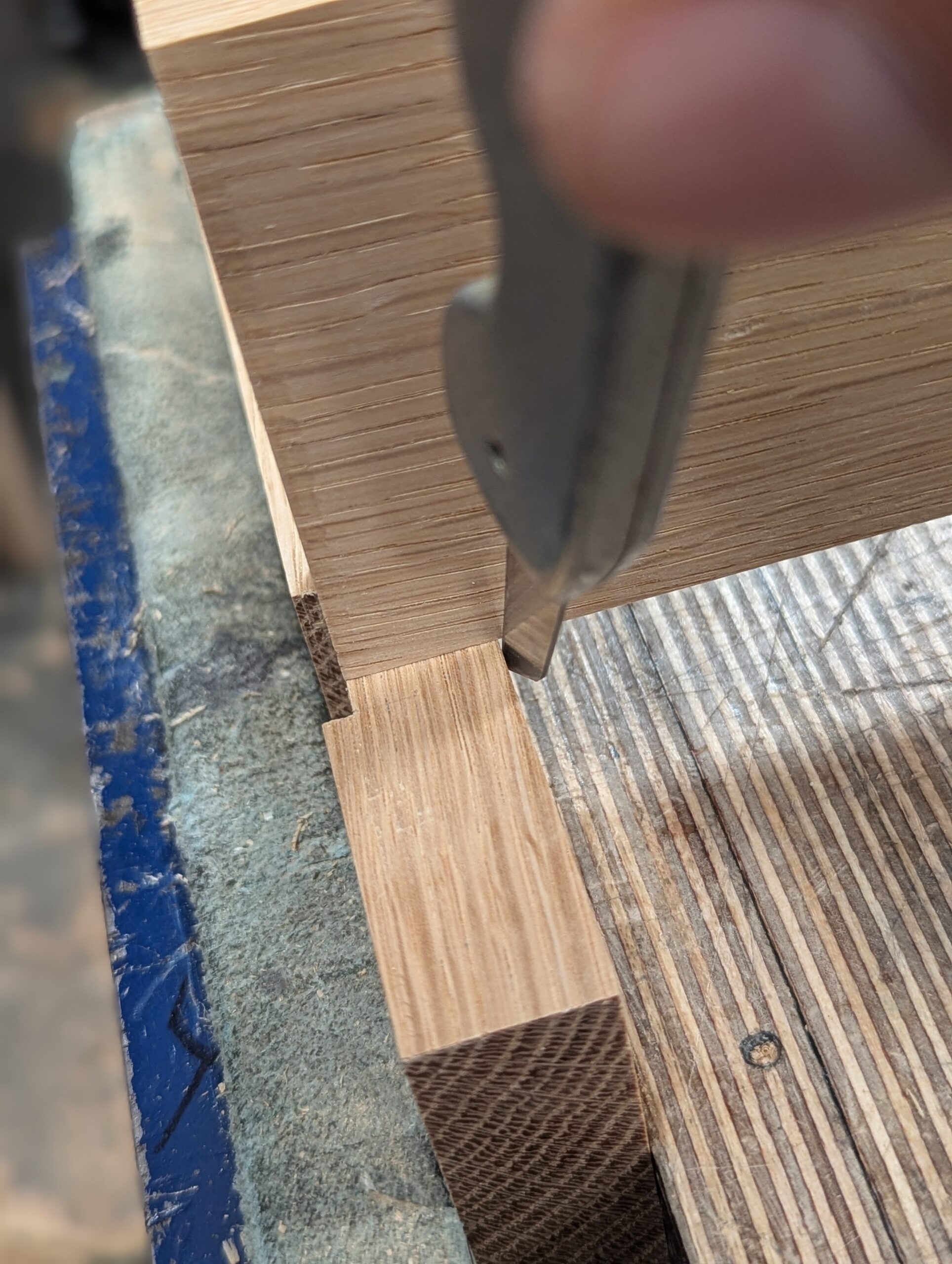 Cut down the underside of the dovetail section to the gauge line.