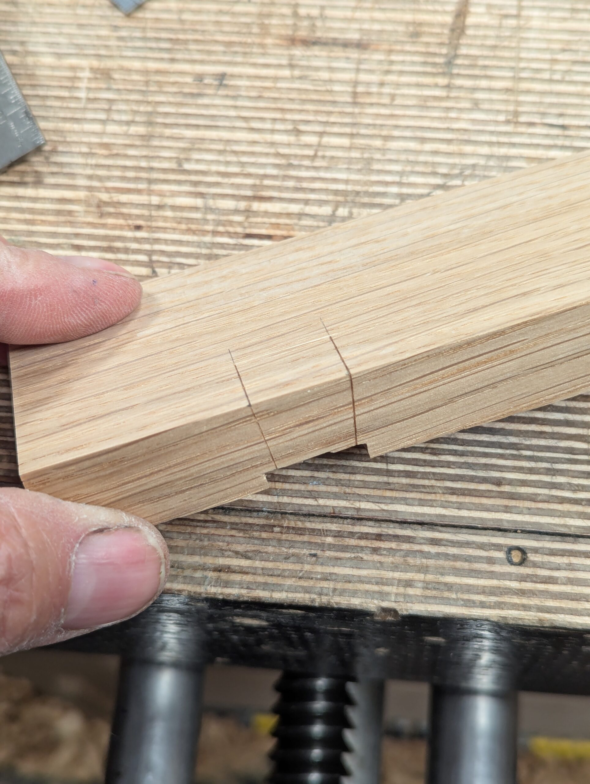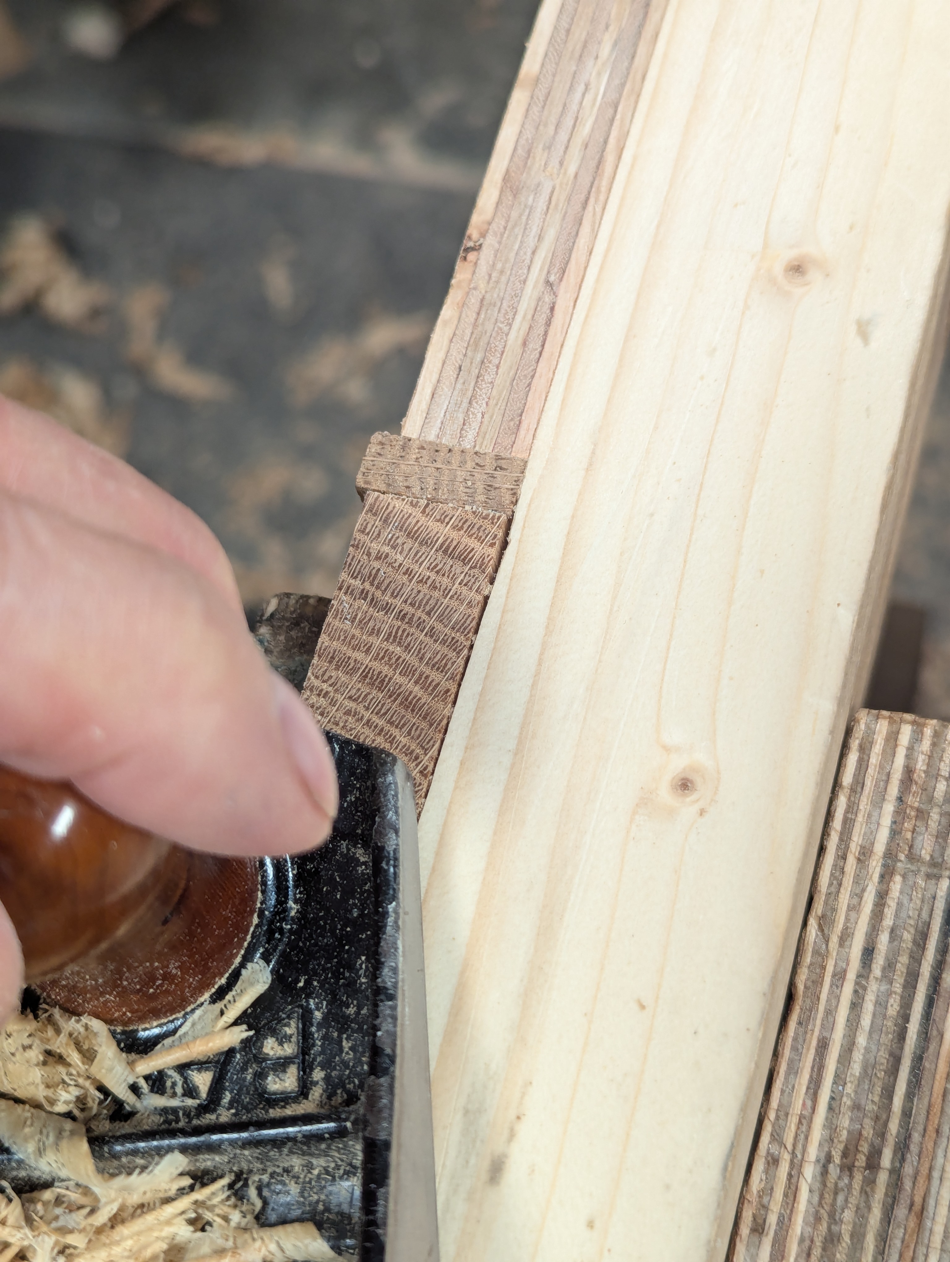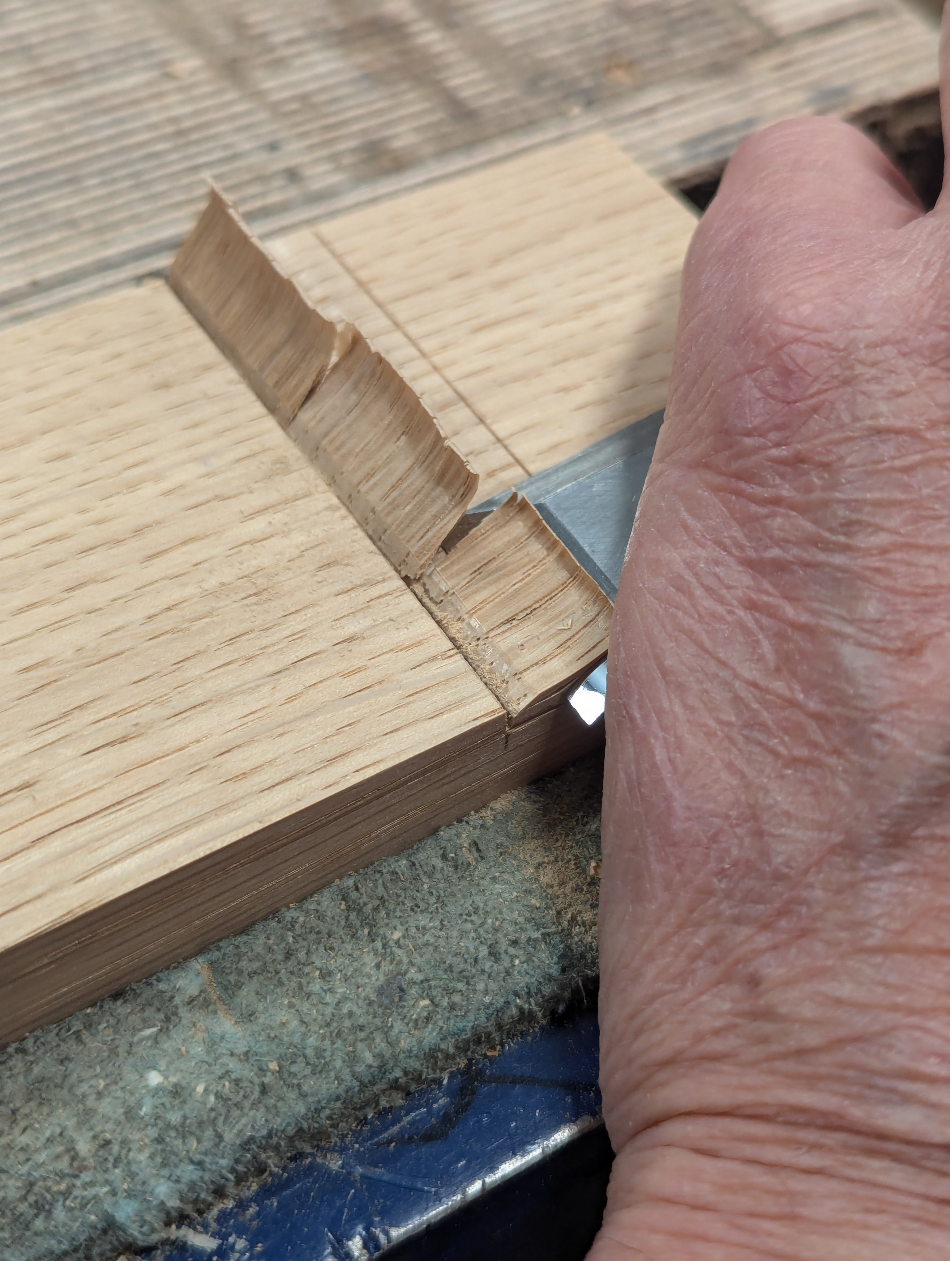 Cut down the underside of the dovetail section to the gauge line.