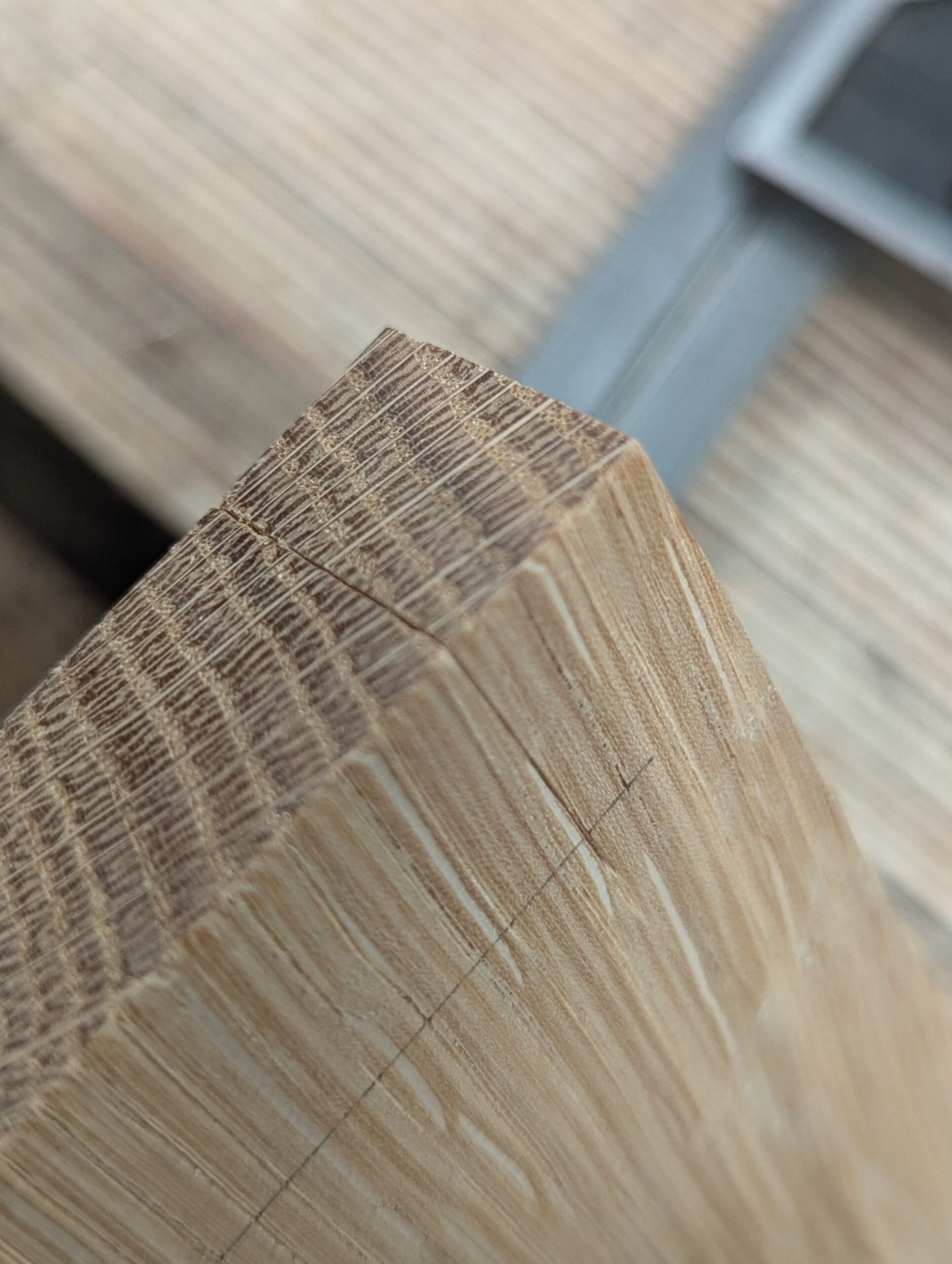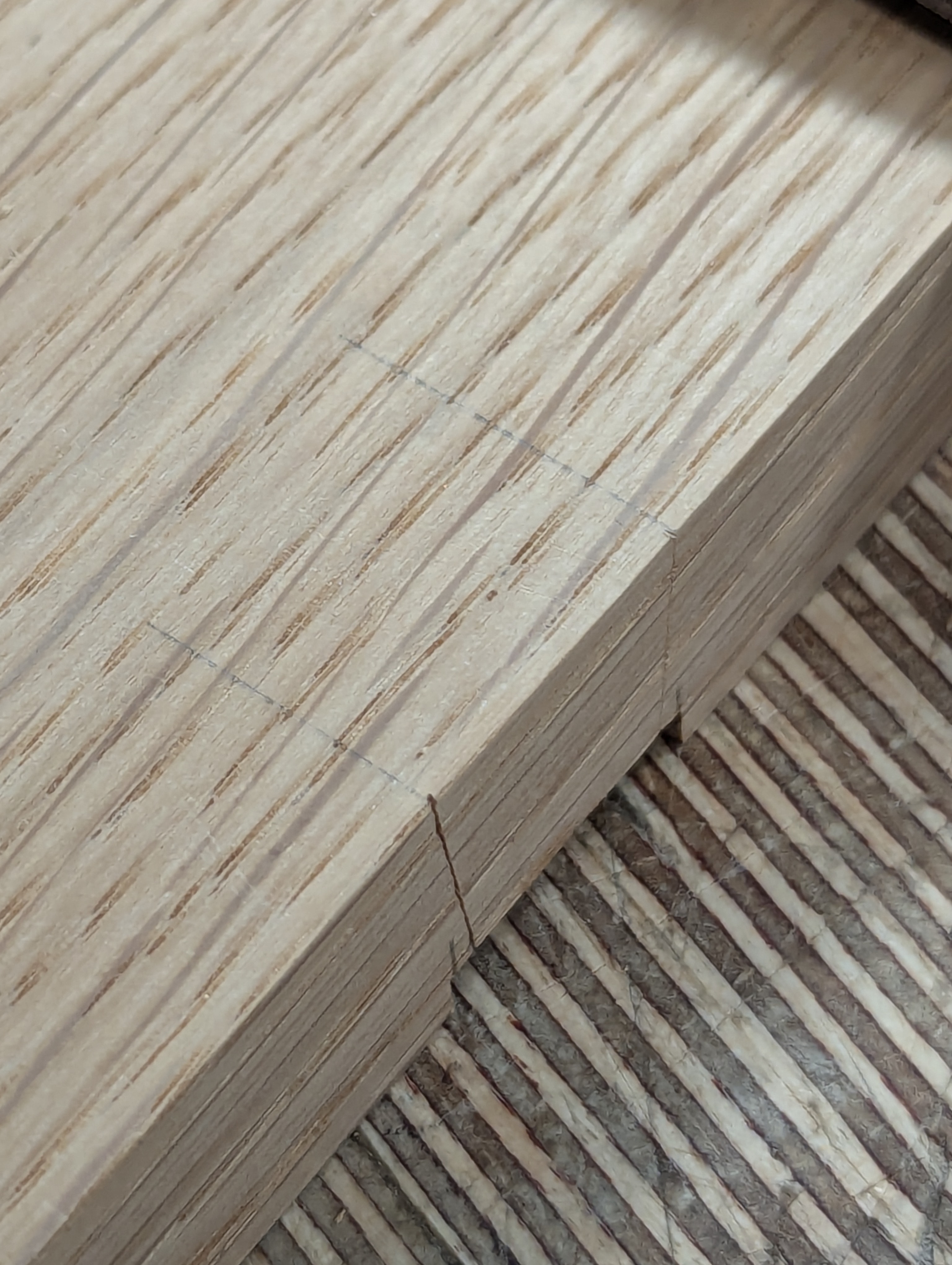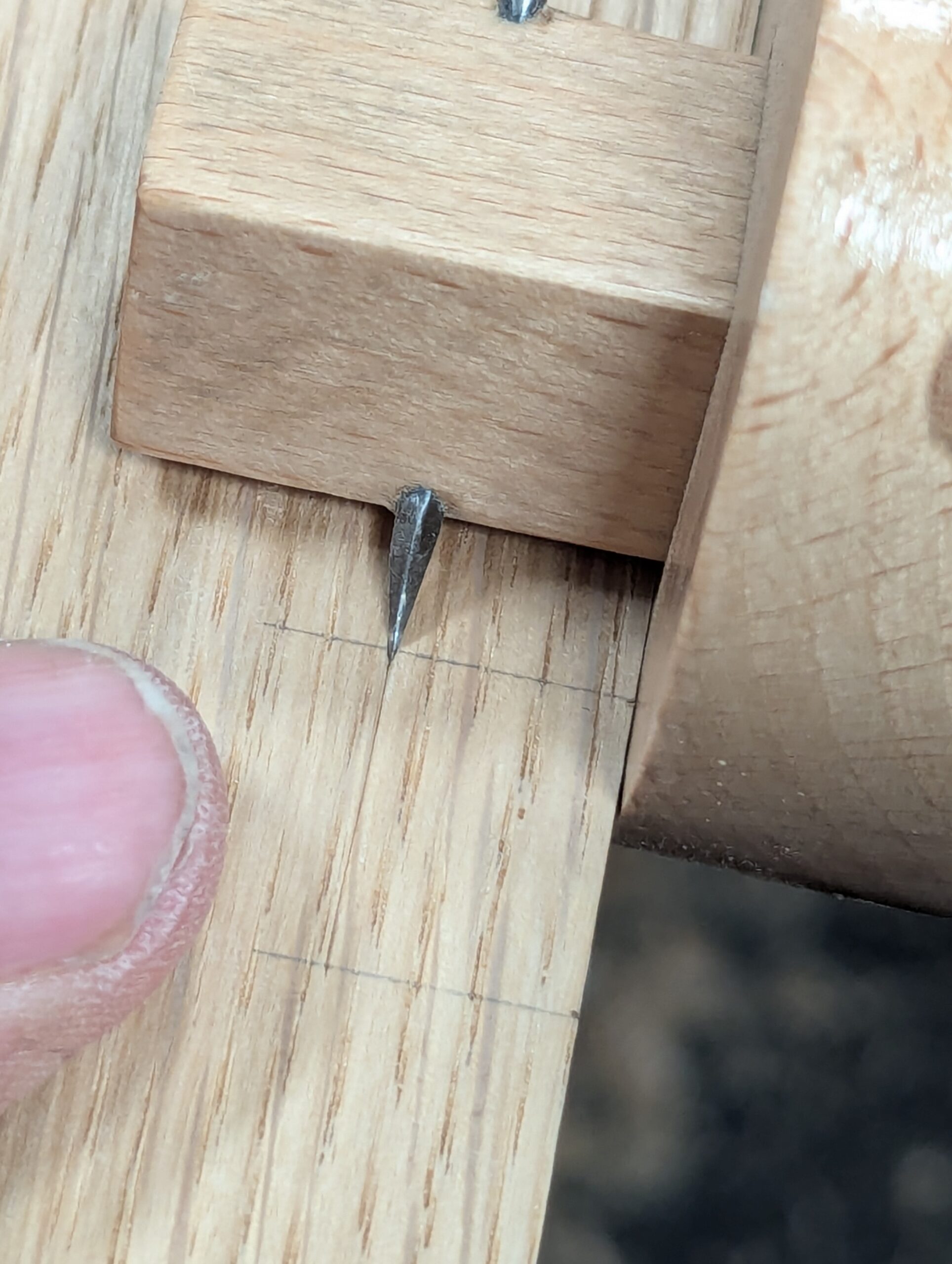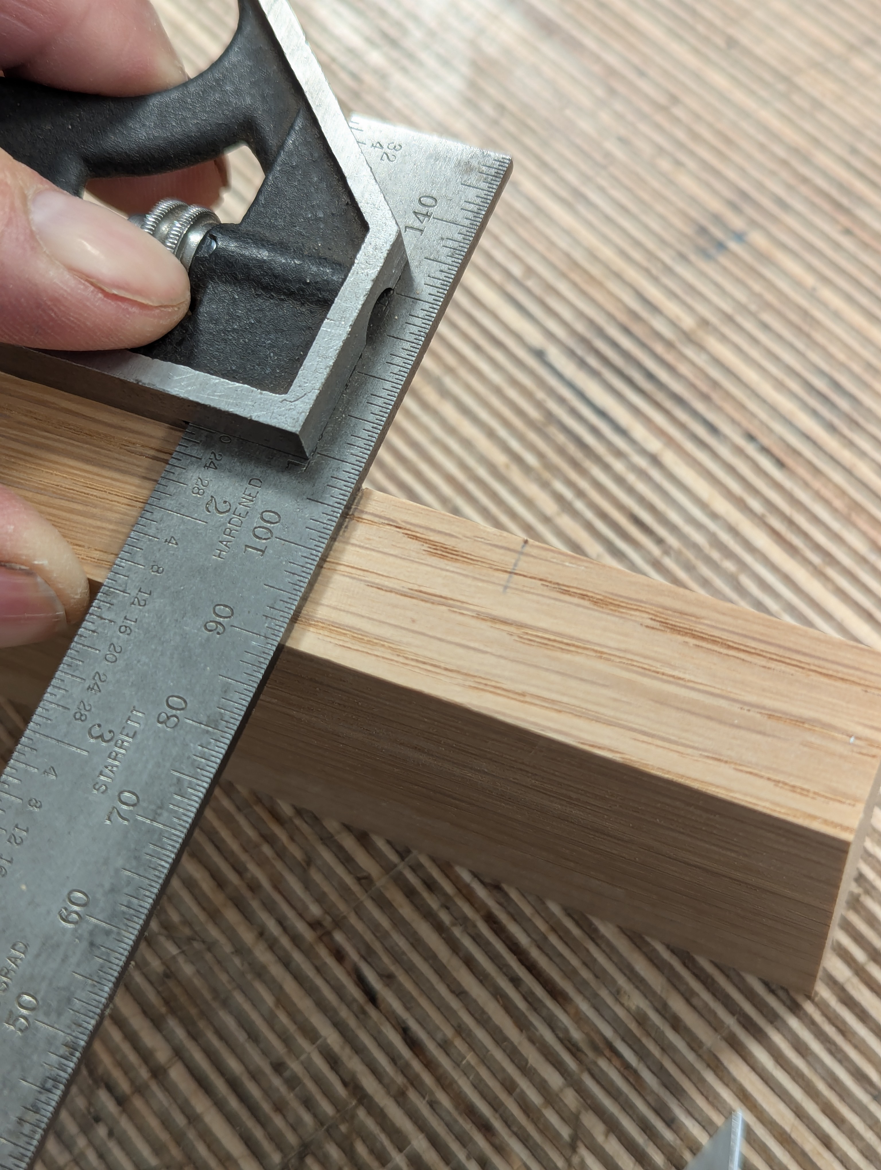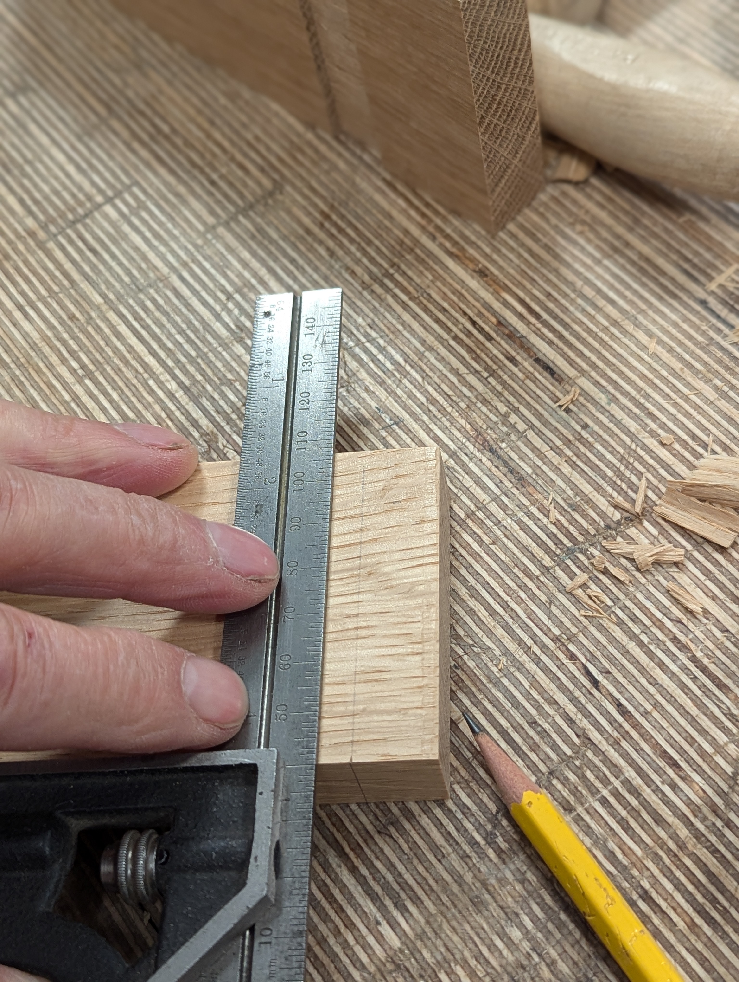 With the square on the first knifewall, place the second piece of wood up against the square and lightly mark the position of the second knifewall.